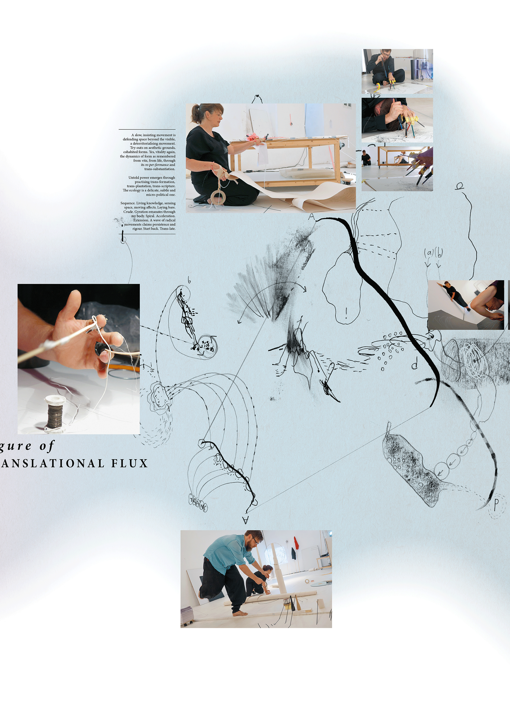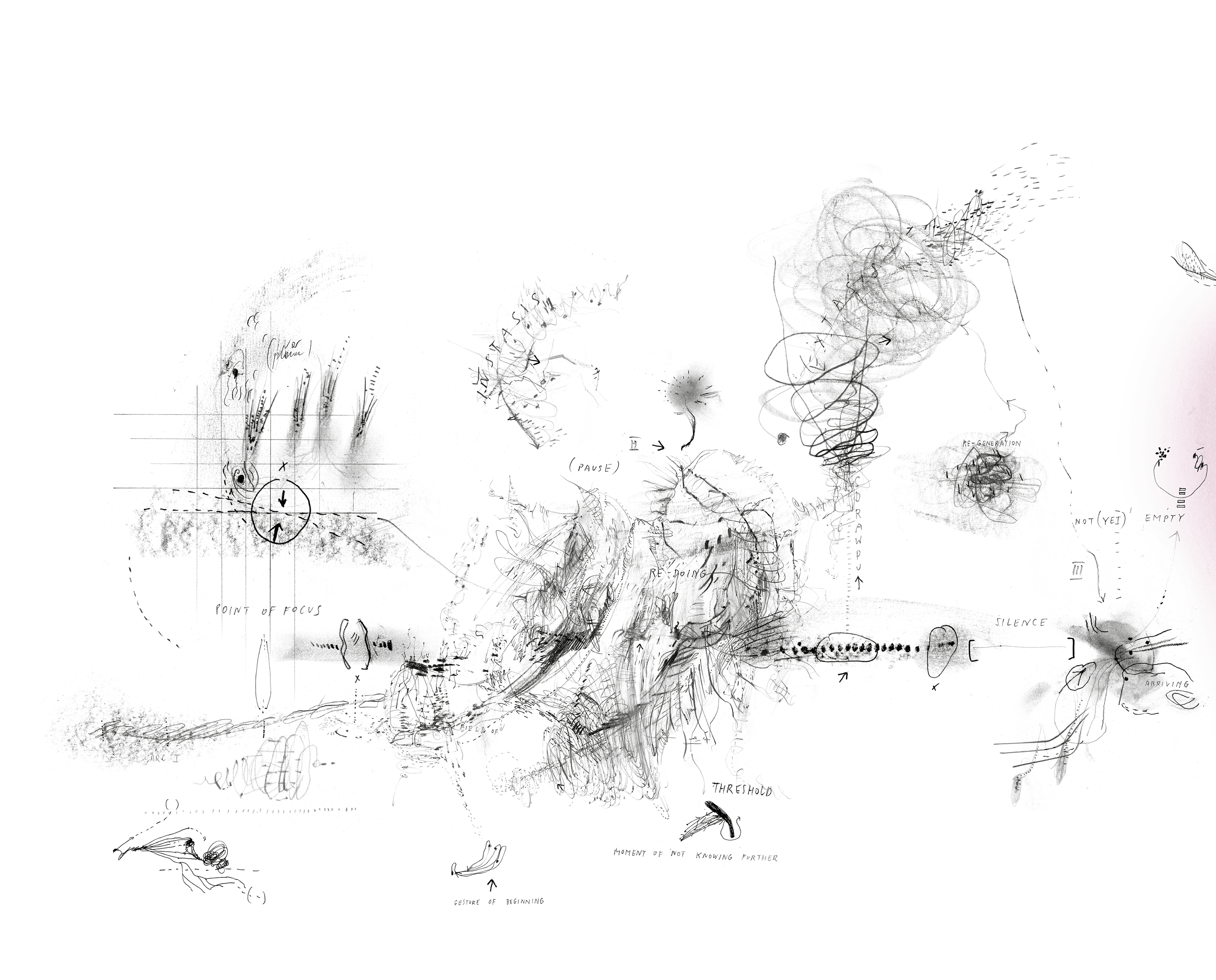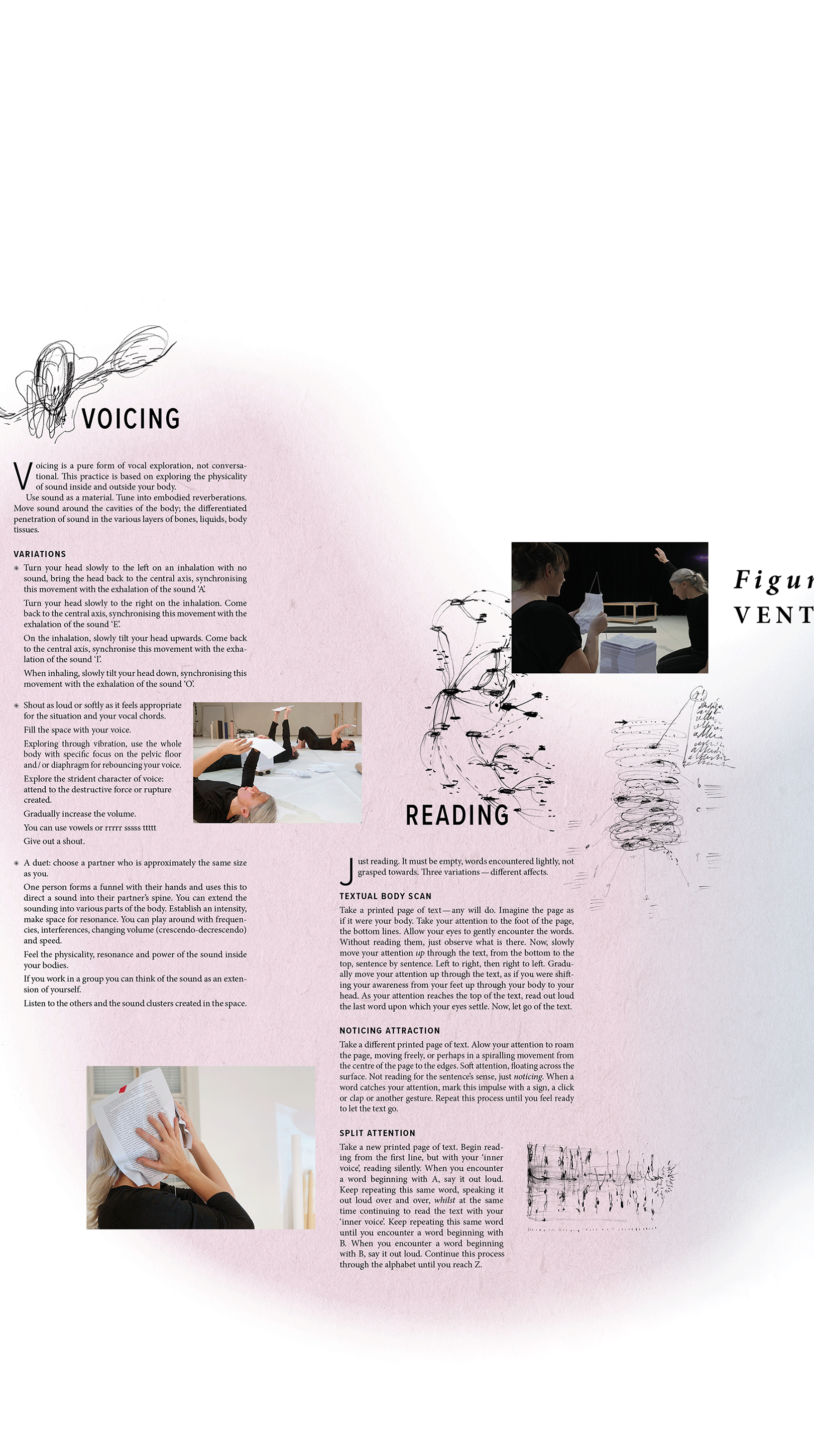 This exposition forms part of a chapter entitled ‘Choreo-graphic Writing – Towards More-Than-One Means of Inscription’ by Emma Cocker, Nikolaus Gansterer and Mariella Greil, published in Leena Rouhiainen, Kirsi Heimonen, Rebecca Hilton and Chrysa Parkinson (eds.), Writing Choreography: Extending the Conventions of Dance (Routledge, 2023). Abstract for the chapter: Choreo-graphic Figures - Deviations from the Line is an artistic research project by writer-artist Emma Cocker, artist-performer Nikolaus Gansterer and dancer-choreographer Mariella Greil, for exploring those modes of thinking-feeling-knowing emerging between the lines of choreography, drawing and writing. This research project involved the cultivation of various modes of “choreo-graphic writing” [more-than-one / means of inscription] at the interstice of choreography, drawing and writing, the evolution of experimental language practices as artistic research. Drawing on various “practices” and “figures” developed within Choreo-graphic Figures, Cocker, Gansterer and Greil explore how different performative, sensuous and experimental textual practices and bodily inscriptions emerge as immanent means of articulation for that which remains strictly beyond words: the embodied, relational, affective and material sensitivities and sensibilities of collaborative, co-emergent sense-making taking place in and through the interaction between bodies, between human and non-human agencies. The chapter comprises two parts: PART I — an “exposition” (encountered here) showing how Cocker, Gansterer and Greil performed choreography/writing beyond the page within the context of Choreo-graphic Figures presented online using the Research Catalogue (RC), an online platform for publishing artistic research; PART II — an “essay” (within the printed publication, Writing Choreography: Extending the Conventions of Dance (Routledge, 2023) for exploring the different resonances of and implications for these various approaches to choreo-graphic writing. The exposition is designed in dialogue with Simona Koch.