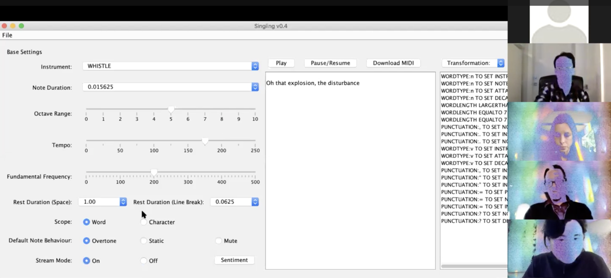 While Covid-19 may have fractured our public, private, and professional narratives of normalcy, out of this slow-moving and surreal catastrophe, new images of the future imaginary begin to emerge as well as new creative practices for collaboratively (re)imagining the future. The Digital Literacy Centre (DLC) is an arts-based research collective exploring innovative approaches to literacy, digital media, and experimental methodologies for technologically enriched meaning-making practices. Like everyone in the world, each of us experienced the pandemic as a diffracted and intensely intimate individual encounter with the future’s unpredictability, and yet also collectively, as a shared story, one that we narrated together in real time, however virtually. We decided to take up this evolving pandemic moment as a technological and creative research challenge to engage with the digital platforms at our disposal towards collaborative futures writing and imagining during a time of crisis. In this paper, we describe our arts-based research methodology, which was a bricolage of technologically mediated futures imagining, writing, and sounding that enacts “diffraction patterns … aris[ing] when specific aural experiences are rubbed against specific narrations of human-technological coupling”1. Through a series of collaborative creation sessions over the course of 14 months during the global pandemic, we wrote, composed and remixed an evolving futures narrative entitled Skunk Tales. In the following exposition we will describe our storying methodologies and share some of the representational emergences in our generative and ongoing process/product.