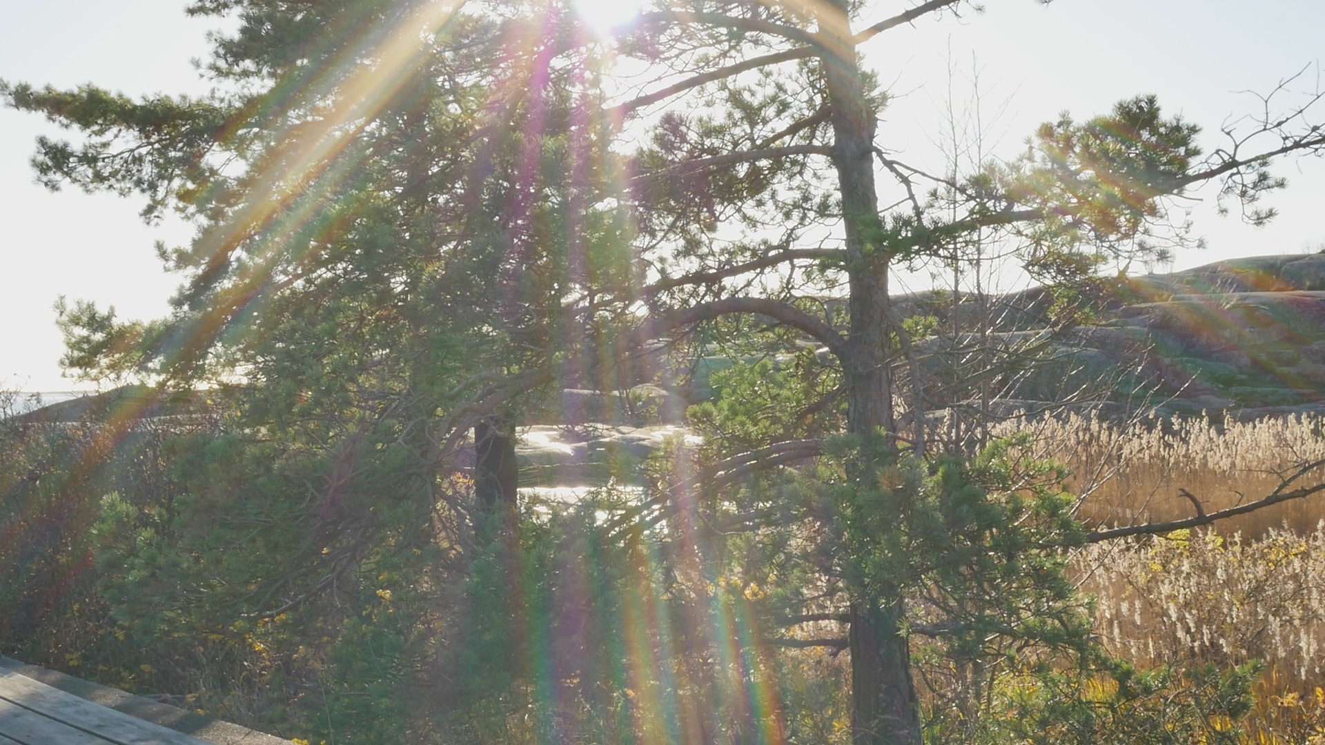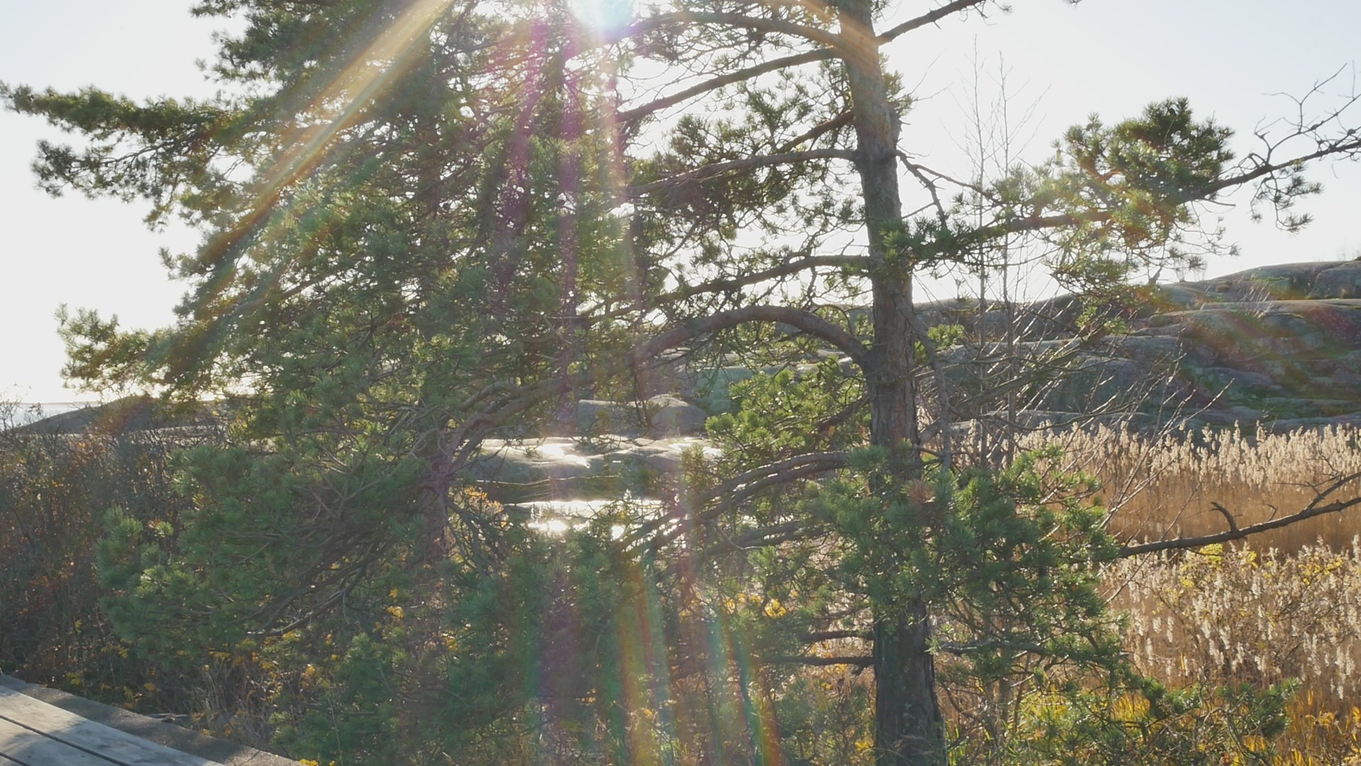 This video, recorded on Monday the 31st October in Helsinki, on Halloween actually, in beautiful sunny weather is not really about composting in a strict sense but more an example of my method of revisiting and some other methods, and is more related to recycling or regurgitating than composting because it is about layers and combinations rather than decomposing. Of the prompts provided I guess this would relate mostly to the idea of moving towards the other slowly - I'm trying to connect with the pine trees - and of course the question of what are the methods to stay open for oddkin relations or not necessarily only to stay open but to develop and nourish them or train for them even. So, what I did was I returned to the two pine trees that grow on Shifferholmen or slate island outside Helsinki, which I used to perform with in the middle of the pandemic in January and February 2021. And the layers of methods, we could say that this act of returning to the site and recording an image of the site now, I have explored in other works before with a longer time between the original work and the revisit than this less than two years in this case. One layer is this revisiting. Another layer of methods is of course these two actions that I here try to remember, what I did with the pines daily. First with one of the pines in January I was holding onto the pine, standing next to it and touching it, which was actually recycling something that I had done with a juniper many years before. And the other action in February daily with the other pine was an exercise that I called becoming tree based on an article in a yoga magazine, it's actually doing the two-legged tree pose, so simply raising one's arms and then standing, trying to balance on one's toes. And doing that with a tree you can of course try to reach up to towards its crown. And the videos compiled originally of these materials that are now, or these repeated daily performances, provide another technique, namely time-lapse videos. So taking one image of the same action or of the same space, the same place repeatedly here once every day, sometimes you can do it once every week or every hour, but that's of course one way of producing material. And then I combine, create those videos by editing, just a short clip of the practice and not using the beginning and end, the entering the image and exiting but removing those. Then of course one important layer of methods is this idea of juxtaposing the two videos and that can of course be done without inserting them into the revisiting, if you want, but to create, if not of compost then a pile in a way by adding material next to each other. If I would summarise these different methods that are here combined but that could be very well sort of used separately in other contexts and for other purposes, would be this idea of encountering, here encountering the pine. Then the idea of daily practice of performing for camera, which is a way of generating material through accumulation. Then this idea of repeating the same image to create a time-lapse that I mentioned, which can sometimes be quite interesting depending on the site you choose. But perhaps most importantly the two layers that I really wanted to share with you, this idea of revisiting an old site of work, but why not revisiting an old text you've written, revisiting, sort of returning to something that was important at some point and and seeing how it has changed. And then last but not least this idea of compiling different, here different temporal layers, but it could be the compiling of other types of variations. And of course here I'm combining and creating layers of video images, but you could do that with sound or you could do that with text. And not only this idea in video, I'm inserting images within the frame of a larger image and of course you could do that in a mise en abyme type of way but with sound or with text you can use other modes of mixing and remixing than this type of inserting. Yes, so I hope that this idea of - well you could say repeat revisit recreate - this method could be useful for somebody else, but of course for me the main suggestion maybe for today's theme is this idea of encountering and meeting and befriending these two pine trees and returning to them now when quite a while has passed since our time together when I met them daily. Alright, that was all that I had to say so thank you for your attention.