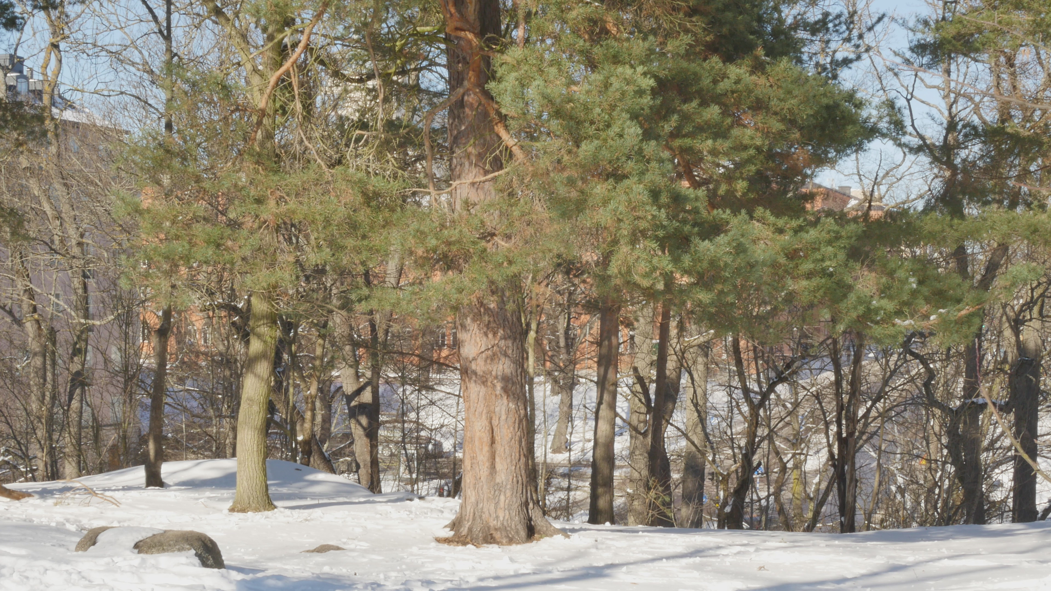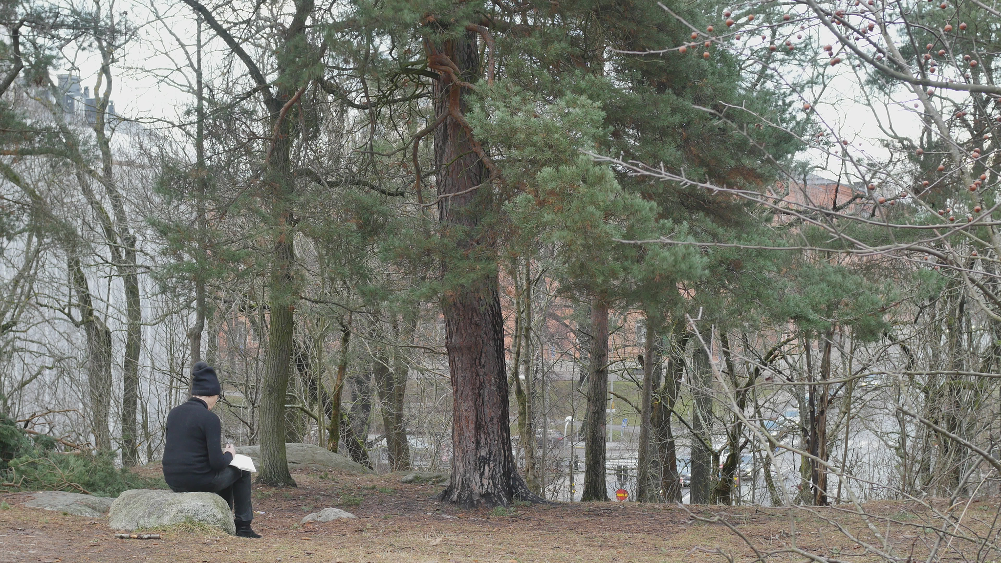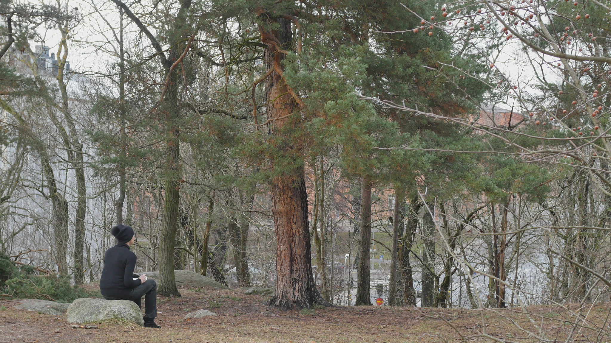Plötsligt ökar vinden, så det kan bli svårt att uppfatta det jag säger, men det viktigaste är att jag vill så väldigt gärna inleda ett samtal oss talar emellan. Vi finns ju överallt och hör till de vanligaste träden i Sverige som i Finland också, för vi klarar oss där andra inte gör det, om det är för torrt eller för vått för andra träd så klarar vi oss nog bara det finns tillräckligt med ljus. Men det är just ljus det är ont om så här års. Men även om vi är många i riket i stort, så är det ont om tallar i Stockholms innerstad. Här uppe på kullen i Nobelparken växer det en klunga av oss och jag tror nog jag är den äldsta av oss. Men annars är det rätt få tallar i parkerna här. Vi är inte parkträd på samma sätt som ekar, lindar, almar osv. Och jag har nog inte planterats här utan hittat hit på eget bevåg, med hjälp av något djur, en gnagare eller fågel kanske. Men det minns jag inte längre.