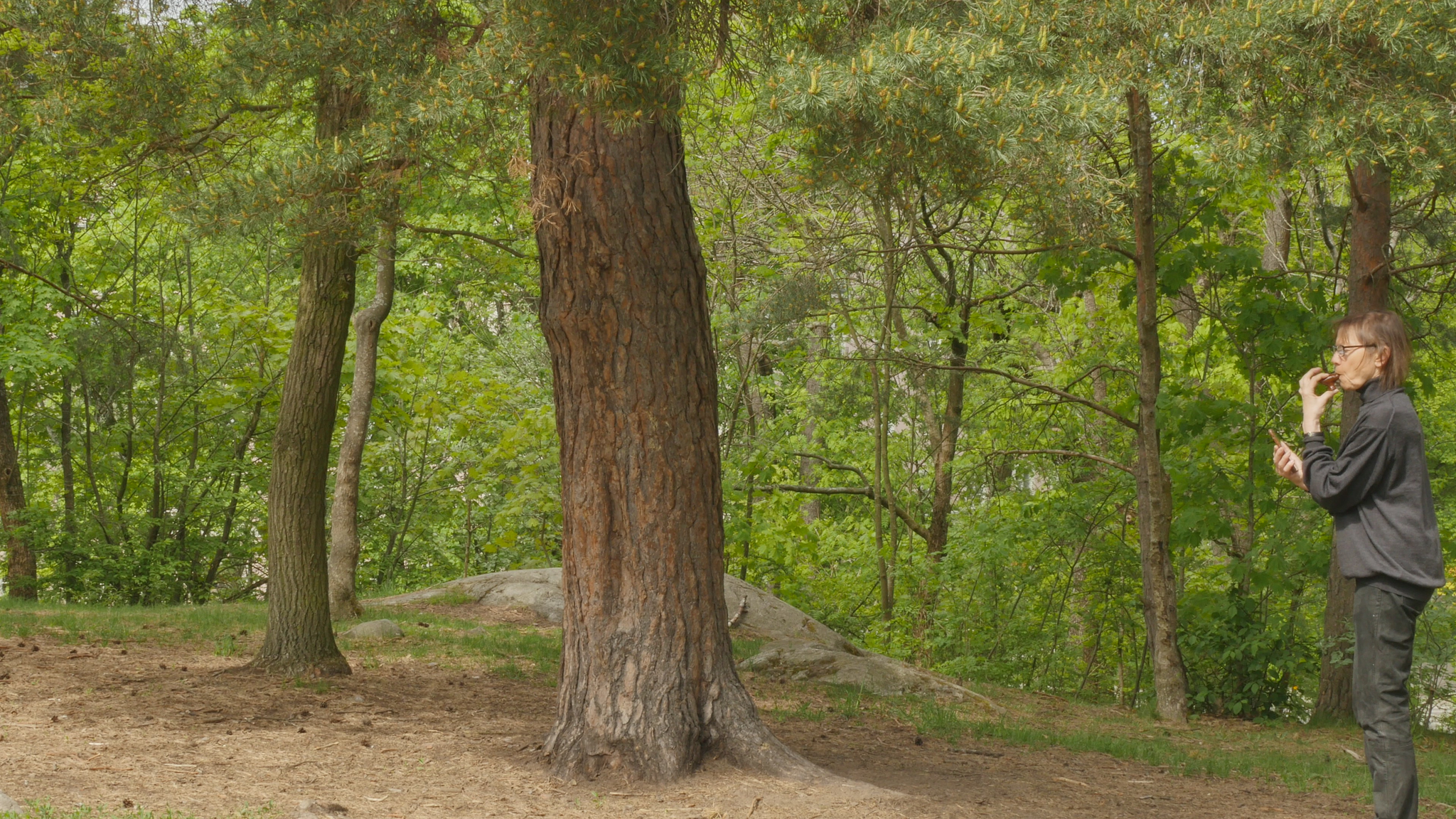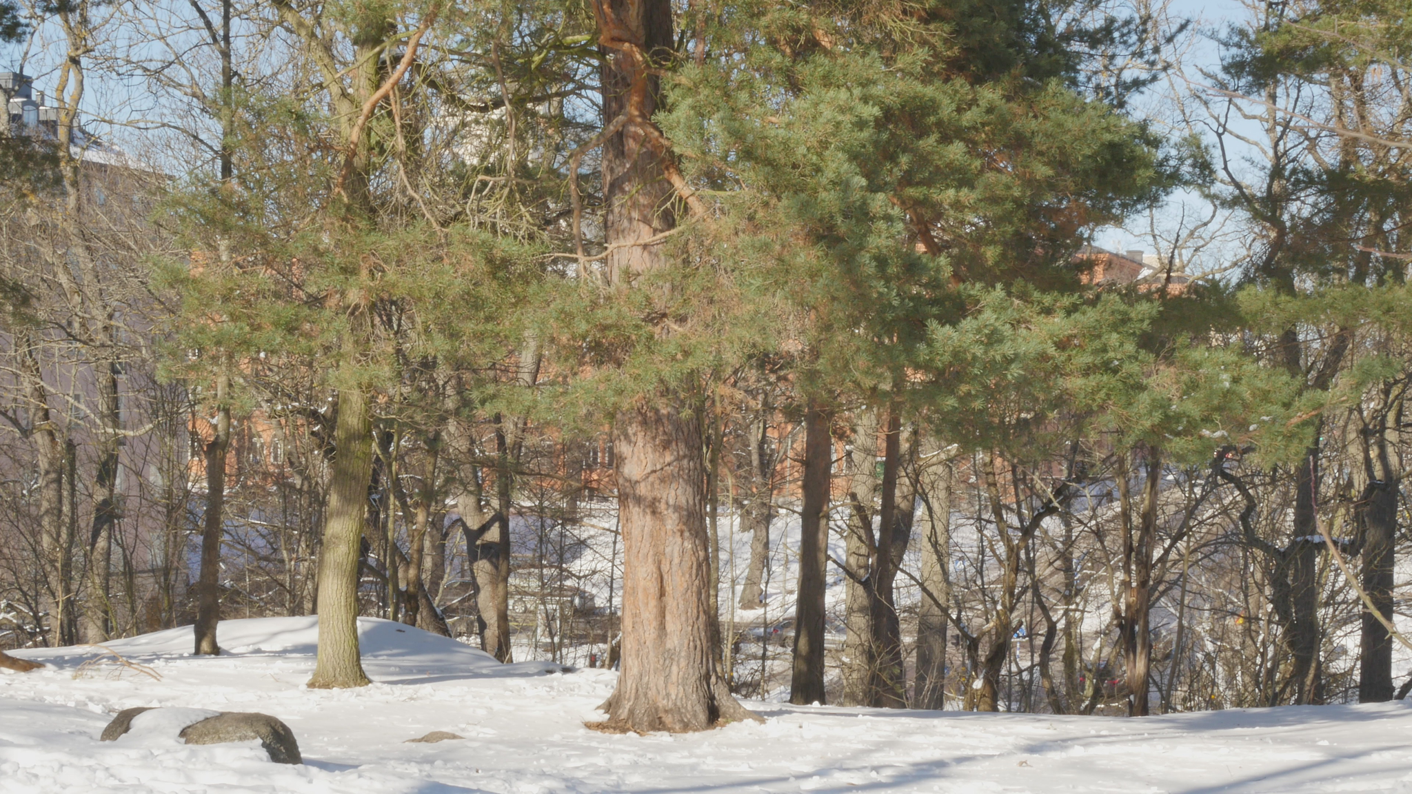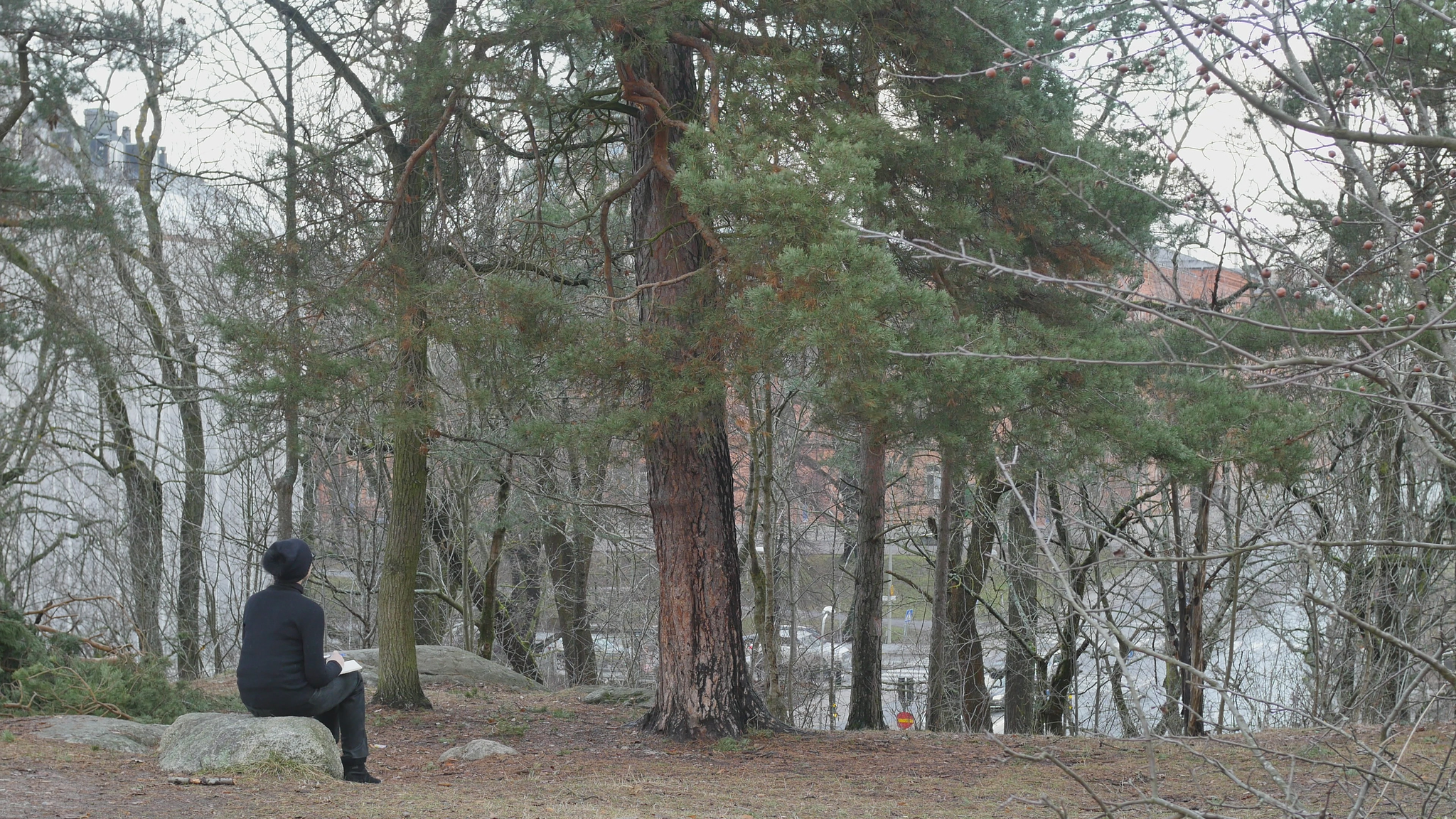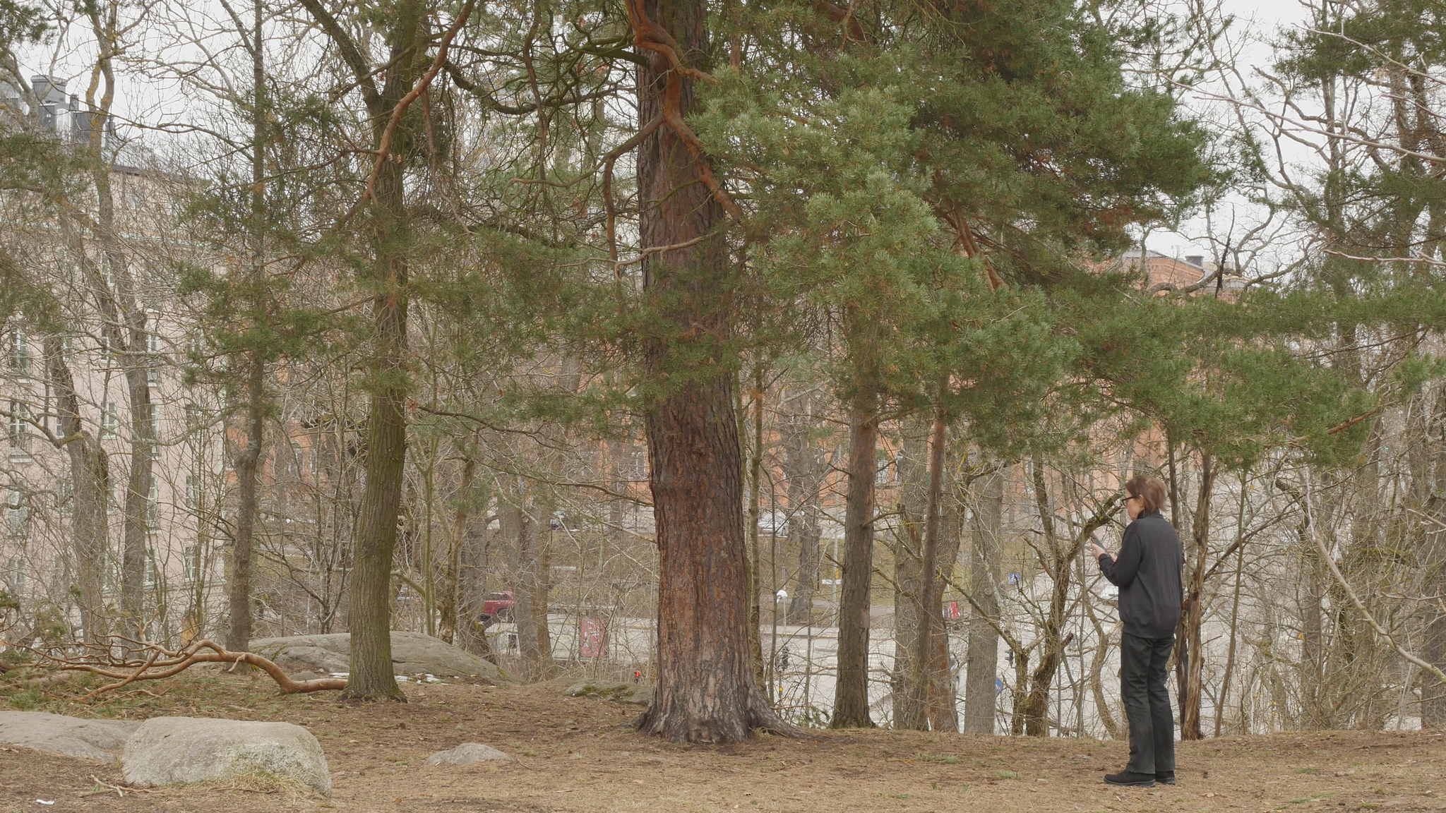Plötsligt ökar vinden, så det kan bli svårt att uppfatta det jag säger, men det viktigaste är att jag vill så väldigt gärna inleda ett samtal oss talar emellan. Vi finns ju överallt och hör till de vanligaste träden i Sverige som i Finland också, för vi klarar oss där andra inte gör det, om det är för torrt eller för vått för andra träd så klarar vi oss nog bara det finns tillräckligt med ljus. Men det är just ljus det är ont om så här års. Men även om vi är många i riket i stort, så är det ont om tallar i Stockholms innerstad. Här uppe på kullen i Nobelparken växer det en klunga av oss och jag tror nog jag är den äldsta av oss. Men annars är det rätt få tallar i parkerna här. Vi är inte parkträd på samma sätt som ekar, lindar, almar osv. Och jag har nog inte planterats här utan hittat hit på eget bevåg, med hjälp av något djur, en gnagare eller fågel kanske. Men det minns jag inte längre.