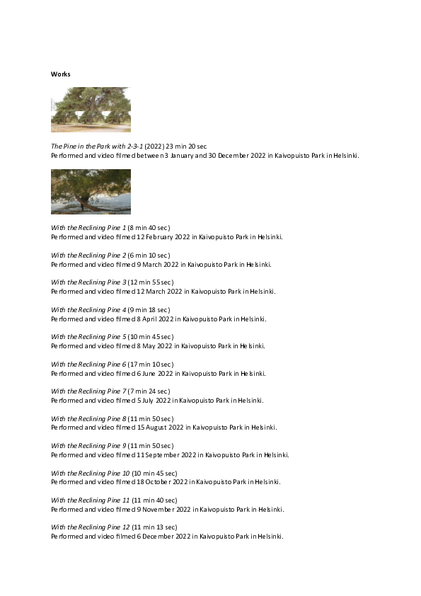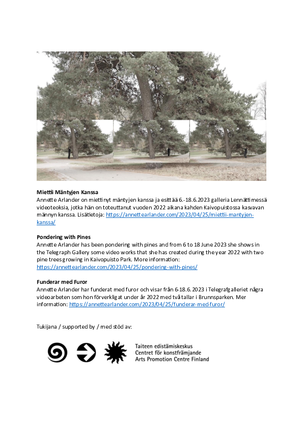 This exposition documents my explorations of pondering with pine trees. Tämä ekspositio dokumentoi yritykseni miettiä mäntyjen kanssa. Den här ekspositionen dokumenterar mina försök att fundera med furor.