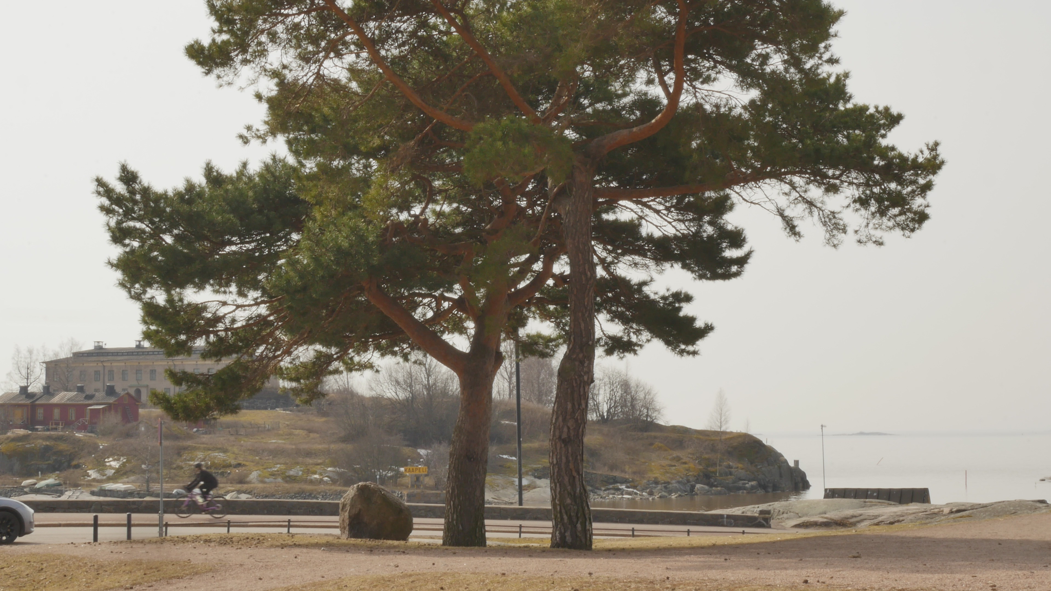 Hello pines, nice to see you again. It's the tenth of April and finally the spring is here. Today even the geese. Probably they were here before but we had a lot of snow and what we call back winter last week, so it's only now it feels like spring. Today it's like a mixture of mist and sun, there is a forecast for wind in the afternoon but right now there is no wind and it's really, really pleasant. And you look great. And I was reminded of, looking at you two as somehow separate and individuals, too, by a talk I listened to or a conversation, interview with Keith Williams, organised by the Networking with plants community, and he mentioned, he spoke about gift economy and indigenous ideas of reciprocity and so on, but he also emphasised the need for attending to specificities. So not to consider plants or trees too, I guess, only in terms of species, but to recognise that you have your special preferences depending on your life history and your place of growth and so on. Nevertheless I'm going to continue with a little bit of studying pine trees together with you, the pine trees, by going back to the book by Richardson and others about the biogeography and ecology of pinus. And to begin with I can tell you, if you didn't know already, that you or your species Pinus sylvestris is the most widespread European pine and you extend from boreal habitat southwards into the deciduous forests of both the Atlantic and central European forest regions. I quote: "For the Atlantic forest region along the west coast of Europe Pinus sylvestris is native only in Scandinavia and Scotland but it has been extensively planted and become naturalised in areas to the south in England and western France." End of quote. Yes I remember many years ago in Ireland people were very unhappy with the plantations of Scots pine which were not at all native there, and a forest that was completely different in character, no actually not Scots pines but spruces, which created a forest completely different from the woodlands they were used to, which were mostly deciduous trees. And of course spruce forests and pine forests are very different, so excuse me for mixing them up. Back to the home areas of Pinus sylvestris, so you are again the most dominant species in the forest regions and mountains of central Europe. So I quote: "Scots pine woodlands characteristically occcur on sandy soils across the lowlands of northern Germany and Poland with or without associated hardwoods", such as Betula, Alnus, birch and aspen and so on, "and often with the ericaceous shrubs in the understory." End of quote. Ericaceous, I think it refers to Erica, which is heather, and at least the heather that grows here in Finland, it could well be thriving together with pines because it's on poor soils. And then Richardson calls you a plastic species, plastic not in the sense of created of artificial material produced from oil, but plastic in the sense of adaptable or formable. So I quote: "This plastic species is successful in montane habitats as well, however, forming woodlands on dry calcareous gravels up to subalpine in levels in the Alps. Nutrient-poor acid soil at elevations of 1400 to 2500 m in the Alps and the Carpathians support sparse forests of Pinus cembra, often growing with Larix decidua", leaf spruce we call it. "Dry dolomitic soils in the mountains of Austria and southwards into Croatia support the typical subspecies of Pinus nigra, the black pine. The dwarf mountain pine, Pinus mugo, forms the highest subalpine community in central Europe, as previously discussed." So these your relatives, Pinus nigra and Pinus mugo, they are sometimes planted as park trees even here. I think that the small shrub-like pines that look like bushes or hedges, they are probably Pinus mugo. And Pinus nigra, I don't know, maybe Pinus cembra more than that. Later in the in the chapter there is a sequence with the title Widespread versus narrowly-endemic pines. And that's of course an interesting question I've never thought of, but of course there can be diversity not only between different species but diversity within a species. I quote: "Relatively little direct attention has been given to considerations of the historical, ecological and genetic factors that have interacted to determine the limits of distribution of individual pine species. The extremes of patterns of distribution can be shown by contrasting such widespread and ecologically plastic species as Pinus contorta and Pinus sylvestris with highly localised endemics such as Pinus peuce and Pinus radiata." And here are some Homo sapiens of the touristic variety, I suppose, but that's no problem. Anyway, it might be interesting for you to know that "Pinus sylvestris has the largest geographic distribution of any pine, ranging in its occurrence from the Scottish Highlands along the Atlantic to the Pacific coast of eastern Siberia," so across the whole Asian continent actually in the north, "with a relic population throughout the northern Mediterranean Basin" as well. "It reaches latitudes from 70° N in Norway to 37° N in Spain and elevations from sea level to 2600 m. The ecological range of Pinus sylvestris is equally broad." So not only geographic distribution but also the ecological range. I quote: "It is common in boreal forests in northern Europe and across Asia where it shows strong dominance of the most xeric slopes and sandy soils. In western Siberia and Mongolia it is a species of the arid steppes and is largely restricted to river courses and the margins of lakes." Well, they also suggest that what remains of Pinus sylvestris in the Mediterranean region and in Central Europe that they are relics from the Pleistocene. That shows how really, really old you are. So "here Pinus sylvestris occurs in the montane and subalpin habitats in the mountains of northern Portugal and central and northern Spain across the Pyrenees to the Alps and Apennines, and then on to the Balkan Peninsula and southward