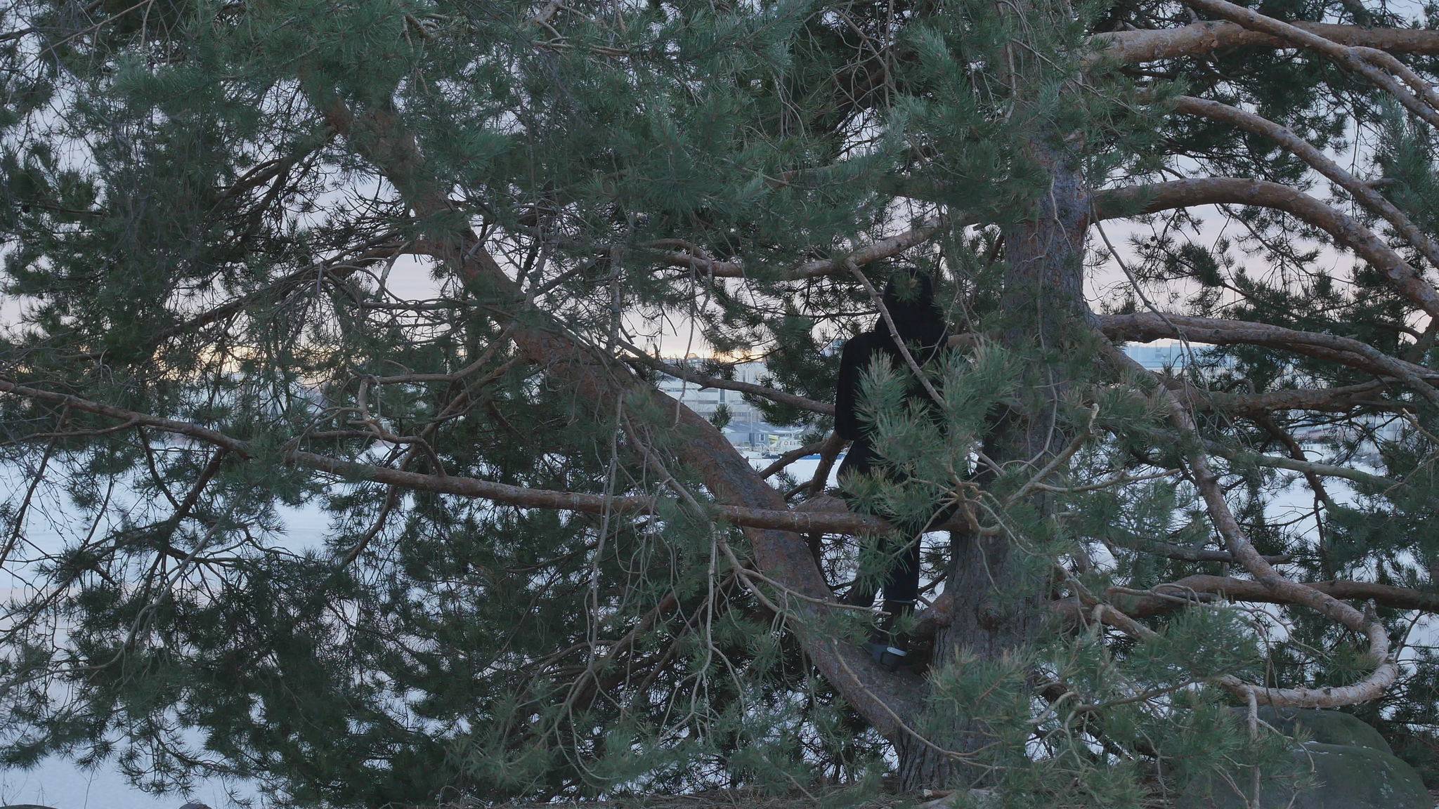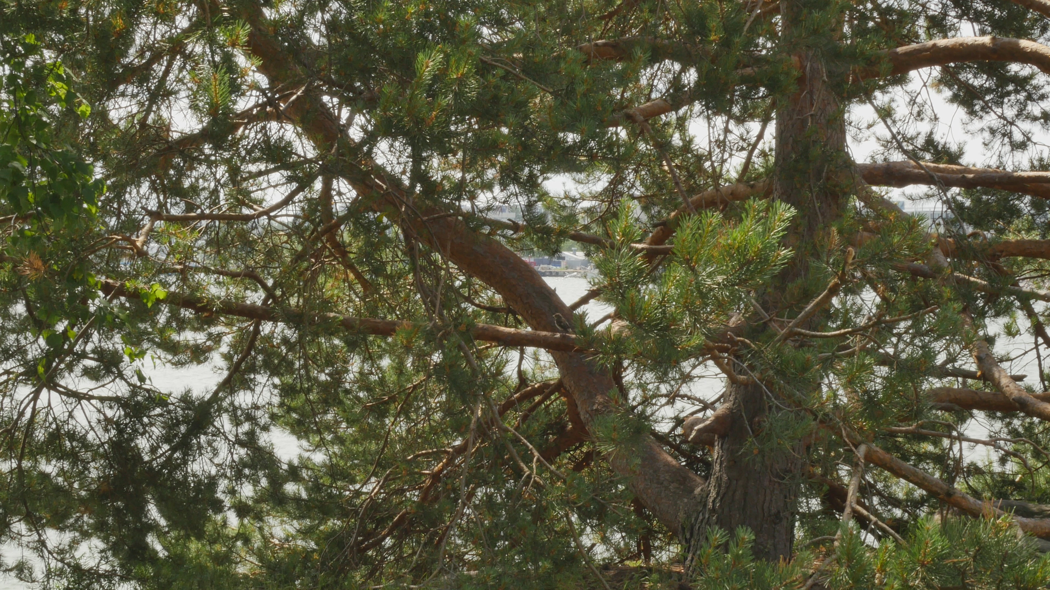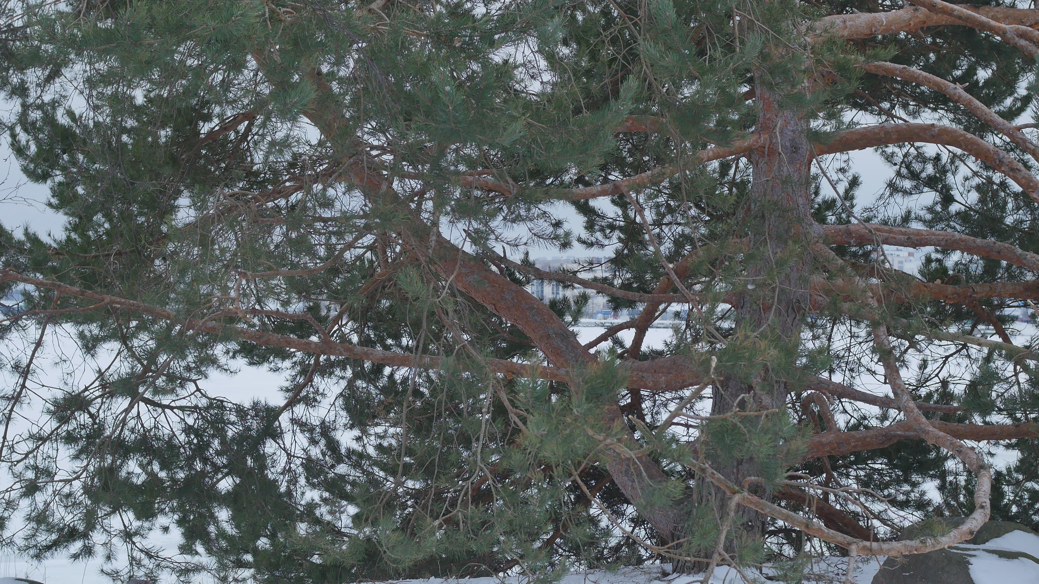 Hej kära tall, hej igen. Trevligt att träffas en andra gång. Du är ännu mer inbjudande och bekväm än vad jag kom ihåg jämfört med andra tallar som jag har besökt. Det är sent på eftermiddagen, solen går snart ner men trots att det blåser ganska häftigt så just här är det inte så illa, för det blåser från ost. På vägen hit gick jag förbi och titta på huset där jag bodde som barn som är här alldeles intill för att förfriska minnet och upptäckte att det var målat. Det var målat i en ljusare grå färg, det var liksom ganska mörk gråbrunt tidigare. Och så var det något slags vägarbete eller gårdsarbete framför. Men det märkte jag också att björkarna som växte där utanför de stora fönstren österut, ett slags, det är ett fyrtiotals- eller femtiotals-hus och det är ju inte det som man kallar för 'erkkeri' på finska [burspråk] egentligen, men alltså stora fönster som står ut från väggen. Det fanns i vardagsrummet och utanför dem fanns det björkar. Men nu var de flesta björkarna borta, det fanns några kvar i hörnet men de syntes nog inte, eller de syns inte från fönstret. Jag minns inte så väldigt mycket om det hemmet trots att jag tror att jag var någonting 13-14 när vi flytta därifrån så jag hade nog det mesta av min barndom där. Och jag minns att jag sedan som lite äldre så fick jag faktiskt det så kallade tjänarinnerummet, ett litet rum intill köket. Så jag hade till och med ett eget rum. Men i princip så var det alltså en hall och sen glasdörrar in till vardagsrummet och sen till höger glasdörrar till sovrummet och till vänster en vanlig dörr till arbetsrummet som var mot gatan. Och det minns jag att det var liksom föräldrarnas revir och min pappa rökte där så dit fick man inte gå, och om det inte var någon riktigt stor kris som till exempel om man hade ont i öra eller något sånt så då kunde man knacka på dörren på natten eller något sånt. Men sovrummet som egentligen var också barnens rum, så där fanns det en balkong mot gården, mot söder, och så var det Mumin tapeter, ljusblå Mumin tapeter, det minns jag gott. Och ja, vad mera? Alltså ett av mina allra första minnen, från en ålder när jag var ungefär fyra år, knappa fyra år eller till och med mindre, är faktiskt från vardagsrummet. Och jag skulle annars tro att det är något som man bara har berättat åt mig och som jag därför kommer ihåg, men jag har tydligt minne av det där speciella ljuset från gatlyktorna genom de kala björkarna som stod utanför, för det var mörkt i rummet. Och jag minns att pappa stod på något sätt som en figur vid dörren till arbetsrummet och så sa mamma att nu går vi på knä och nu ber vi så att Lasse ska få leva. Och det var så konstigt, det var väldigt konstigt och spännande och ovanligt för jag kommer inte alls ifrån ett religiöst hem. Men det roliga var ju att Lasse faktiskt fick leva. Alltså Lasse var egentligen Malte, min lillabror som var verkligt verkligt sjuk när han var två år eller lite under det. Han fick blindtarmsinflammation och för att han var så liten så upptäcktes det inte så att den han liksom explodera hela blindtarmen så att det blev liksom, hela buken blev inflammerad så att han opererades. Och det var på liv och död och det förstod jag ju inte då som barn men jag förstod att det var något väldigt väldigt liksom spännande eller farligt som höll på att hända. Jo, så det är minnet är liksom trovärdigt just för att jag har det där ljuset och skuggorna från det ögonblicket. Det som jag däremot inte har något minne av men som har berättats att jag har gjort, när min stackars lillebror var sjuk, så hade jag krävt att få klä mig min finaste mörkblå sammetsklänning och när läkarna kom på besök så sprang jag också i hallen och skrek att jag är också sjuk, jag också sjuk, titta på mig! Så kan det vara, men det är minns jag ju inte, det har man berättat åt mig. Men nu finns alltså inte björkarna kvar. Däremot så tittade jag lite mot gården och det stämmer att där är också vackra tallar. Där är någon slags stenmur mot granngården också såna gamla gråstenar och sen finns det tallar där intill. Men jag minns inte att jag skulle ha varit så mycket på gården faktiskt, och balkongen användes nog mest för att vädra saker och ting. Men Mumin tapeterna minns jag och Mumin figurerna fanns också på tallrikarna, när man skulle äta upp gröten så fick man se Mumin. Så att sedan när Mumin blev populära på nytt för något tiotal år sedan så tyckte jag att det var väldigt konstigt, för de hörde liksom till 50-talet eller början på 60-talet i min uppfattning. Vad annat kan jag tänka mig? Det var, jag lovade förra gången att jag skulle försöka prata barndomsminnen med dig, men jag vill ju också veta hur du mår och om allt är bra. Det är det antagligen för här växer du i lugn och ro. Det är mycket snö skottat upp här alldeles intill men inte ända upp till dig. Och din bark på de här grenarna är vacker, rödbrun gul. Vad mer kan jag säga? Kanske det får räcka för den här gången. Jag tackar för att du lyssna på mig igen och jag ska komma och hälsa på dig igen om en månad eller så. Sköt om dig till dess och ha det bra.
