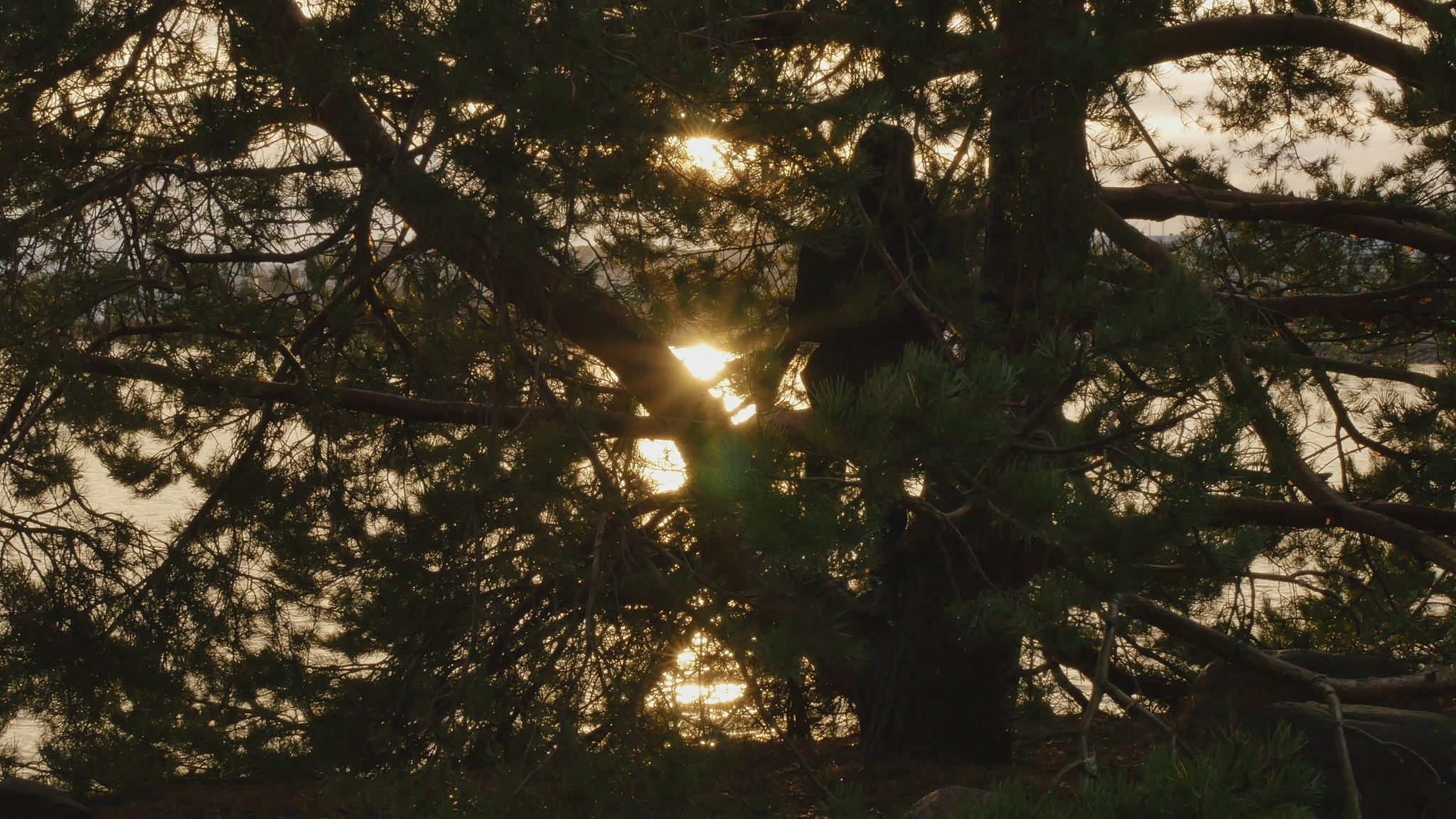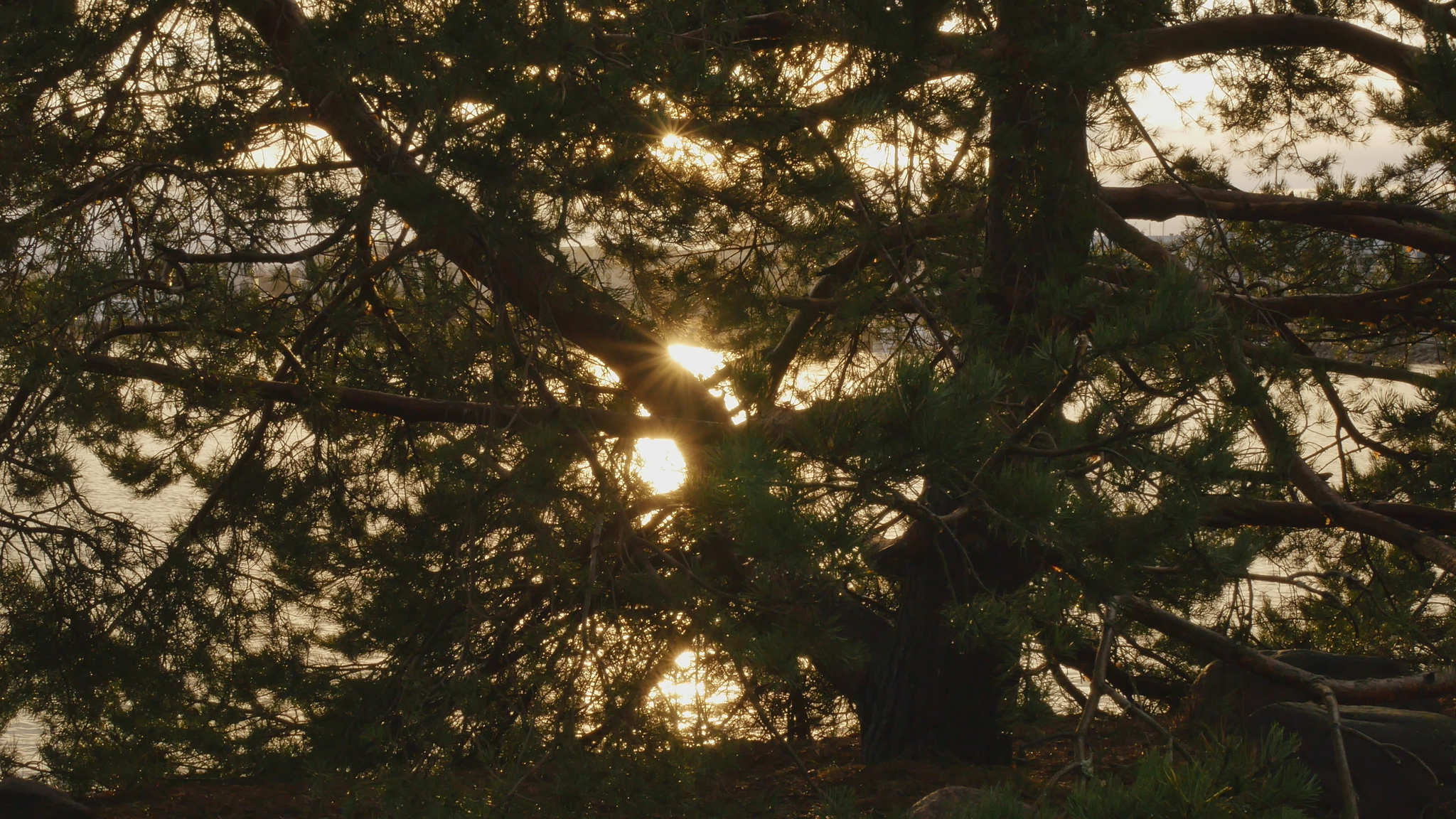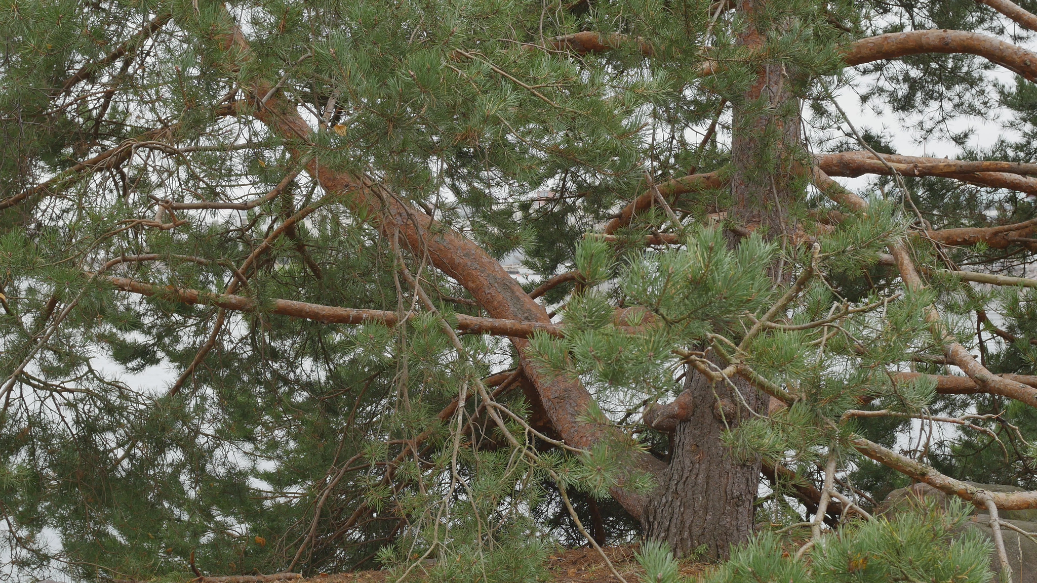 Hej på dig kära tall, roligt att se dig igen, och i så fint väder. Det är länge sen sist eller en månad och det här är antagligen den sista gången jag kommer till dig, åtminstone i de här tecknen, för att komma ihåg barndomsminnen så att säga. Idag är den kortaste dagen på året eller jag tror att tekniskt sett så är det imorgon. Imorgon är det vintersolstånd på morgonen så det är väl imorgon som dagen är kortast men den är nog rätt kört nu idag också. Klockan är strax två på eftermiddagen och solen går ner lite efter tre så det är en timme till solnedgången. Även om solen just nu lyser ganska klart mellan molnen även om den är låg, ligger lågt. Det är ju snart jul, julafton är nästa tisdag, så jag tänkte att det kan ju passa som avslutning att försöka komma ihåg barndoms jular, för sådant brukar man ju komma ihåg. Och när jag promenerade hit så tänkte jag på det just hur man egentligen inte kommer ihåg saker som alltid upprepades, för att dem lade man inte märke till, utan man kommer ihåg de sakerna som var på något sätt speciella engångsföreteelser även om sedan minnet förvandlar dem till att de liksom fyller hela utrymmet. Och jag har till exempel just inga som helst minnen från tonåren från jularna som vi firade då på Norrsvängen utan de barndomsminnen jag minns är från Smedjeviksvägen och sen från Koivumäki i Kalvola, på landet i Tavastland. Jag minns till exempel att vi hade en balkong i sovrummet på Smedjeviksvägen och så var det någon jul som vi liksom ivrigt vänta på julgubben i tamburen, i hallen, och väntade att nu ska vi inte, vi måste få syn på honom för vi hade då missat honom någon annan jul. Alltså jag talar då om min bror och mig, min lillebror. Och då var ju den lurendrejaren, han hade lämnat en säck med presenterna på balkongen. Och det trodde vi, eller jag trodde det för fullt då ännu, jag var väldigt liten så att det var ju snöpligt att vi inte tänkte på det. Men på landet så kommer jag ihåg att, jag har en känsla av att vi var inte där så många gånger men de gånger vi var där så det var liksom den riktiga julen. Givetvis i liksom ett snöigt landskap i ett gammalt trähus med alltså det rummet som vr som salen som vi kallade för pirtti som hade liksom väggarna med stora stockar och gammaldags allmogemöblering och en brasa som hade gjorts efter modell i Gallen-Kallelas Tarvaspää, likadan till formen och så vidare. Men, och hela det där med att det var mörkt ute och vi byggde ljuslyktor av snöbollar för att de som åkte till julkyrkan på morgonen så de skulle få se dem lysa på gården. Ja, men då minns jag att ett år så var det min mammas kusin Sulo Kautio som var alltså bonden, grannbonden, som var julgubben och det var, jag liksom avslöjade nog inte honom men det var något mystiskt för att ärmarna på julgubbens rock såg likadana ut som Sulo setäs, farbror Sulos ärmar, så det var lite suspekt. Men vi var snälla barn och vi spelade fyrhändigt någon trudelutt på piano och sjöng för julgubben och så vidare. Ja, alltså en [ett] av de kanske liksom tydligaste, klaraste lyckominnen jag har, alltså sådan där liksom på engelska talar man om ’bliss’, en känsla av salighet. Det låter pretentiöst men det minns jag, för vi hade då julbastu och bastun var en liten byggnad, inte vid stranden utan på andra sidan gården så att säga så att det var en bra bit att gå dit. Och även om det var en stig och det var genom snön så det var ju mörkt och kallt. Och då minns jag att jag var liten och antagligen så hade jag varit så rädd för den där vägen tillbaka från bastun att jag var så salig när pappa bar mig inlindad i mormors yllesjal, så bar han mig hela vägen från bastun in i värmen. Och att bli liksom buren i en varm sjal genom det kalla och det mörka och allt det farliga, det var bara en sådan total, ja, salighets upplevelse. Och jag har tänkt senare att berodde det på det att min pappa inte brukade röra vid oss så ofta eller var det faktiskt det att jag hade varit så rädd så att det var en sådan lättnad sedan att det var också, att det var en sådan lyx att bli buren genom snön. Nå ja, men det att vara på landet och liksom uppleva en, allt vad det innebär att kunna skida och. Jag minns det vara någon jul som vi gjorde en skridskobana på sjön med liksom vägar som var skottade så att man kunde skrinna på isen så att snön var borttagen, och det var ju jättespännande och roligt. Och sen blev man ju frusen om fötterna men sen kunde man komma in i värmen och fick varm saft och. Det är ju i och för sig det där med brasan, det var ju något alldeles oerhört. På Smedjeviksvägen hade vi ingen öppen spis, på Norrsvängen fanns det sedan men då var vi ju vuxna, jag var tonåring. Men det där med att vakna på morgonen, och du hade mommo, alltså Pompo, jag kallade henne Pompo, mormor hade jag lagt våra kläder att värmas framför brasan på stolar, så att man kunde komma liksom från sängen direkt springa till brasan i vardagsrummet och klä på sig varma kläder, vad är underbarare än det. Det var också en sådan där total lyx. Men jular är ju ofta nog alltså, sen när man blev äldre, så jular kan vara väldigt konfliktfyllda situationer också för att alla har stora förväntningar på sina julklappar och på att det ska vara lugn och harmoni och allt ska vara fint och alla har olika förväntningar och sen infrias de ju inte nödvändigtvis alls. Men ja, jag har nog fina minnen från barndomens jular just från landet och det långa, långa träbordet som var fyllt med all slags läckerheter. Ja, men det var också, det var en sådan blandning, för att min mormor och min mormors syster som också firade jul med oss, så i synnerhet min mormors syster hon var väldigt religiös så det var klart att det skulle läsas julevangeliet och så skulle vi sjunga