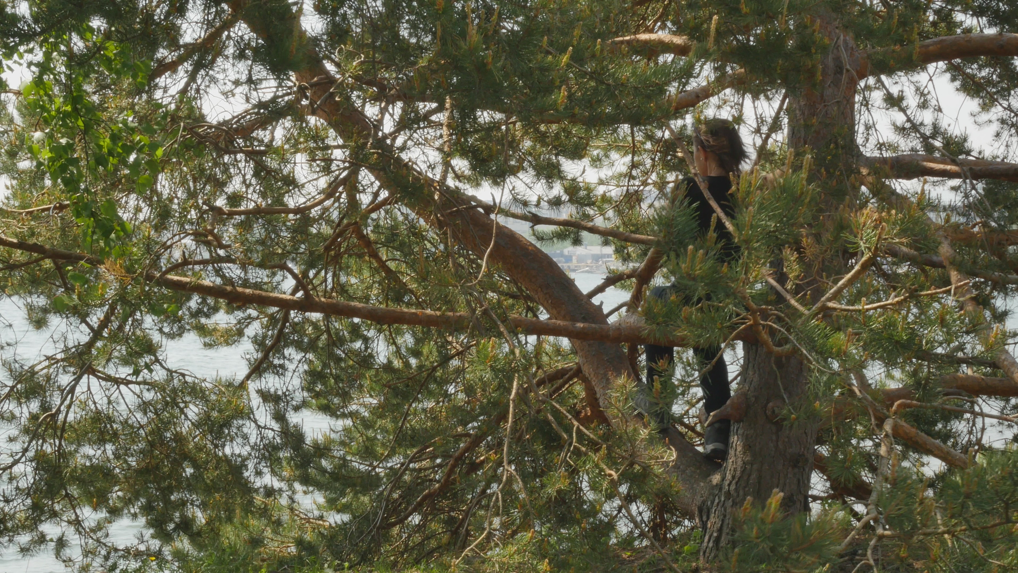 Hej på dig kära tall. Roligt att ses igen, det är inte så länge sedan jag var här sist, ett par veckor. Det är den 7 april och det har blivit vinter på nytt. Nå, de säger att det ska bli varmare, men det har kommit en massa snö. Förvånansvärt nog, så har den inte smultit, men havet är öppet. Det finns små isflak här i stranden och man kan höra dem ibland när det kommer vågskvalp, men i princip så är det isfritt. Och det ändrar ju det hela en hel del. Och så kör det ju bilar här; de kommer ner längs med Norrsvängen och svänger. Jag tror jag sitter på något sätt annorlunda än vad jag satt senast, på en annan gren eller så bara inbillar jag mig. Men oberoende av så tänkte jag fortsätta med barndomsminnen. Jag vet att det är lite fräckt att använda dig som terapeut på det här sättet men jag tänker att det kanske inte stör dig fast jag pratar mina barndomsminnen för då andas jag ju här ut min koldioxid som du kan sedan utnyttja om du vill i din fotosyntes. Och så kan jag andas in din fräscha luft, det fräscha syre som du ger ut tillsammans med de aromatiska oljor som nog säkert utsöndras från dina barr. Jag känner inte lukten så här, men att vist har de ju tallskogar en alldeles speciell doft. Det jag tänkte prata om lite var det där med skolan, för nu har det ju varit tal om problemen i skolan och bland annat mobbning. För det var en fruktansvärd skolskjutning i Vanda nu här är alldeles intill, där en tolvårig pojke sköt en annan pojke och två flickor i samma ålder på samma klass. Och en av orsakerna bakom det här har då påståtts vara mobbning. Och då började jag tänka att har jag något minne av mobbning. Och jag minns från alltså folkskolan, där jag gick här på Drumsö i den svenska folkskolan, så minns jag inte direkt mobbning men en situation som liksom var en etisk konflikt för mig och som liknade det. Det fanns en flicka som heter Isabelle i klassen och hon var lite tafatt och lite klumpig och väldigt söt nog men lite annorlunda. Och då liksom ville inte de andra vara med henne. Och jag var ju i princip vän med henne, men sen när liksom de andra inte vill vara med henne så hade jag ju ett dilemma, för att jag vill ju inte bli utstött från gruppgemenskapen för egen del, så att då hade jag det här att jag på något sätt backade ur och istället för att försvara Isabelle, så liksom backade jag helt enkelt och tog inte henne i försvar. Och det är minns jag fortfarande att jag liksom kände skam då redan. Det var ingenting farligt och mobbningen var liksom inte, det var inte något våld eller några elakheter, det var mer ett slags utstötande som kan vara ganska så hemskt för ett barn. Men jag minns den där skammen, att jag hade en känsla av att jag borde ha försvarat henne. Och den återkom sen senare när jag var lite äldre, för då utnyttjade ofta situationen när jag kände att jag borde försvara någon som var liksom orättvist behandlad, framför allt mot lärare, och det bottnade just i den här liksom skammen att jag inte då liksom ställde upp och försvarade Isabelle mer. Men jag var ju en liten ynklig flicka, om inte nu blyg så liksom inte alls en tuffing när jag var riktigt liten. Jag var, fast jag hade gått i liksom i svensk barnträdgård så jag kunde ju inte så bra svenska. Så jag tyckte att folkskolan till att börja med, det var svårt. Och jag har senare tänkt att visst, jag hade ju gått i svensk barnträdgård och jag hade pratat svenska med pappa och med farmor, men i huvudsak pratade vi ju finska hemma och med mommo, alltså Pumpu, som var mammas mamma, mormor, som var mycket hos oss. Svenska var inte något som jag var så bra på. Men framför allt så var det ju förstås det att jag lärde mig då skriva och läsa på svenska. Kanske jag läste någonting lite redan innan jag gick till skolan, men i princip så var det därför som det var svårt för att jag inte kunde läsa eller skriva. Jag minns att det var svårt att veta att skulle det heta särskilt eller skärsilt och det blev lätt skärsilt för mig då, och så här. Nå, det var ju småsaker. Men det som jag minns väldigt bra från folkskolan var att den första lärarinnan hon var en gammal kvinna och hon kallades fru någonting, Nord någonting. Och det jag minns, hennes händer, hennes stora tumnagel som så. Gamla människor har ju konstiga händer, det har jag, jag har själv konstiga händer nu. Men hon förklarade att om man hade myggbett så skulle man sätta saliv, man skulle sätta spott på myggbettet så kliade det inte. Och det var ju sant, det kunde jag pröva på själv och det var en nyttig lärdom. Men vår eller min älsklingslärarinna var sen Else Winqvist och jag vet inte om hon undervisade i annat, men jag minns henne som teckningslärare. Och det var jätte härligt, teckning var det bästa. Eller egentligen inte teckning, för jag var aldrig bra på att liksom teckna i bemärkelsen rita, återge det jag såg i verkligheten, men jag älskade färger. Som alla barn så älskade jag att klottra med färger. Och varför jag minns också Else Winqvist så bra är för att hon tog oss med, några av oss elever, och gjorde ett TV-program om att teckna och rita. Och jag tycker att det var så spännande för att, men lite komiskt, jag tyckte att det var lite löjligt till och med för vi skulle göra då, till exempel jag fick göra flera varianter av samma teckning för att då, det skulle liksom tas bilder så att de framskred; att först var teckningen bara liksom bara början och sen var den till hälften färdig och sen var den nästan färdig. Och det var en, jag minns att det var en fruktskål med fot, liksom en glas fruktskål på något sätt med äpple och apelsin och frukter, och att bakgrunden var så där starkt ultramarin blå och sen frukterna var liksom orangt och gult och rött, något sånt. Och först efteråt har jag ju tänkt på att TV:n på