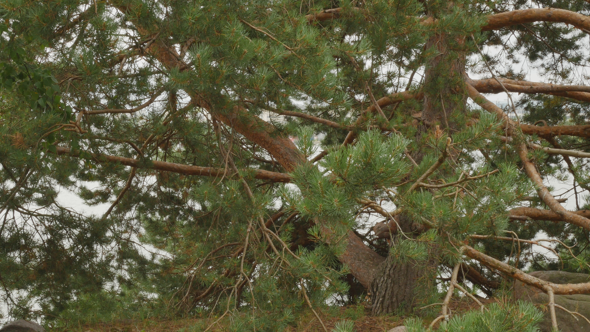 Hej på dig kära tall. Friska vindar, härligt med sjöbris, men vi ska se hur det går med inspelningen. Det är den 9 augusti, rötmånad men så känns det ju inte här vid havet. Just nu känns det sådär extra nära vattnet för det blåser mot stranden och solen lyser på stenarna här under dig. Senaste jag var här i juli så berättade jag om min utfärd till Lubondas i Borgå eller är det egentligen Lovisa skärgård. Och idag tänkte jag berätta om en motsvarande utfärd till Koivumäki i Kalvola som nuförtiden är en del av Tavastehus, så Kalvola existerar inte längre. Men både Hattula och Sääksmäki som har sina berömda kyrkor på båda sidor om Kalvola kyrka som är alltså är nybyggt på trettitalet, så de är ju mera kända. Och jag var där med min bror och hans hustru av och an på en dag och så träffade jag också en av mina småkusiner där, som är trots att de är småkusiner så de var ganska nära oss när vi var barn för de bodde granne om somrarna. Det är alltså min mammas släkt som kommer därifrån, södra Tavastland. Och Koivumäki är en stuga som är byggd till en villa, den kallas för Apalan huvila, men det är ju inte en riktig villa utan, ja en stuga, en sådär nationalromantisk stuga byggd på tjugotalet som sen byggdes till på femtiotalet så att det blev en liksom, ett sommarställe helt enkelt. Och det var väl från början ett sommarställe då för min morfar och mormor och min mamma som var enda barnet, som då i princip bodde i Tavastehus där morfar var chefredaktör för Häme-lehti. Men sen i något skede så bodde de nog där på vintern också, kanske för att det var ekonomiskt svåra tider eller. Och det minns jag att det talades om att morfar hade den första bilen i byn, för att han körde då till Tavastehus. Nå, jag träffade ju aldrig honom. Han dog långt före jag föddes, alltså i krigstiden, inte i kriget men i samma tid. Men det var, vad jag ska säga, ännu för tio år sen så var det liksom emotionellt väldigt tungt att besöka Koivumäki, för det kändes som en sån förpliktelse. Dels var det fyllt av minnen men sen höll det på liksom att ramla ihop och förfalla och det kändes sådär övermäktigt, helt överväldigande att på något sätt axla ansvar för det där stället. Men å andra sidan så trivdes jag där ganska länge, kanske inte mera för tio år sen men som rätt gammal ännu så var jag där ibland på hösten ganska länge och jobba. Jag minns att jag satt och rökte på verandan och skrev och hade ljus fast det var ren kyligt. Och då var jag inte rädd att vara ensam där. Men sen på något sätt, kanske efter att där hade funnits inbrott, det var ett inbrott där, men det var på vintern. Men också på något sätt, när jag blev äldre så blev jag, jag tyckte liksom inte om att vara där ensam. Jag blev rädd för det, inte var jag egentligen rädd för några människor som skulle bryta sig in eller för möss eller för djur, jag var bara allmänt rädd, för mörkret, för det okända. Så kan det ju gå, så att jag förlorade på något sätt kontakten med det där stället. Och då var varje besök bara en liksom påminnelse om allt som borde göras. Men nu däremot så var det något helt annat, helt enkelt för att min bror och hans hustru redan för ett par år sen gjorde en stor ombyggnad där, verkligen liksom en totalrenovering. Det började med taket och sen att måla huset och lägga nya plankor, men nu gjorde de alltså en så stor operation att huset är nu med i vattenledningen, alltså den kommunala, vattenledningssystemet. Och där finns då, det har funnits innetupp ren länge men det var ändå liksom med vatten från brunnen och det var alltid problem att stänga av vattnet för vintern och så vidare. Men så att nu är det liksom allt i kommunala vattenledningsverket och nytt badrum och allt är fint och snyggt. Men sen är det också förstås det att, i synnerhet, förstås min bror och hans hustru, men deras dotter med familj och tre barn har tillbringat mycket tid där. Och det har på något sätt bidragit till att förändra hela huset. Så att det är inte bara renoveringen och sen också omläggningen av en del av trädgården som har gjort förändringen. Men nu är det så att säga ett så annorlunda ställe att jag är bara lycklig när jag ser att det liksom förändras och lever. Och jag är inte egentligen, det är väldigt lite ångest i den där känslan av att saker inte längre är som förut, utan tvärtom så är det ganska befriande att stället lever och utvecklas och får sin egen personlighet med de nya invånarna. Det blev på något sätt väldigt tydligt när jag insåg att jag inte ens hade behov av att kliva upp till övre våningen till min lilla sängkammare som har varit mitt revir och där jag har brukat kämpa för att hallen där utanför i övre våningen inte skulle bli ett ställe att bara dumpa saker i för att jag måste gå därigenom för att komma in i sovrummet, som är väldigt sött och näpet och som jag har själv målat en del av. Det liksom blått golv och orange gula, ja mjukt åt det hållet gamla tapeter och vita mattor, nåja det är gulligt. Men nu blir det dags för Noras döttrar att få det som ett sovrum och det känns bara jättebra. Det är inte alls vemodigt ens längre. Så det var bra att besöka det stället faktiskt. Nå, alltså jag hade börjat tänka på alla möjliga minnen när jag promenerade hit hemifrån, det är ju en bit från Fabriksgatan till Drumsö, så jag börja tänka på liksom ifall jag hade några tallar som jag umgicks med när jag var barn. Men egentligen inte, jag minns att mamma berättade att en tall vid liksom den vänstra porten vid landsvägen, att hon brukade vänta på sin far där vid den och den var viktig för henne. Men den var så invuxet så att för mig spelade det ingen roll. Och det finns ju tallar, en väldigt vacker tall fanns nu och kom f