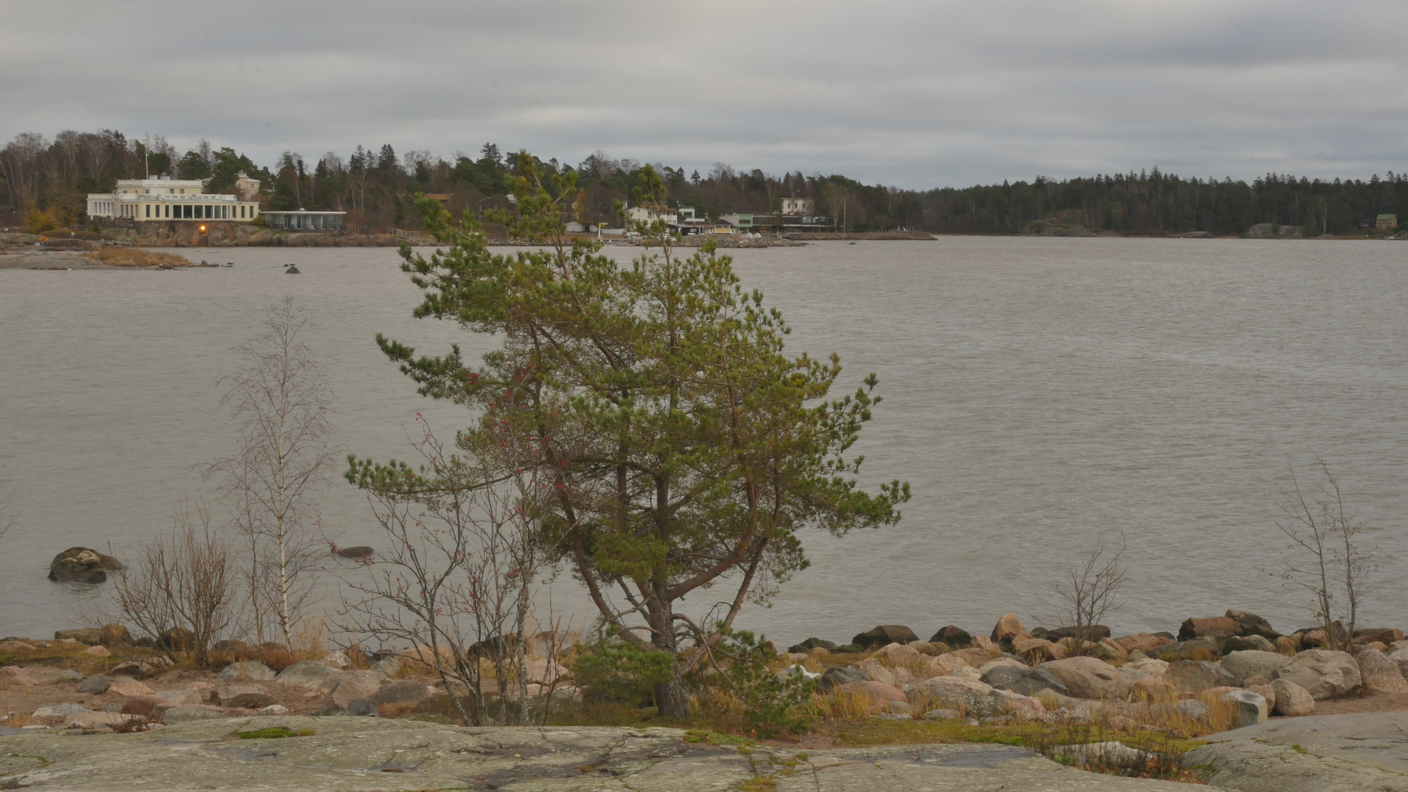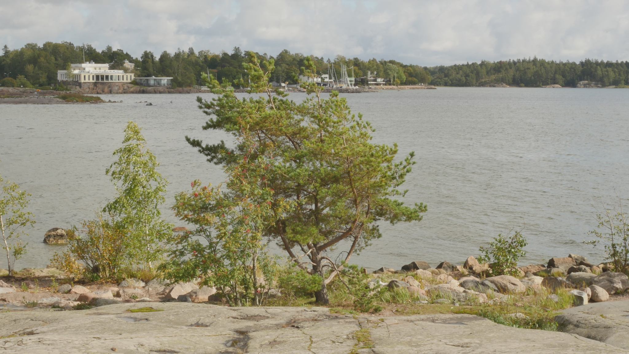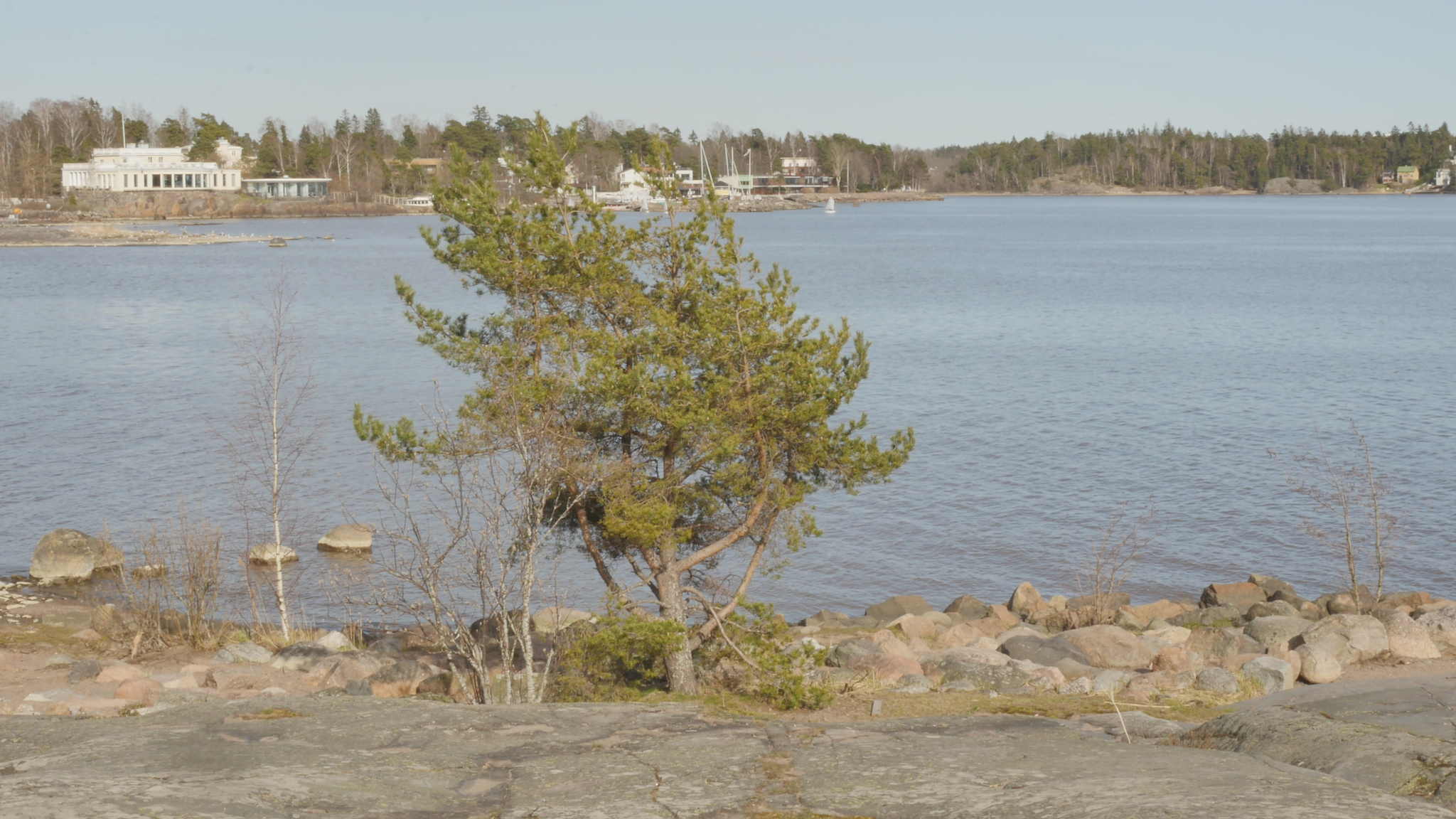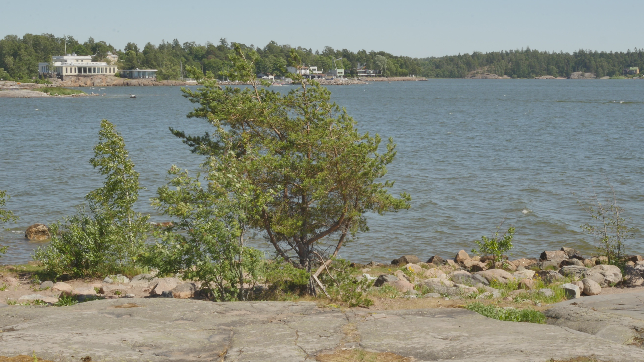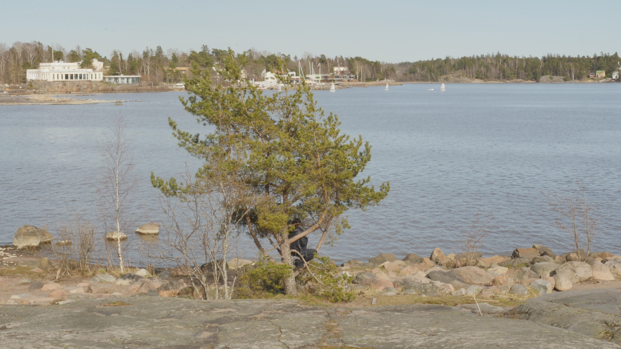 Hyvää keskiviikkoiltapäivää mänty, hyvää keskiviikko iltapäivää. Tuulee, ja tässä on tuulinen paikka vaikka vaikka kuinka yritän istua selkä tuuleen. 13. marraskuuta. Yllättävän lämmintä suhteessa kuitenkin mutta tuulenpuuskat ovat kylmiä. Tänään ajattelin puhua kanssasi ilmakehästä ja ilmapiiristä, suomen kielessähän ne ovat kaksi eri sanaa mutta siis englanniksi atmosphere. Kyllähän suomeksikin voi sanoa atmosfääri tai ruotsiksi atmosfär, ja se tarkoittaa siis sekä tätä ilmakehää joka maapalloa ympäröi, joka on osa biosfääriä tai sitä laajempikin kai. Ja sitten toisaalta ilmapiiri, joka suomen kielessä on suurin piirtein sama kuin tunnelma. Mutta atmosfääristähän puhutaan että jossakin seurueessa on tietynlainen atmosfääri tai ilmapiiri tai... Mutta jotenkin ilmapiiri on niin vahvasti ihmisiin liittyvä asia, että melkein vaikea ajatella edes että tässä olisi ilmapiiri, vaikea ajatella, että huoneessa olisi jonkinlainen ilmapiiri ilman, että siellä olisi ihmisiä. Tunnelma tietysti voi olla, joka tulee materiaaleista ja väreistä ja muodoista. No, ehkä ilmapiirikin. Mutta miksi tätä nyt ajattelin oli koska olin eilen, minulla oli hieno kokemus toimia verkon kautta toisena opponenttina väitöskirjaan, jonka nimi oli englanniksi Estranging Trams: Atmospheres of Trams in Art elikkä Raitiovaunujen vieraannuttaminen tai oudoksi tekeminen ja raitiovaunujen ilmapiiri taiteessa. Miksi minä nyt, mitäs minä raitiovaunuista tiedän, mutta koska kyseessä oli taiteellinen tutkimus vaikka tutkimus tehtiin ikään kuin kulttuurintutkimuksen alalla ja itse asiassa liikkuvuus- siis jopa yhteiskuntatieteiden alalla, se oli monitieteinen. Ja minä olin ikään kuin edustamassa sitä taiteellista asiantuntemusta ja taiteen tekemisellä olikin varsin merkittävä rooli siinä väitöstyössä. Se oli keskeinen metodologia koska väittelijä esimerkiksi piirsi raitiovaunuja, sekä raitiovaunujen sisällä, ihmisiä ja asioita ja näkymiä, mutta myös sitten raitiovaunuja ulkoapäin ja raitiovaunupysäkkejä. Sen lisäksi hän hän teki performansseja ja kaikenlaisia työpajakokeiluja suhteessa raitiovaunureitteihin ja myös raitiovaunuihin. Mutta siis mitä tämä meidän keskusteluihimme liittyy, niin lähinnä sitä kautta, että voisiko ilmapiiri olla ikään kuin asia jonka avulla kommunikoida ei-inhimillisten olentojen kanssa. Tämä väittelijä hän perusti työnsä semmoisen saksalaisen esteetikon, Böhme nimisen esteetikon teorioihin, jotka ovat kyllä vahvasti ihmiskeskeisiä koska Böhme nimenomaan korostaa, että atmosfääri on ikäänkuin puoliksi objektiivinen ja puoliksi subjektiivinen. Siihen voi vaikuttaa, atmosfäärejä voi luoda ja rakentaa erilaisin keinoin, mutta ne ovat aina kokemuksellisia. Ja jotenkin - mutta tietysti jos hyväksyttäisiin, että muutkin elolliset voivat kokea, voivat olla kokemuksellisia subjekteja kuin ihmiset niin silloin tämä minun kyykistelyni sinun oksallasi, se voisi olla sinulle kokemus. Ja samalla tavalla kuin sinä yhdessä tämän tuulen ja tämän kivikkoisen rannan ja aika epämukavan asentoni kanssa tuottaa aivan tietynlaisen ilmapiirin nyt tähän keskustelun. Olisihan se hauskaa jos voisi ajatella ikään kuin ilmapiiriä myös muiden siihen osallistuvien kannalta, ainakin elollisten sellaisten. No, mutta tietysti siinä on suomenkielen ilmiselvä rajoite, että meillä on kaksi eri sanaa, että niitten yhteys, ilmakehän ja ilmapiirin yhteys ei ole niin ilmeinen. Koska se on toki ilmiselvää, että esimerkiksi ilman koostumus jossakin tilassa, vaikka raitiovaunussa tai nyt tässä. niin se vaikuttaa meihin ikään kuin tiedostamattamme, vaikka emme tajua sitä, että tämä olisi joku tietty kokemus, niin jos esimerkiksi happea on vähän tai ilma on ummehtunut niin totta kai se vaikuttaa meidän aivoihimme ja muutenkin. Mutta tässä nyt on happea enemmän kuin tarpeeksi tämän tuulen takia, joka tapauksessa. Mitä muuta minulla olisi sinulle kerrottavaa. Olen huomenna lähdössä Tukholmaan kissojen kanssa taas, melkein kahdeksi viikoksi ja sitten tulen vasta joskus joulun alla uudestaan keskustelemaan kanssasi. Toivotaan että ei tule pahoja myrskyjä. Toivon sitä sekä omasta puolestani, että en joutuisi laivaan joka keinuu pahasti, mutta tietysti sinun kannaltasi, jotta ei tulisi myrskyjä jotka uhkaisivat kaataa sinut tässä rannalla. Mutta toisaalta olet kasvanut sillä tavalla pyöreään muotoon ja levittänyt oksasi eri suuntiin että luulisin, että sinulla on tässä aika hyvä tasapaino. Ei ole, sinulla ei ole niin kuin semmoista korkeaa runkoa, joka voisi sitten katketa, koska siinä on niin kova vääntövoima jos tuuli sitten sitä latvusta taivuttaa. Tästä tuli nyt tämmöinen lyhyt keskustelu mutta hauska että sain taas jutella kanssasi ja kaikkea hyvää nyt tähän marraskuun loppupuoleen. Kiitos taas.