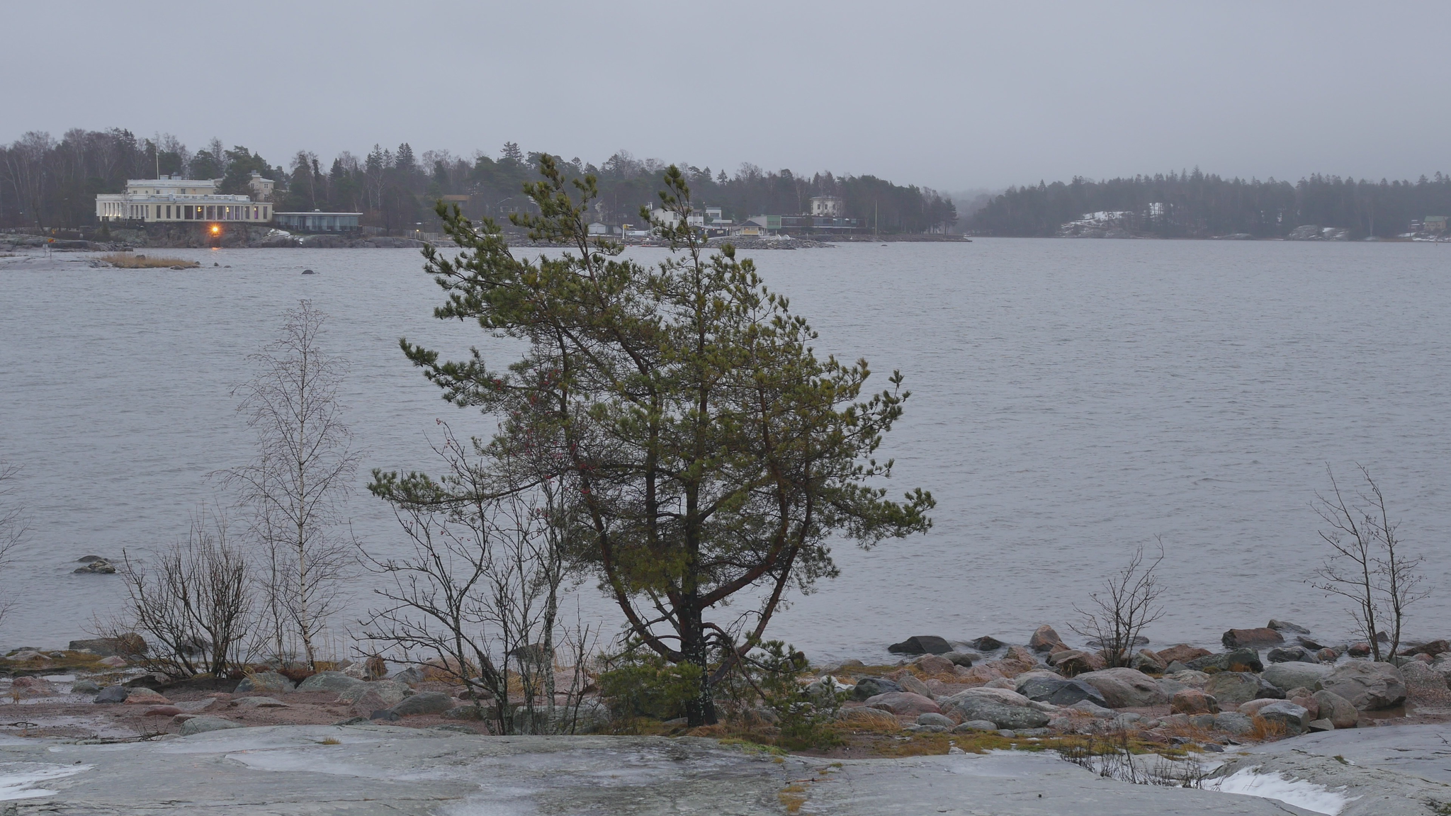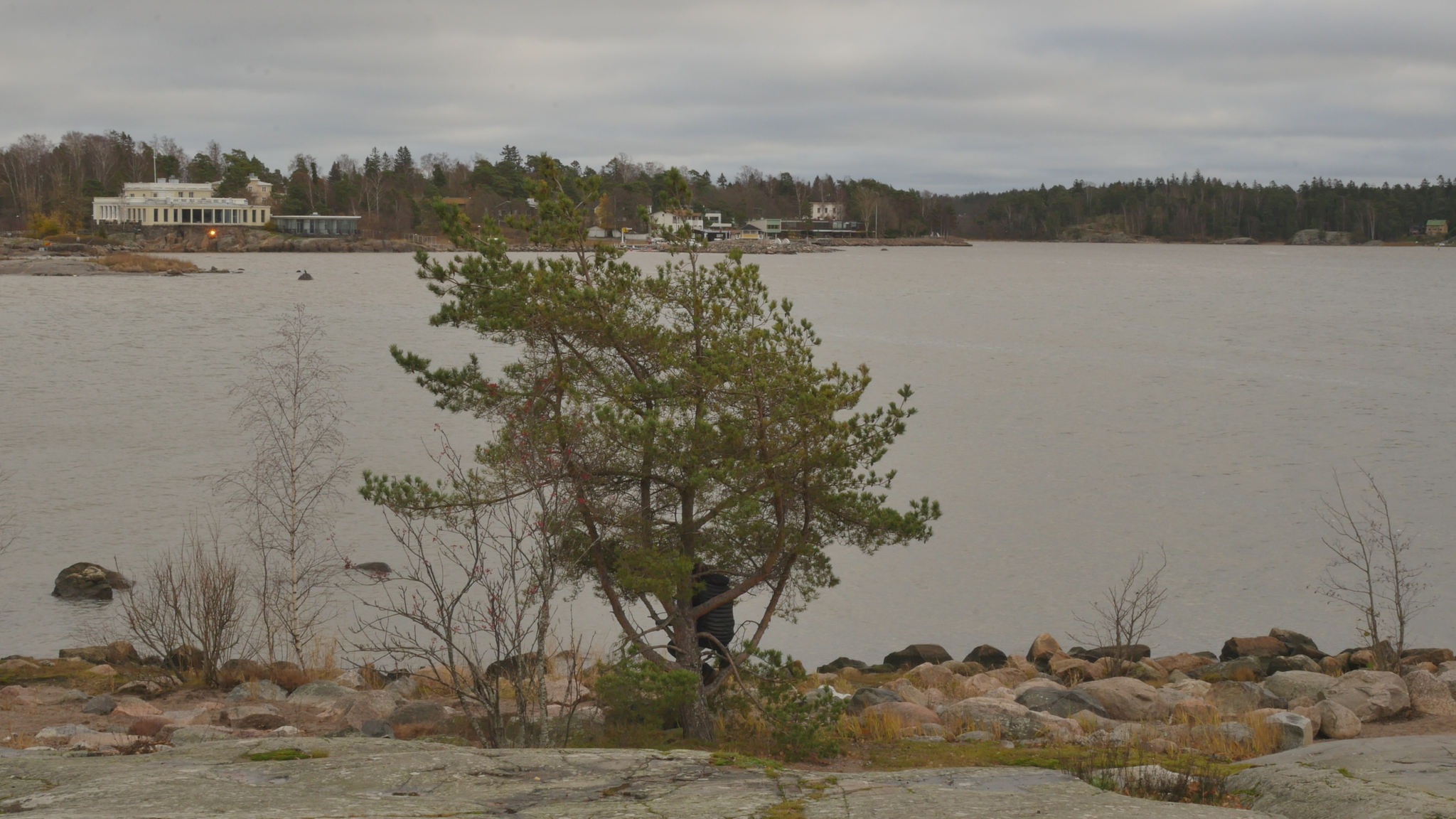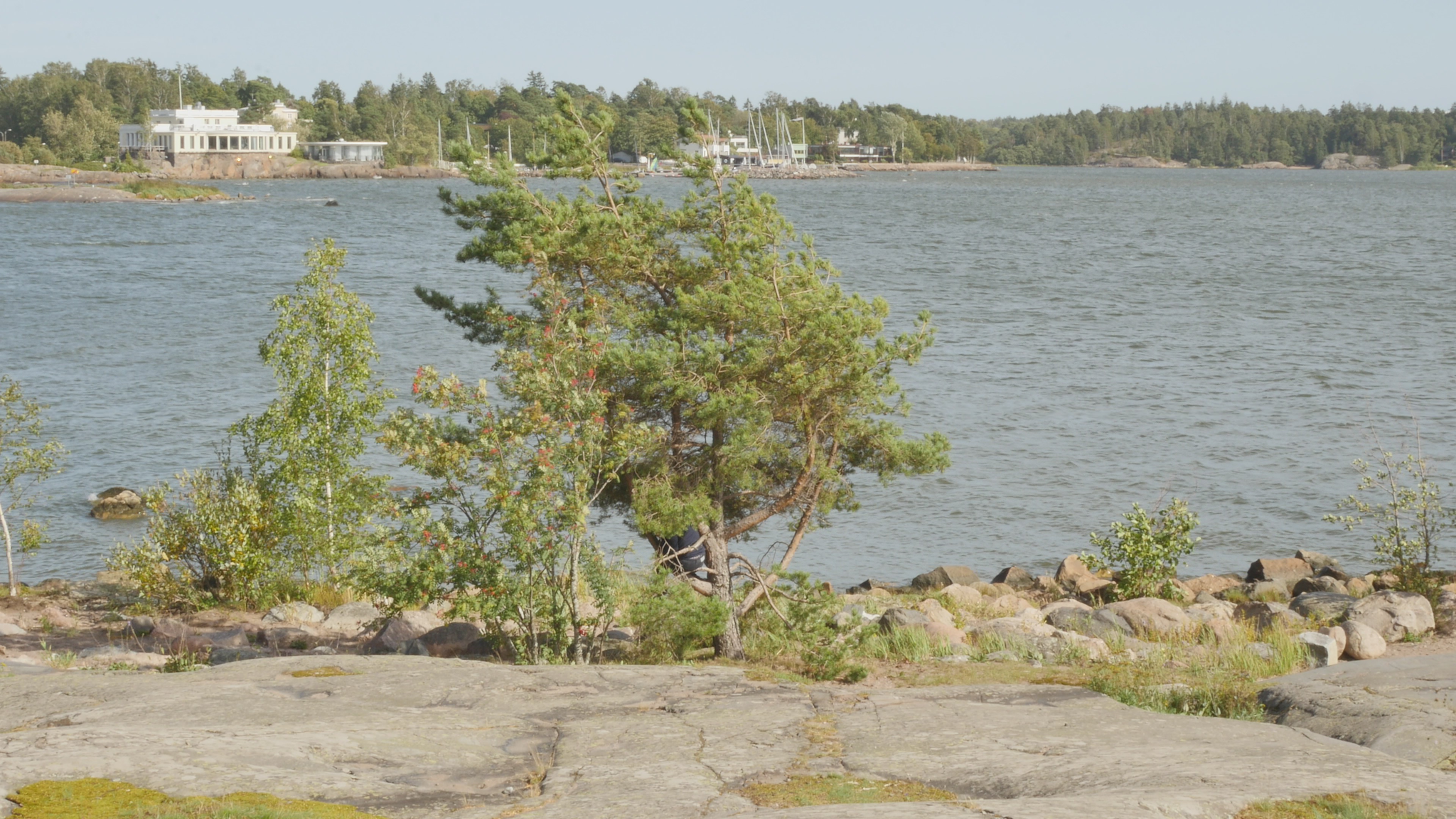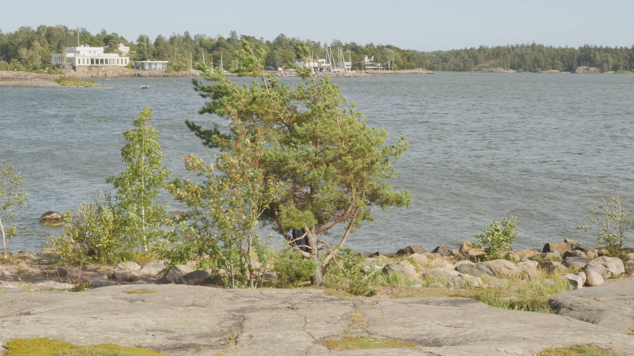 Hyvää keskiviikkoiltapäivää mänty, hyvää keskiviikko iltapäivää. Tuulee, ja tässä on tuulinen paikka vaikka vaikka kuinka yritän istua selkä tuuleen. 13. marraskuuta. Yllättävän lämmintä suhteessa kuitenkin mutta tuulenpuuskat ovat kylmiä. Tänään ajattelin puhua kanssasi ilmakehästä ja ilmapiiristä, suomen kielessähän ne ovat kaksi eri sanaa mutta siis englanniksi atmosphere. Kyllähän suomeksikin voi sanoa atmosfääri tai ruotsiksi atmosfär, ja se tarkoittaa siis sekä tätä ilmakehää joka maapalloa ympäröi, joka on osa biosfääriä tai sitä laajempikin kai. Ja sitten toisaalta ilmapiiri, joka suomen kielessä on suurin piirtein sama kuin tunnelma. Mutta atmosfääristähän puhutaan että jossakin seurueessa on tietynlainen atmosfääri tai ilmapiiri tai... Mutta jotenkin ilmapiiri on niin vahvasti ihmisiin liittyvä asia, että melkein vaikea ajatella edes että tässä olisi ilmapiiri, vaikea ajatella, että huoneessa olisi jonkinlainen ilmapiiri ilman, että siellä olisi ihmisiä. Tunnelma tietysti voi olla, joka tulee materiaaleista ja väreistä ja muodoista. No, ehkä ilmapiirikin. Mutta miksi tätä nyt ajattelin oli koska olin eilen, minulla oli hieno kokemus toimia verkon kautta toisena opponenttina väitöskirjaan, jonka nimi oli englanniksi Estranging Trams: Atmospheres of Trams in Art elikkä Raitiovaunujen vieraannuttaminen tai oudoksi tekeminen ja raitiovaunujen ilmapiiri taiteessa. Miksi minä nyt, mitäs minä raitiovaunuista tiedän, mutta koska kyseessä oli taiteellinen tutkimus vaikka tutkimus tehtiin ikään kuin kulttuurintutkimuksen alalla ja itse asiassa liikkuvuus- siis jopa yhteiskuntatieteiden alalla, se oli monitieteinen. Ja minä olin ikään kuin edustamassa sitä taiteellista asiantuntemusta ja taiteen tekemisellä olikin varsin merkittävä rooli siinä väitöstyössä. Se oli keskeinen metodologia koska väittelijä esimerkiksi piirsi raitiovaunuja, sekä raitiovaunujen sisällä, ihmisiä ja asioita ja näkymiä, mutta myös sitten raitiovaunuja ulkoapäin ja raitiovaunupysäkkejä. Sen lisäksi hän hän teki performansseja ja kaikenlaisia työpajakokeiluja suhteessa raitiovaunureitteihin ja myös raitiovaunuihin. Mutta siis mitä tämä meidän keskusteluihimme liittyy, niin lähinnä sitä kautta, että voisiko ilmapiiri olla ikään kuin asia jonka avulla kommunikoida ei-inhimillisten olentojen kanssa. Tämä väittelijä hän perusti työnsä semmoisen saksalaisen esteetikon, Böhme nimisen esteetikon teorioihin, jotka ovat kyllä vahvasti ihmiskeskeisiä koska Böhme nimenomaan korostaa, että atmosfääri on ikäänkuin puoliksi objektiivinen ja puoliksi subjektiivinen. Siihen voi vaikuttaa, atmosfäärejä voi luoda ja rakentaa erilaisin keinoin, mutta ne ovat aina kokemuksellisia. Ja jotenkin - mutta tietysti jos hyväksyttäisiin, että muutkin elolliset voivat kokea, voivat olla kokemuksellisia subjekteja kuin ihmiset niin silloin tämä minun kyykistelyni sinun oksallasi, se voisi olla sinulle kokemus. Ja samalla tavalla kuin sinä yhdessä tämän tuulen ja tämän kivikkoisen rannan ja aika epämukavan asentoni kanssa tuottaa aivan tietynlaisen ilmapiirin nyt tähän keskustelun. Olisihan se hauskaa jos voisi ajatella ikään kuin ilmapiiriä myös muiden siihen osallistuvien kannalta, ainakin elollisten sellaisten. No, mutta tietysti siinä on suomenkielen ilmiselvä rajoite, että meillä on kaksi eri sanaa, että niitten yhteys, ilmakehän ja ilmapiirin yhteys ei ole niin ilmeinen. Koska se on toki ilmiselvää, että esimerkiksi ilman koostumus jossakin tilassa, vaikka raitiovaunussa tai nyt tässä. niin se vaikuttaa meihin ikään kuin tiedostamattamme, vaikka emme tajua sitä, että tämä olisi joku tietty kokemus, niin jos esimerkiksi happea on vähän tai ilma on ummehtunut niin totta kai se vaikuttaa meidän aivoihimme ja muutenkin. Mutta tässä nyt on happea enemmän kuin tarpeeksi tämän tuulen takia, joka tapauksessa. Mitä muuta minulla olisi sinulle kerrottavaa. Olen huomenna lähdössä Tukholmaan kissojen kanssa taas, melkein kahdeksi viikoksi ja sitten tulen vasta joskus joulun alla uudestaan keskustelemaan kanssasi. Toivotaan että ei tule pahoja myrskyjä. Toivon sitä sekä omasta puolestani, että en joutuisi laivaan joka keinuu pahasti, mutta tietysti sinun kannaltasi, jotta ei tulisi myrskyjä jotka uhkaisivat kaataa sinut tässä rannalla. Mutta toisaalta olet kasvanut sillä tavalla pyöreään muotoon ja levittänyt oksasi eri suuntiin että luulisin, että sinulla on tässä aika hyvä tasapaino. Ei ole, sinulla ei ole niin kuin semmoista korkeaa runkoa, joka voisi sitten katketa, koska siinä on niin kova vääntövoima jos tuuli sitten sitä latvusta taivuttaa. Tästä tuli nyt tämmöinen lyhyt keskustelu mutta hauska että sain taas jutella kanssasi ja kaikkea hyvää nyt tähän marraskuun loppupuoleen. Kiitos taas.
