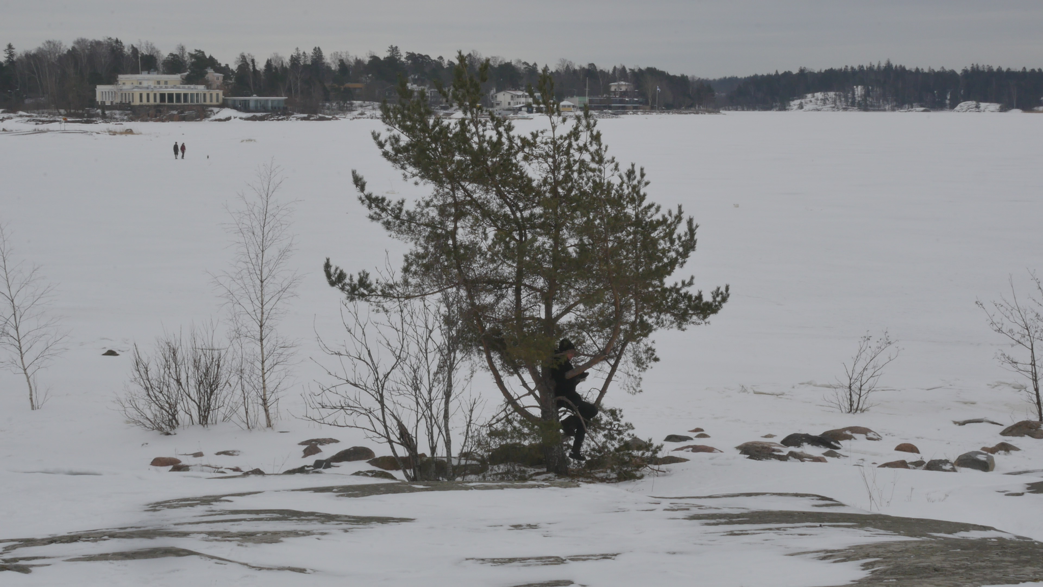 Päivää mänty, hyvää sunnuntai päivää ja hyvää uutta lohikäärmeen vuotta. Eilen oli uusikuu ja myös uusi vuosi kiinalaisen kalenterin mukaan ja varmaan muidenkin aasialaisten, korealaisen ja vietnamilaisen, japanilaisesta en itse asiassa tiedä. Elikkä nyt elämme siis lohikäärmeen vuotta. Minä olen itse vuohi tai lammas mutta, enkä usko että lohikäärmeen vuodella on kovin suurta vaikutusta, mutta eihän sitä koskaan tiedä. Ja ainakin vuoden tunnelman pitäisi olla toinen kuin nyt juuri päättyneen jäniksen vuoden. Hauska nähdä sinut taas. Kun täällä kävin ensimmäistä kertaa oli vielä pahempi tuuli kuin nyt ja lunta oli enemmän niin että kalliosta ei näkynyt juuri mitään. Istun nyt selkä tuuleen, jotta saisin suojattua vähän mikrofonia mutta luulisin että tämä ei ole yhtä paha kuin viimeksi. Hauska nähdä siis taas. Tänään on vaalipäivä, presidentinvaalien loppu-vaalien päivä ja totta kai minäkin olin äänestämässä tässä aamulla mutta toisella puolella kaupunkia. Sinänsä vaalitulos on aika odotettavissa jos näin voi sanoa mutta tota, eihän sitä koskaan tiedä. Eilen olin katsomassa elokuvan Kuolleet lehdet, Aki Kaurismäen paluu elokuvan pariin tai comeback jos nyt näin voi sanoa ja tota, se oli aika outo kokemus. Sinänsä en ole nähnyt niin paljon elokuvia mutta olen nyt antanut itselleni tehtävän että yritän kerran viikossa osallistua jonkinlaiseen kulttuuri-rientoon toisin sanoen nähdä elokuvan tai teatteri- tai tanssiesityksen tai konsertin tai jotakin. Ja viime viikolla se nyt sitten oli se viime hetkellä lauantai-iltana Kuolleet lehdet. En ollut niin hirveän innostunut siitä, se tuntui jotenkin tavallaan no, menneen talven lumilta. Toki siinä oli ajankohtaisia teemoja visuaalisestikin koska oli kuvia Kruunuvuoren siltojen työmaalta Hakaniemestä, hienojakin kuvia. Ja sitten tietysti koko ajan eri kohtauksissa radioista kuului tietoja Ukrainan sodasta. Mutta muuten se oli ikään kuin sellainen menneiden aikojen elokuva ja näyttelijätkin olivat vanhempia kuin tavallisesti, tai avustajat, baarien yleisö. Mutta toki se dialogi tai vuorosanat oli, olivat yhtä hauskoja kuin aina ja jotenkin vieläkin kirjallisempia kuin mitä muistin aiemmista elokuvista. Pääosan esittäjät vaan olivat nuorentuneet. Tietysti ajattelin, muistelin Matti Pellonpäätä ja Kati Outista. Alma Pöysti on kyllä aika erilainen tyyppi mutta hieno näyttelijä hänkin, ja itse asiassa tämä uusi miespääosan esittäjä jonkan nimen olen unohtanut [Jussi Vatanen] muistutti tietyssä mielessä Pellonpäätä. No, ei ollut tarkoitus ruveta kertomaan sinulle elokuva-kokemuksistani, päinvastoin minun piti kertoa kokemuksistani Oslossa, josta palasin siis eilen, varhain eilen aamulla. Ja siellä Oslon yläpuolella rinteessä olevassa konferenssikeskuksessa nimeltään Soria Moria, joka on ilmeisesti jonkinlainen satulinna tai Shangri-La tai jotain vastaavaa, niin siellä vietimme kolme päivää norjan tohtoriopiskelijoiden kanssa ja pohdimme dokumentaatiota ja jakamista, documentation and sharing, ja myöskin metodeja taiteellisen tutkimuksen kohdalla. Ja Norjassa ohjelma on aika jännä koska se on niin vahvasti painottunut nimenomaan taiteellisiin projekteihin ja ikäänkuin tutkimusnäkökulma on toissijainen, ainakin tämmönen perinteinen akateeminen tutkimusnäkökulma. Mutta siellä oli tietysti paljon kiinnostavia alustuksia ja keskusteluja. Ja erityisesti jäi mieleeni erään koreografin maininta siitä, miten - siis hän työskentelee eri tavalla vammaisten tai liikunta- tai muu aistirajoitteisten taiteilijoiden kanssa ja pohti paljon saavutettavuusnäkökulmia. Mutta hän puhui myös ikään kuin uusien, siis se ei ollut hänen pääasiansa mutta se vaan kiinnosti minua, uusien muistojen luomisesta. Että kysymys on ikään kuin esimerkiksi osittain traumaattisten muistojen ikään kuin uudelleen luomisesta siis uusina, parempina muistoina. Mutta tietysti eräänlainen uusien muistojen luominen on taiteen tehtävä yleisemminkin. Ja minä jotenkin innostuin siitä sitten kun tajusin sen, koska teetin heillä siellä myös lyhyen tehtävän. Istuimme kaiket päivät sisällä mutta sitten yksi tehtävä oli mennä ulos ja etsiä puu ja haastatella puuta. Ja sitten he palasivat takaisin ja kertovat mitä olivat kokeneet ja niin poispäin. Ja tavallaan tajusin, että tämä ikään kuin haaste haastatella puuta tarkoitti samalla myös niinkun uuden muiston luomista. Nyt he kaikki ovat yrittäneet haastatella puuta, varmaan luultavasti ensimmäistä kertaa elämässään. Ja samalla tavalla niinkun minä tässä nyt istun sinun kanssasi, niin vaikka tämä ei ole samalla tavalla uusien muistojen luomista muuta kuin minulle, ja oikeastaan minulle tämä ei ole enää uusi muisto koska olen istunut aika monen männyn kanssa juttelemassa jo, mutta se on kuitenkin eri asia kuin ikään kuin matkamuistojen taltioiminen, niin kuin aikaisemmin ajattelin. Kun työskentelin, kuvasin toistuvasti samaa maisema Harakan saarella niin ajattelin että tein sillä tavalla matkamuistoja tai muistoja siitä, miltä maisema näytti vuosituhannen alussa sillä alueella. Ja toki tästäkin tulee eräänlainen matkamuisto koska kuvaan ja äänitän tämän keskustelumme, mutta silti jotenkin ajatus siitä että kysymys on uusien muistojen, tai uusien mahdollisten muistojen luomisesta tuntuu paljon jännittävämmältä. Mutta tietysti se tapahtuisi paremmin nimenomaan tällaisten yhteisten harjoitusten tai työpajojen avulla eikä niinkään minun tai meidän tämmöisen kahdenkeskisen olemisen kautta. No, oli miten oli, mutta tämmöisiä kuulumisia siis sieltä Oslosta. Mitä muuta tähän nyt osaisin sanoa muuta kuin että kevättä kohti mennään. Nyt alkaa jo olla valoisampaa, kello on, niin, mitähän se on, se kohta lähenee kolmea ja vielä on aika valoisaa. Elikkä kun tapaamme seuraavan kerran toivon mukaan osa lumestakin on jo sul