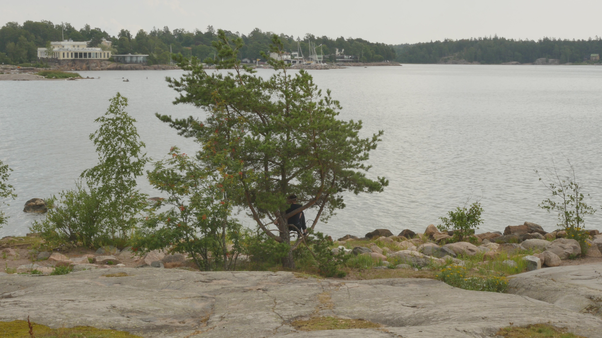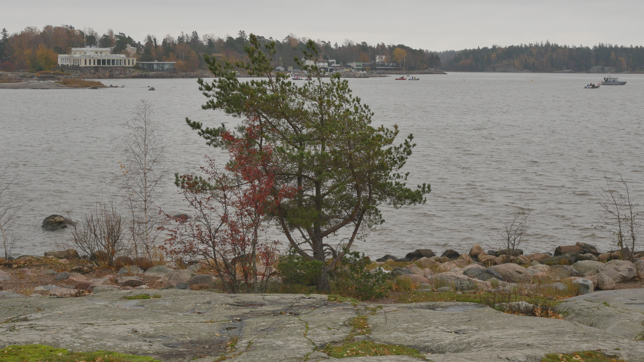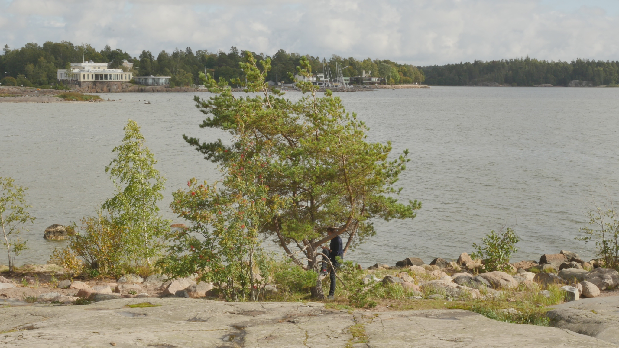 Päivää mänty, hyvää sunnuntaipäivää. Hauska nähdä taas. Yllättävän tuulista taas valitettavasti. Tulin tänne uutta reittiä Kalasatamasta enkä Kulosaaresta ja kävelin koko Mustikkamaan rannan ja ajattelin tyytyväisenä, että voi kun nyt onkin tyyntä, tavanomaisesti täällä aina tuulee, mutta tajusin sitten, että olin tuulen suojassa ja tähän kyllä tuuli osu. Mutta yritän kääntää itseni poispäin. Nyt on syksy, lokakuun loppu, ei kovin kylmää mutta pimenee ja puut putoavat, puut eivät putoa, vaan lehdet putoavat puista. Osa on vielä keltaisina mutta tässä koivu, joka on sinua lähinnä, se on jo melkein paljas. Ja pieni pihlaja tässä aivan vieressäsi, sillä on kyllä lehdet tallella mutta ne ovat aivan tumman punaiset, tai tumman ruskean punaiset. Kun mietin mistä keskustelisin sinun kanssasi minulla oli paljon vaihtoehtoja koska viime viikko oli tapahtumarikas. En edes muista että kerroinko sinulle viimeksi kun tapasimme että, luulen kertoneeni, että minulla oli työ esillä Muun mediataide torilla, työ jonka työn olin tehnyt Kaivopuistossa kasvavan männyn kanssa ja johon olin sitten lisännyt tekoälyn avulla tekstin alkuun. Teemana, näyttelyn teemana oli Artificial Intelligence, joten se oli minun panokseni siihen keskusteluun. Mutta nyt ensi viikolla on avajaiset Hippolyte studiossa, siis Hippolyte gallerian pienessä, usein videoteoksia esittävässä sivuhuoneessa Hippolyte studiossa, ja siellä on esillä seitsemän tai oikeastaan kahdeksan videon sarja Tala om det för tallen (Tell it to the pine), joka varmaan suomeksi olisi jotain niinkuin että Kerro se männylle. Ja se on itseasiassa sarja keskusteluja Örön länsirannalla kasvavan männyn kanssa ja ensimmäiset keskustelut, jotka ikään kuin äänitin puheena sen sijaan että olisin kirjoittanut kirjeitä tai jotain vastaavaa. Mutta silloin en puhunut puhelimeeni vaan minulla oli oikea mikrofoni ja suhtauduin siihen äänitystilanteeseen jotenkin vakavammin. Tarkoitan sillä sitä, että yritin ikään kuin muotoilla lauseeni kirjallisemmin tai huolellisemmin, kun nyt usein sinun kanssasi ja viime aikoina muidenkin mäntyjen kanssa puhellessani minä vaan juttelen niitä näitä. No joka tapauksessa se on siis torstaina. Mutta viime viikolla oli monenlaista, muun muassa osallistuin feministisen kirjoittamisen työpajaan, joka oli erittäin kiinnostava. Ja sitten olin mukana metsätieteen päivillä, metsätieteiden päivillä, iltapäiväsessiossa, jossa minulla oli pieni videopätkä mukana koska teemana oli siellä dialogi, joten esitin sitten viimeisen pätkän keskusteluistani Kaivopuiston männyn kanssa,jotka olivat esillä Harakan lennättimessä kesällä. Ja koska se sopi niin hyvin ajatukseen dialogista mutta myös koska siinä nimenomaan puhuttiin, se viimeinen osa niin siinä siteerasin Aldo Leopoldin ajatuksia maan etiikasta, land ethics. No sen lisäksi osallistuin useampaankin tapahtumaan Taideyliopistosa, Kuvan tutkimusklubiin, jossa oli jännä elokuva esittely, ja sitten Pilvi Porkolan ja Aino-Maija Koistisen järjestämään tapaamiseen pedagogisesta ajattelusta ja taiteellisesta tutkimuksesta, ja sitten vielä Tutkimusinstituutin järjestämään tapaamiseen yritysyhteistyöstä perjantai-iltana ja vaikka mitä. Ja sitten oli Harakassa sesongin päättäjäisjuhla, syysjuhla jossa pääjärjestäjänä oli Luontotalo ja Helsingin ympäristökeskus vaikka kyllä Harakan taiteilijatkin osallistuivat osittain. Ja en ollut mukana järjestämässä mutta se oli hieno juhla ja ikäänkuin viimeinen ylimääräinen käynti saaressa vuoroveneellä koska se ei nyt enää kulje. Mutta se mistä nyt, mikä nyt täyttää mieleni on teksti jonka deadline tai kalmakynnys, miten se nyt menikään, on huomenna. Elikkä kirjaan, jota on toimittamassa Screenworks online lehden toimittajat ja itse asiassa voisin kirjoittaa sinne mitä tahansa, mutta olen luvannut kirjoittaa video esseestä ja käyttää kolmea, tai sitä en ole luvannut, mutta käyttää siis mäntyjen kanssa tekemiäni video esseitä esimerkkinä. Ja olen valinnut kolme esimerkkiä mutta kirjoittaminen on hankalaa ja tunnen niin huonosti ikäänkuin videotaidetta ja elokuvaa koskevaa keskustelua, koska se ei ole niin kuin tavallaan, minun koulutukseni ei ole siltä alalta. Mutta joka tapauksessa ne kolme nähtyä, joiden keskusteluista olen tehnyt video esseet vaikka niitä ei ole suoraan julkaistu video esseinä vaan osina jotain muita artikkeleita. Yksi niistä on "Hanging in a Pine - with text", jonka tein Amsterdamin konferenssia varten. Ja se perustuu videoon, jonka tein männyn kanssa Tukholmassa Lill-Jansskogenissa, mänty jonka oksasta roikuin vuoden mittaan. Ja toinen on ensimmäisen nimenomaan video esseeksi kirjoitettu työ, jonka kirjoitin Örön männylle jo silloin marraskuussa 2020. Ja sitten viimeisin on, joka sekin on aika vanha, on kai vuonna -22 vai olisiko ollut -21 Kaivopuistossa pienelle männylle kirjoitetut kolme kirjettä, jotka itse asiassa, niitä ei koskaan tehty videoteoksiksi koska kirjoitin ne osana tämmöistä online esitystä, elikkä itse asiassa vaan se kirjoittamisen akti ja se huomion kohdistaminen siihen pieneen mäntyyn kalliolla oli se esitys. Mutta nyt tässä esseessä olen sitten käyttänyt niitä kirjeitä ja puhunut ne niiden videoiden päälle ja lisännyt sitten reflektoivan osuuden. No, mitä minä tätä sinulle selitän, mutta tässä on joku paradoksi että ikään kuin nämä keskustelut mäntyjen kanssa ne niinkun kiertävät kehää, elikkä tästäkin työstä minä varmasti kirjoitan jonnekin jotakin ja sitten siitä ehkä vielä jotakin muuta ja niin edespäin. Mutta kohta, se täytyy sanoa tässä sinulle - nyt taas tuulee - että tämähän on nyt, loppu lähestyy, koska virallisesti tämä hankkeeni Miettii mäntyjen kanssa päättyy vuodenvaihteeseen. Elikkä meillä on enää kaksi tapaamista jäljellä, marraskuussa ja joulukuussa, jos nyt pid
