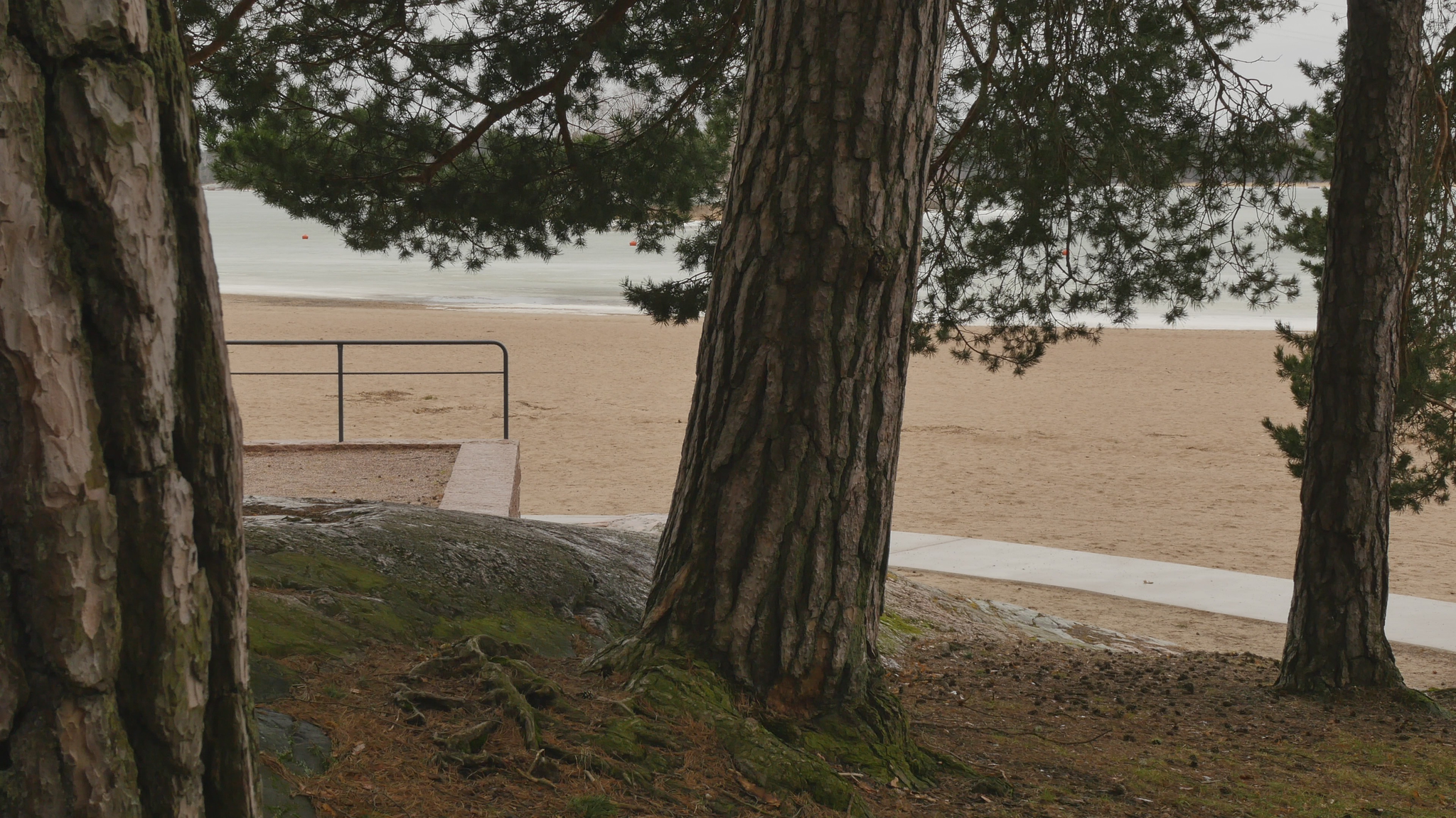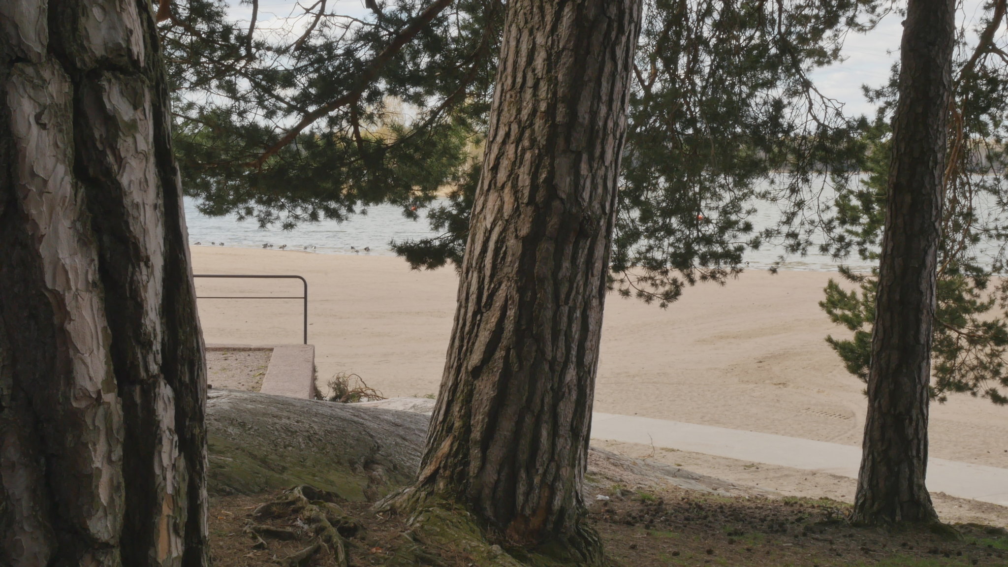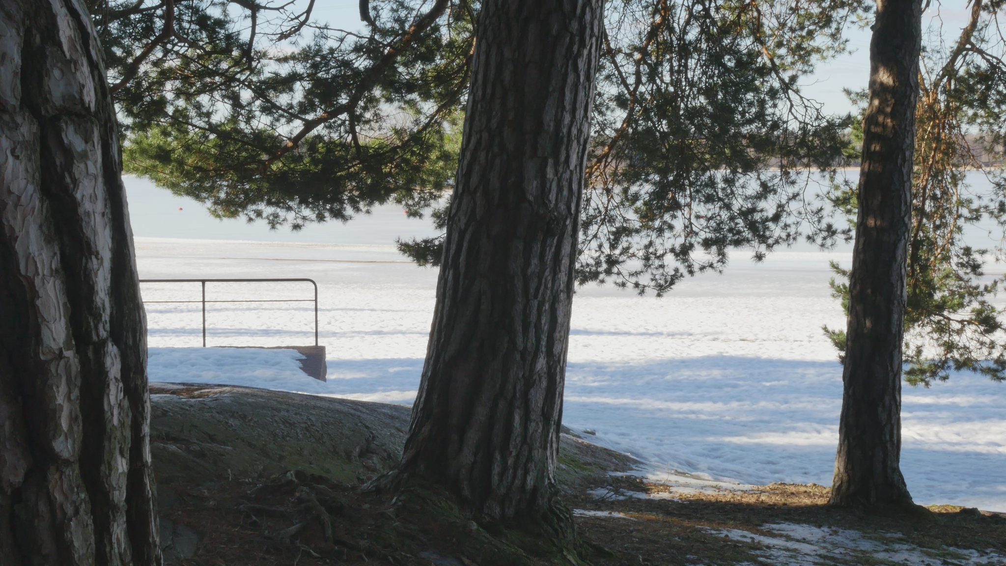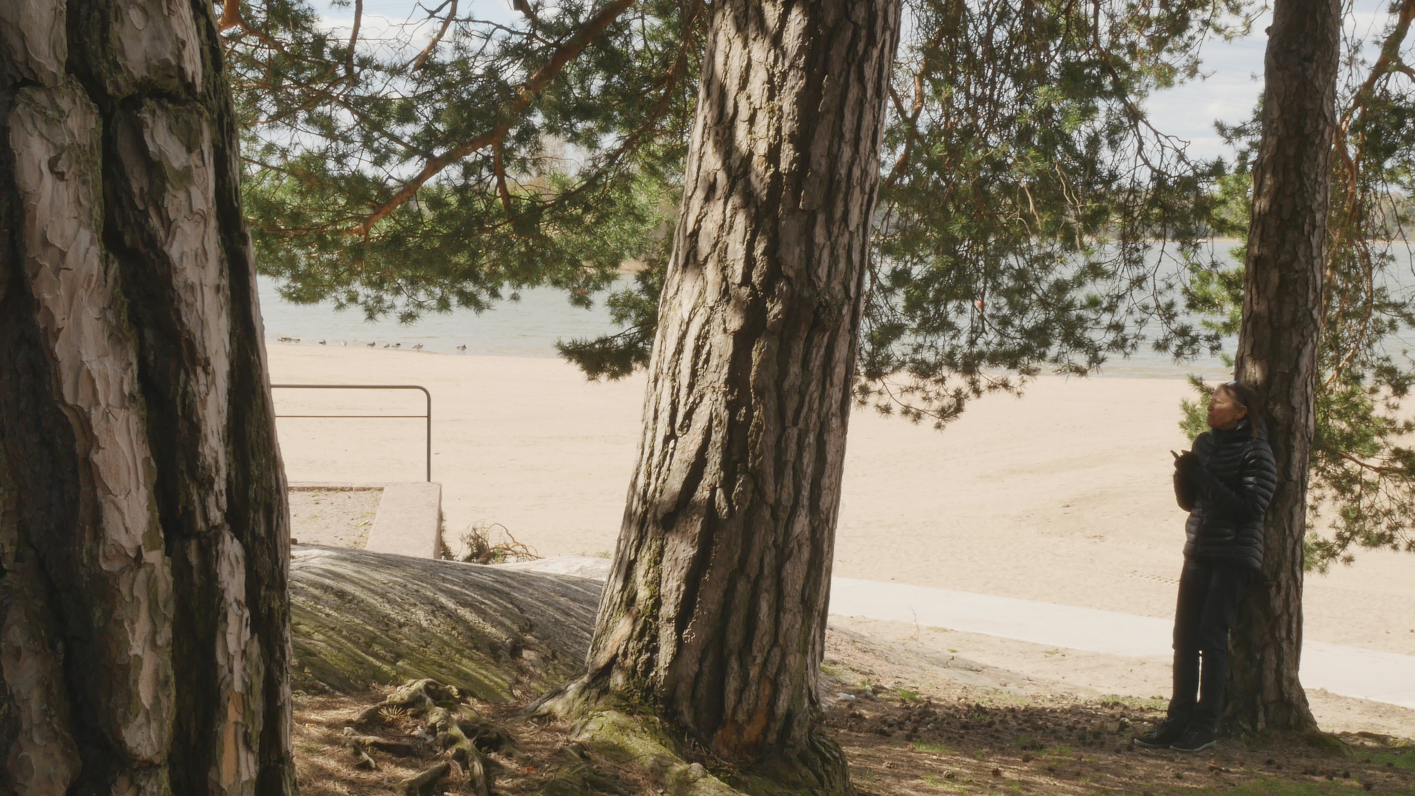 Hello Pine, hello. I was here once before but at the time I addressed you in Finnish. Now I try to speak in English, unfortunately, because I don't know 'Pinish' or pine language or what would be the best way to address you. Last time I was here the sun was shining; it was cold but now it's damp and grey and the snow is melting and the spring is coming, which is lovely. And you probably like that, too. Why I come to you this bluntly - I hope you don't mind my leaning on your trunk and trying to have a conversation with you. The reason I will try to do that is to think about this idea of citizenship. Well, I began by thinking of city dwelling actually, because in Finnish the word 'kaupunkilainen' means city dweller, citizen in that sense, whereas 'kansalainen' the 'nation dweller' would be then the citizen in the common understanding of the word, I suppose. And that may be a little bit far-fetched, but this idea of pine trees as citizens in terms of city dwellers is somehow very obvious here in Hietaniemi, where there is plenty of you, by the shore and near the beach. There is also a cemetery nearby and the beach is very popular in summertime, but you also make the place very beautiful because you create this place, this landscape right here. And of course, the idea of citizen in the terms of dweller in a city is relevant in terms of trees especially because the choice of place to live, rather than the official accreditation to a nation or a state or something like that, is sometimes very important in practice. So, we humans tend to think that we can freely move but for many people moving around it's not so easy. And even the people who would be technically and legally allowed to move or could afford that, they tend to stay in one place and maybe go away for holiday or something but they remain relatively rooted. Or at least they used to, especially in earlier times, where people were farmers but also the citizens of specific cities, which were like small mini-states in themselves. And of course you're very much rooted right here and have difficulty in moving far away from the place where you were born or where you settled when you started to grow. But of course your offspring can fly with birds or with the wind quite far. And over the generations you keep moving, of course. I also thought about this idea of city as sound, because here now today, maybe partly because of the wind or because there is not much foliage except for your needles to protect from the sound. The sound from the nearby highway or motorway, the western highway or 'Länsiväylä' is quite strong and I wonder if you're used to that sound, because at least we humans get very easily used to quite a lot of noise and then we're not aware that it stresses us, but we're not conscious of it, but our our body registers it anyway. And since plants are able to hear you probably also register the noise from the traffic. You probably also can hear me at the moment, but it might be that my voice is on a frequency that is uninteresting for you, so maybe you can't really distinguish my voice; you just, it just merges with the background noise. It's actually a bit lazy of me not to try to find out what kind of sounds pine trees best can hear, but it might be that that is not, there is no research on that yet. Because the understanding that plants can hear sounds and even emit some sort of sounds, is not that old as far as I understand. Well, old, maybe some indigenous traditions would have that knowledge but in like western science the idea that plants can hear sound, distinguish sound, is not very common or has not been accepted for a long time. Alright, maybe I shouldn't bother you more, but I thought I hope it's okay for you if I come to visit you a few times and, yes. I wish you a nice day and enjoy the fresh air with the humidity and moisture and of course all the light that now increases day by day. So, take care.