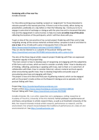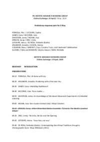 Material for the Meetings of the Artistic Research Working Group of PSi (Performance Studies international) 19 April and 3 May 2024