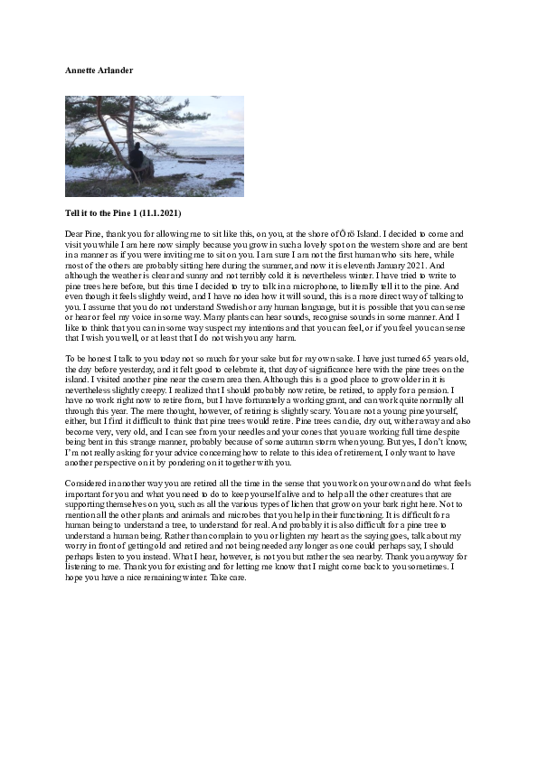 This exposition documents my explorations of pondering with pine trees. Tämä ekspositio dokumentoi yritykseni miettiä mäntyjen kanssa. Den här ekspositionen dokumenterar mina försök att fundera med furor.