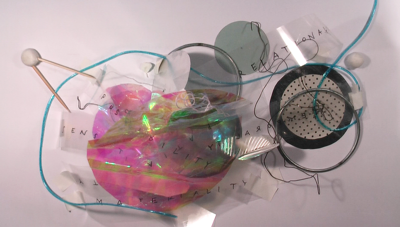 ‘Method lab’ refers both to the facilitating environment (the milieu) and the activities taking place; it describes a ‘thinking space’ which “is both a processual movement of thought and a privileged site at which this movement is amplified and inflected by novel configurations of ideas, things and bodies”.18 Dialogic exchange is a fundamental part of the method lab, for exploring points of connectivity (a shared lexicon and philosophy) in relation to the research project questions, and for sharing the process and technics (technologies, techniques, tactics) of enquiry rather than for the production of resolved works or definitive outcomes. Within the Method Lab we — the key researchers — engage in collaborative artistic enquiry, simultaneously exposing the ‘working’ within our respective ways of working — attending to and making visible the decision-making processes, the unfolding of labour, the durational ‘taking place’ of ‘thinking-making’ within practice as it happens (live).