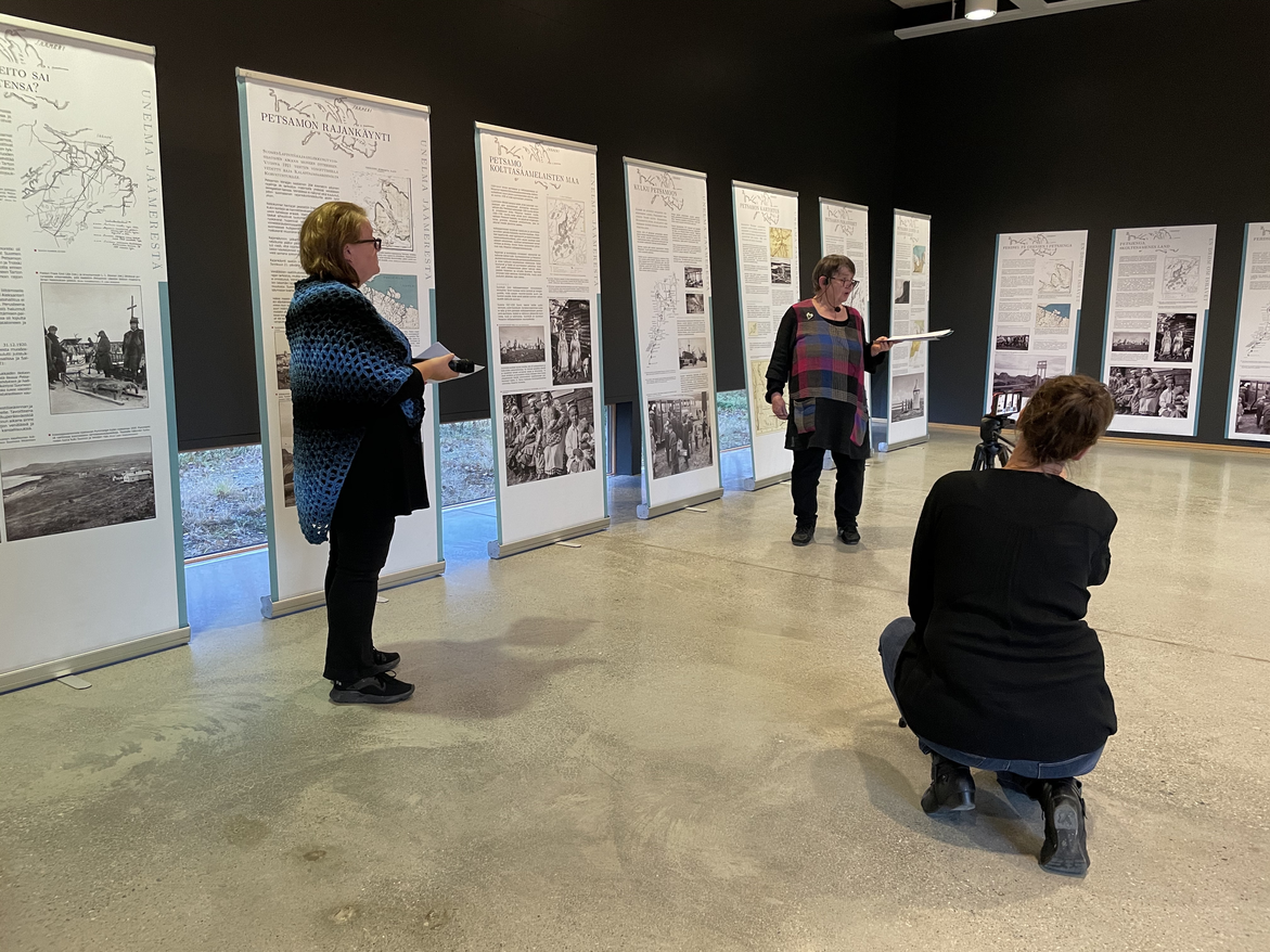 In Neiden Säi’mm group members set up the ‘Pechenga in Maps’ exhibition at Ä’vv Skolt Saami Museum. The exhibition tells about the history of the Pechanga area from multiple perspectives through maps, photographs and text. Ä’vv museum had translated the Finnish exhibition material into Norwegian and both language versions were displayed. The ‘Pechanga in Maps’ exhibition opening included a presentation by Irja Jefremoff which was interpreted into Norwegian. The presentation provided an overview of the history of Pechenga and was live streamed. Afterwards Jefremoff showed images from her archives.