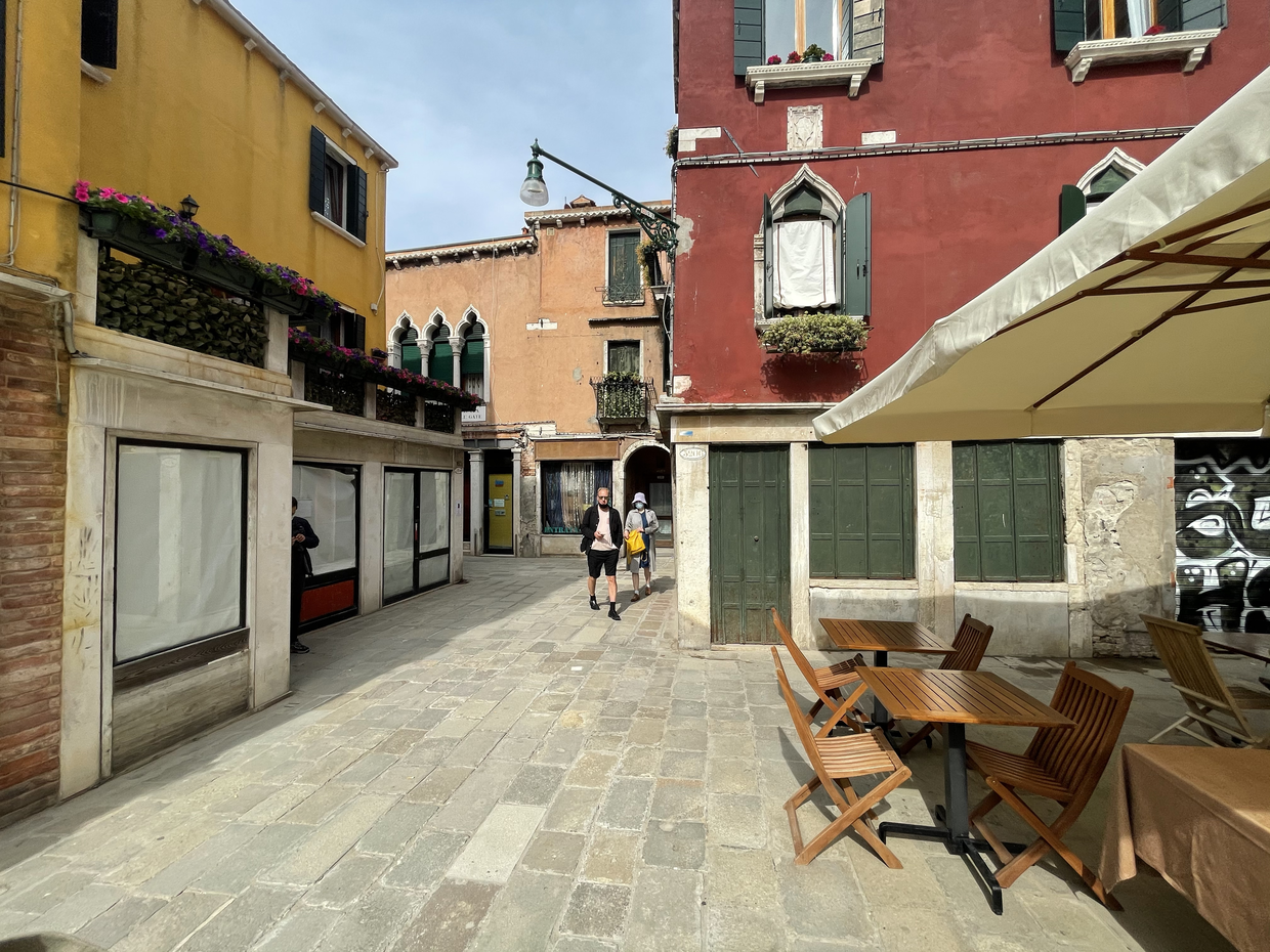 In Salergadade le Gate, shops and small businesses are going through a difficult time, although they have never been very successful. Dusty showcases covered with heavy, rusty shutters have been closed for many years. Castello has always been an area of lepers, workers, Franciscan monks and the Order of Malta. A tiny engraving on the wall depicts the Virgin Mary standing on a projectile? Marco Scourati, a long-time scout of Lithuanian pavilions and an activist in local communities, explains: “La bomba were made in these houses, and it happened, from time to time, some quertiers would explode unexpectedly”. Nevertheless, a dubious reputation or patronage has protected the area from various misfortunes. The day of my visit, the third Saturday in July, celebrates one of the biggest holidays of the year, Radentore, to mark the victory against the plague that killed thousands of Venetians and the great painter Ticiano, but according to legend, not a single one was registered in Castello. "Perhaps this miraculous force is protecting our crossroads from zombie tourists and the toxic Chinese capital, one after another sucking life from the surrounding cafe restaurants," Marco smiles bitterly, shaking hands with Mario, the owner of Bar al Canton. Obviously, the antidote here is another - in Salizada la gate there is an unwritten association based on Italian communal ideology, the tradition of coexistence and solidarity is passed down from generation to generation.