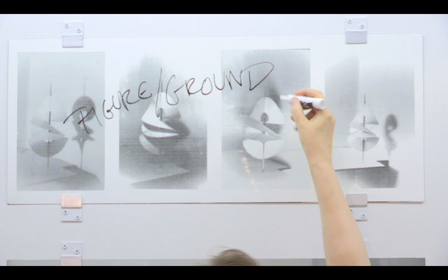 Als ich später an der Düsseldofer Akademie studierte, verblassten diese Stränge dort aber allmählich, sodass mein intuitives Aufgreifen diagrammatischen Denkens und Formens weder erkannt noch unterstützt werden konnte, und auch die Beziehung zur Musik einstweilig zurückstand, zugunsten eines Interesses an der Proximität von Lesen und Bilden. Tatsächlich waren unter meinen ersten Studentenarbeiten diagrammatische Texterfassungen in drei Dimensionen, gefolgt von ausgiebigen Bildanalysen, die Aufmerksamkeitshierarchien aufdröselten und dabei suchten, Vordergrund und Hintergrund, oder auch Objekt und Umfeld, hierarchisch gleichzusetzen. Zum Ende meiner Studienzeit konstruierte ich gewichtige, klappbare, hölzerne Topologien, "Faltungen um eine offene Mitte", deren Variabilität auch fotografisch dargestellt wurde. In unserem Gespräch in Wien, (VBKÖ) 2012, beschrieb Nikolaus Gansterer eine sehr ähnliche frühe Entwicklung mit dem Satz: "Viele Figuren ergeben einen Grund."