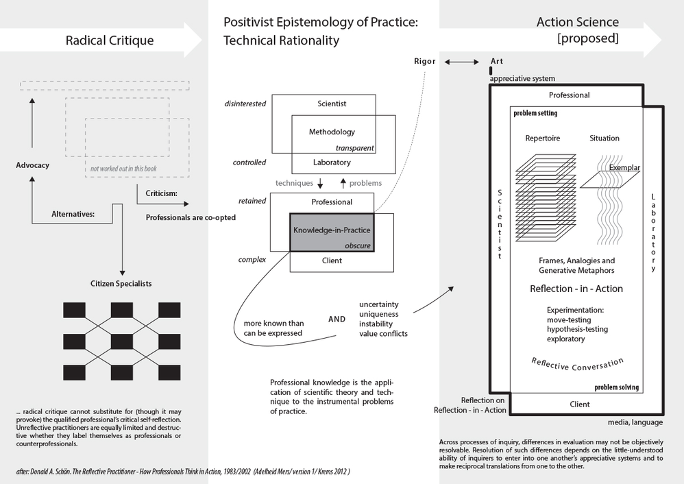 Ich sprach mit Kolleg_Innen, die künstlerisch, aber auch im Umkreis der Künste wissenschaftlich und organisatorisch tätig sind. A.I.R. Krems/Kunsthalle Krems, IKM/UMW und VBKÖ waren meine primären Netzwerke. Zur selben Zeit las ich Texte von Donald Schön, der 1983 Arbeitweisen in den Professionen denen der Akademiker gegenüberstellte. Er beschreibt professionelles Wissen als exemplarisch und implizit, selten verbal, sondern in Aktion oder am Beispiel artikuliert, und damit dem akademischen Feld oft unsichtbar. Diese Unsichtbarkeit hat historisch zu einer minderen Einstufung beigetragen. In offensichtlicher Parallele wird in den Künsten das Objekt wertgeschätzt und analysiert, nicht aber die Schaffensmethode. Der Unwillen künstlerische Methoden zu verstehen hat sich das Bollwark der Inspiration geschaffen. Wie John Dewey in "The Quest for Certainty" und "Logic: The Theory of Inquiry" herausgearbeitet hat, ist der Unwillen, verkörpertes, pragmatisches Wissen zuzulassen ein Politikum. Feministische Epistemologien führen dieses Argument weiter. In diesem Zusammenhang ist meine Frage: "Wie Arbeiten Sie?" zugleich epistemologisch und politisch.