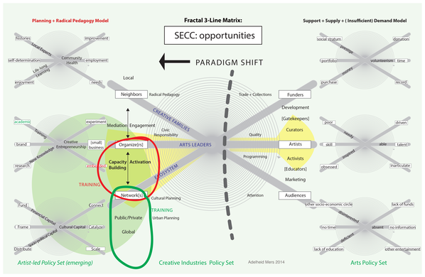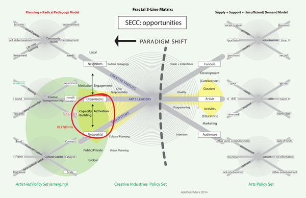 Also included here is a commission from the 3Arts Foundation in Chicago to gauge artists's perceptions of granting frameworks. It was also presented at the 2013 Grantmakers in the Arts Conference. A custom print of the diagram on a whiteboard is now part of the 3Arts collection.