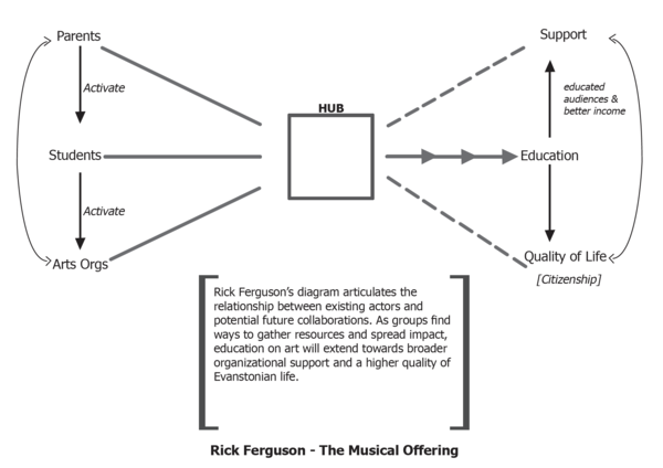 In 2013 and 2014, I was commissioned to conduct 3 Arts Ecology projects, to draw snapshots of cultural activities and perceptions in specific areas, by talking with local stakeholders and cultural producers. These projects were carried out with students of the Arts Administration and Policy Program at SAIC, a department I currently chair. I believe that the recently conducted Chicago Cultural Plan opened a door, locally, for organizations to consider more formal inclusion of art inflected perspectives in community and urban planning processes. I also believe that as an artist with a cultural policy skill set, I ask, observe, listen and hear differently from typically sociology-inflected researchers. The projects are located in or near Chicago: in Evanston, and in Chicago south and west side neighborhoods. The project in Evanston (2013) culminated in an exhibition. The Chicago based projects (2013/14) culminated in feedback sessions with funders and stakeholders, using posters and recommendations we drafted.