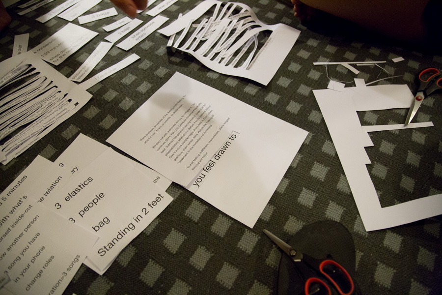 How it works: The event generates knots big enough to weave in multiple emerging movements - in the act of becoming words, text, sound, and dance, and for material objects to transmute into choreographed sculptures, meals in the making, or into places to rest and spaces to inhabit.