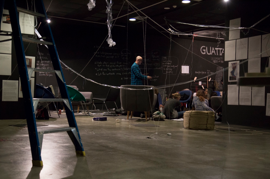 As a network of artists and academics, writers and makers, from a wide diversity of fields, we are working together at the crossroads of philosophy, art, and activism.The SenseLab's event-based projects are collectively self-organizing. Our aim is to experiment with creative techniques for thought in the act. The SenseLab's product is its process, which is meant to be gifted,most recently through a series of activations calledKnots of Thought and Movements of Thought that explore emergent collectivity at the threshold of becoming.