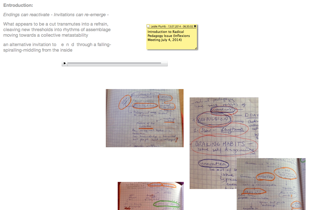 through invitations that create rhythms to enter, to begin in the middle, rhythms to think with and through (rhythms to move with and through (rhythms that are the act (i[n]vation, act act-ing act architecting actitechting techniques --- ?techniques for tending, for (whole)holding?