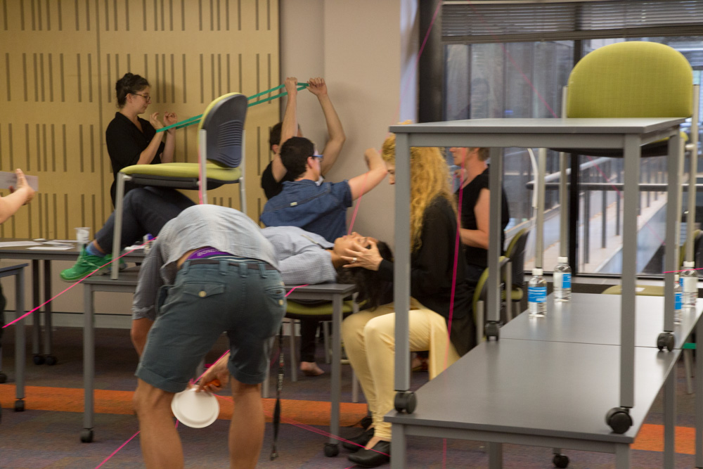 As a network of artists and academics, writers and makers, from a wide diversity of fields, we are working together at the crossroads of philosophy, art, and activism.The SenseLab's event-based projects are collectively self-organizing. Our aim is to experiment with creative techniques for thought in the act. The SenseLab's product is its process, which is meant to be gifted,most recently through a series of activations calledKnots of Thought and Movements of Thought that explore emergent collectivity at the threshold of becoming.
