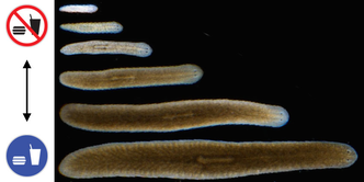 Ein ewiges Leben und die Fähigkeit sich ganze Körperteile nachwachsen zu lassen - was für uns Menschen wie ein Traum anmutet, ist für viele Plattwürmer wie Schmidtea mediterranea eine Kleinigkeit. Selbst aus einem winzigen Wurmschnipsel entwickelt sich in kurzer Zeit ein vollständiger, neuer Wurm, nur dass er nun natürlich kleiner ist. Manche Würmer machen sich dies sogar für die Fortpflanzung zu Nutze: indem sie sich selbst in Stücke reißen, vermehren und verjüngen sie sich. Zudem scheinen die Würmer bei schlechter Ernährung nicht nur kleiner, sondern auch jünger zu werden. Bei Nahrungsmangel können sie um mehr als das 40fache schrumpfen und nehmen dabei schrittweise wieder die Eigenschaften des jungen Individuums an.