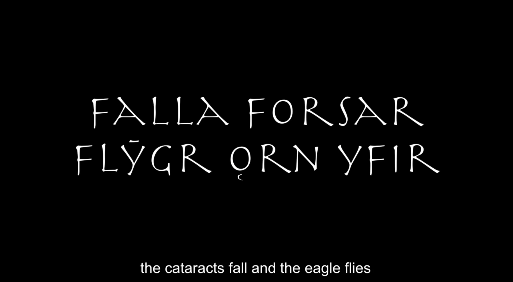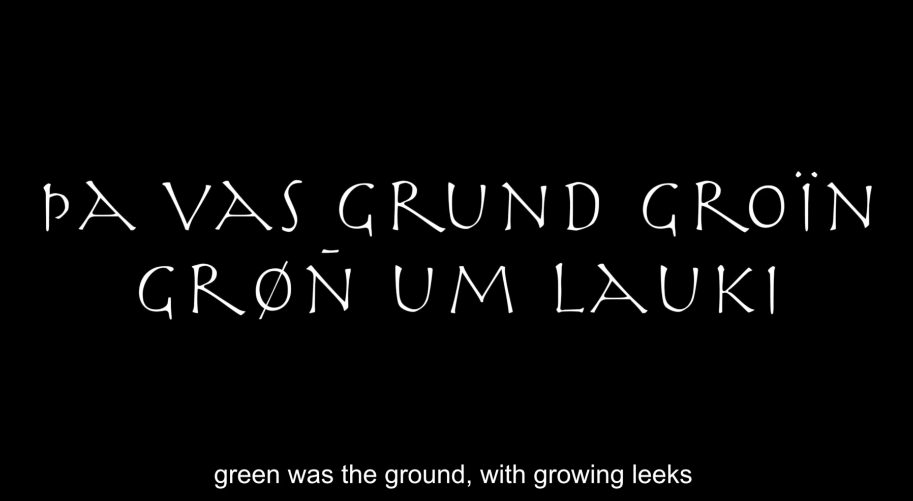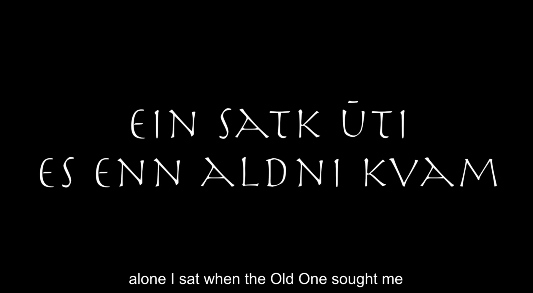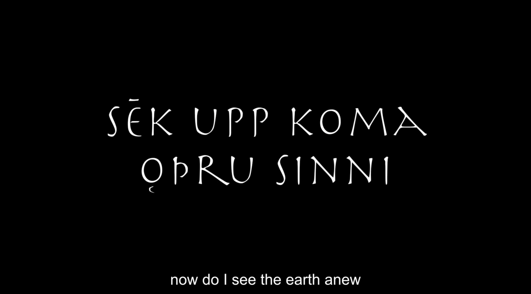 Sāk vitt ok vītt of verǫld hverja title originates in Völuspá, the first and most famous poem of the Poetic Edda written in Old Norse and narrating the story of the creation of the world and its coming end. Verses from Völuspá are utilised throughout the movie and the multimedia performances, typically preambling the audiovisual content to follow so that loose micro-narratives are shaped. Performances would typically pivot on just a few such micro-narratives, while the film features nine of them —these are all given below. With just a couple of exceptions, the verses used describe, or somehow refer to, other-than-human things and relations thereof. So that to some extend (and very often aided by appropriate audiovisual material) they function ontographically, and possibly also metaphorically2; that is, acknowledging the presence of objects in a place and underscoring the tensions forged between one another. For instance, “the sun from the South warmed the stones of earth”, “green was the ground, with growing leeks”, or “the cataracts fall and the eagle flies” (followed by footage pinpointing the specifics of such couplings) arguably operate in such a fashion. This is just one of their possible functions, however. Given the exact wording, the fact they are given in Old Norse (there are subtitles in the film, but typically not during performances), and their historical significance to the local culture, they can be said to operate at no less than three levels simultaneously or alternately (all three veins pinpoint particular material and socio-cultural qualities and are further explored through other kinds of prose, too):