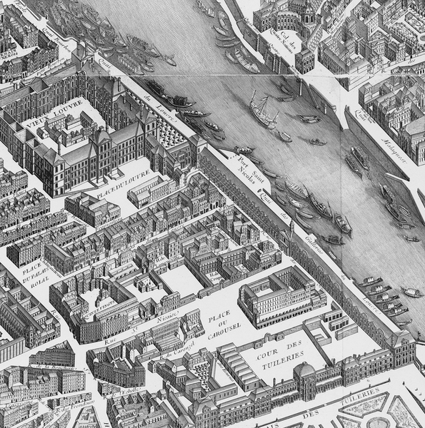 Kuva 1. Kartta Pariisin Tuileries’n puistosta ja Seine-joesta vuodelta 1739 (Turgot Pariisin kartta).