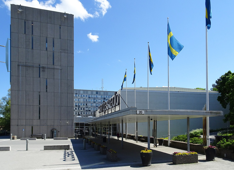 Gärdet, an open field which was once used for military exercises, and then taken up as the gathering point of the workers’ movement marches on the First of May. Gärdet is flanked on one side by the central Television and Radio houses for Stockholm and for Sweden. Berwaldhallen is the radio's concert house, and is still in operation today, with its own dedicated ensembles, and its music hall interpolated into the earth. The radio was a special force in Swedish society in the days when there were only one television station and two radio channels. The architecture of these two broadcast headquarters, built in the 1960s, possesses all the most monolithic style of the folkhemmet era.x