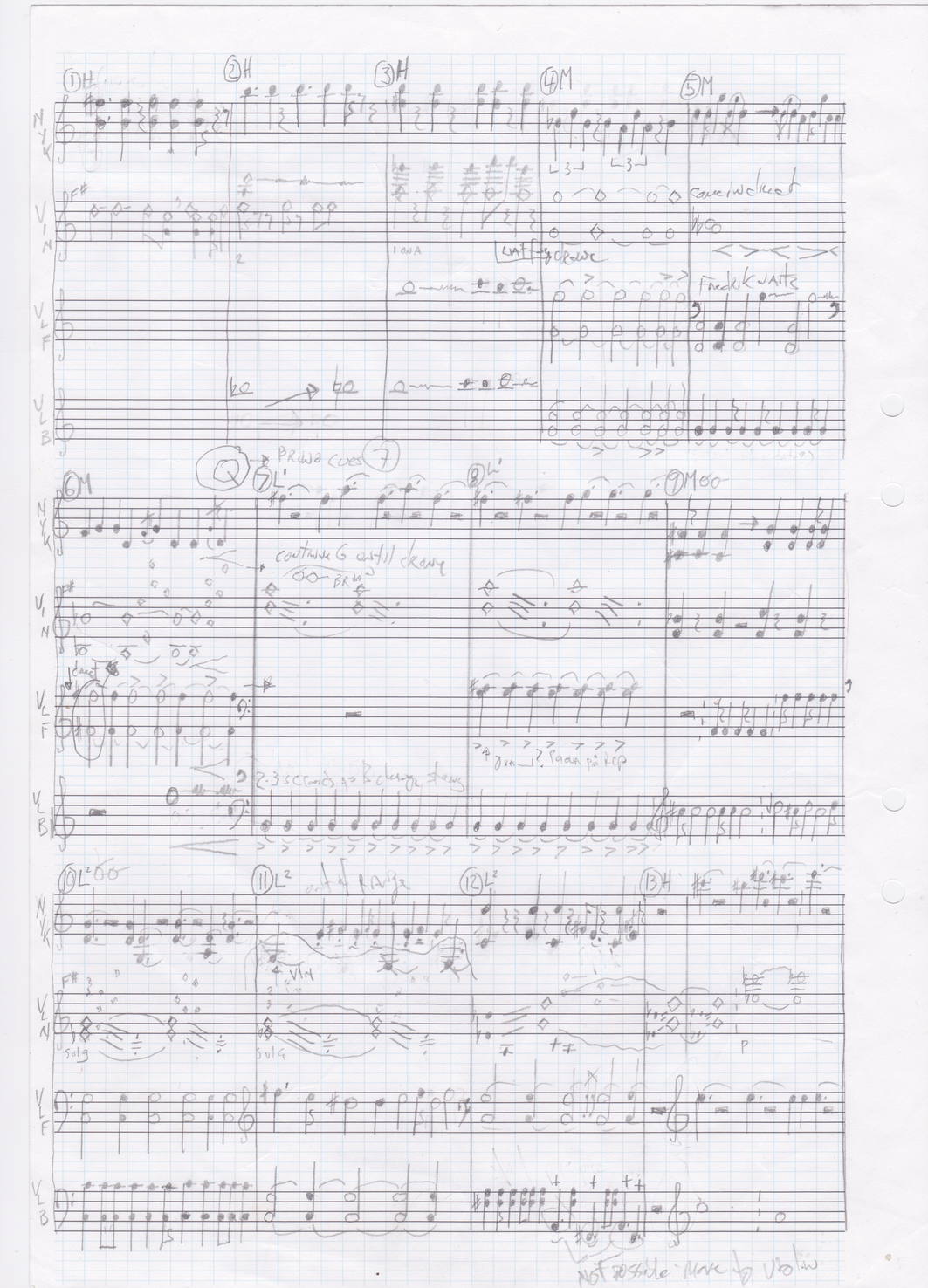 The previous year, I had spoken to Norberg’s then-head engineer, John Anker, about the acoustic properties of the remarkable space, and the gigantic multi-part speaker system he built to amplify it. He told me, among other things, that the huge concrete pillar at the center of the room would set up standing waves if enough of the right bass frequencies were directed at it, shaking the chamber like a concrete wine glass. I aimed to do this with this ensemble of string instruments, using nothing more than simple amplification, and was elated when I felt the first, massive standing waves form towards the end of the piece.