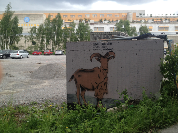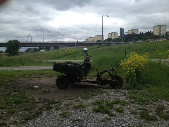 In 2009, I took pictures of a kolonilott (community garden) on the Tomteboda grounds, because it looked like a very imaginative, communal space, and because there were signs and flags throughout trying to save it. In 2016, when parts of the the garden were still left, abandoned, I walked there amongst the remains, and took more photos. I later learned that it was almost a century old, and had originally been a community garden for railway workers.x