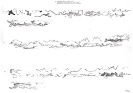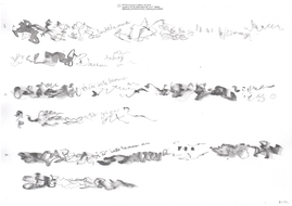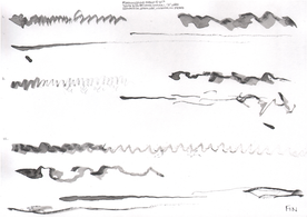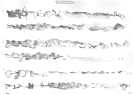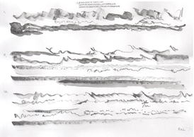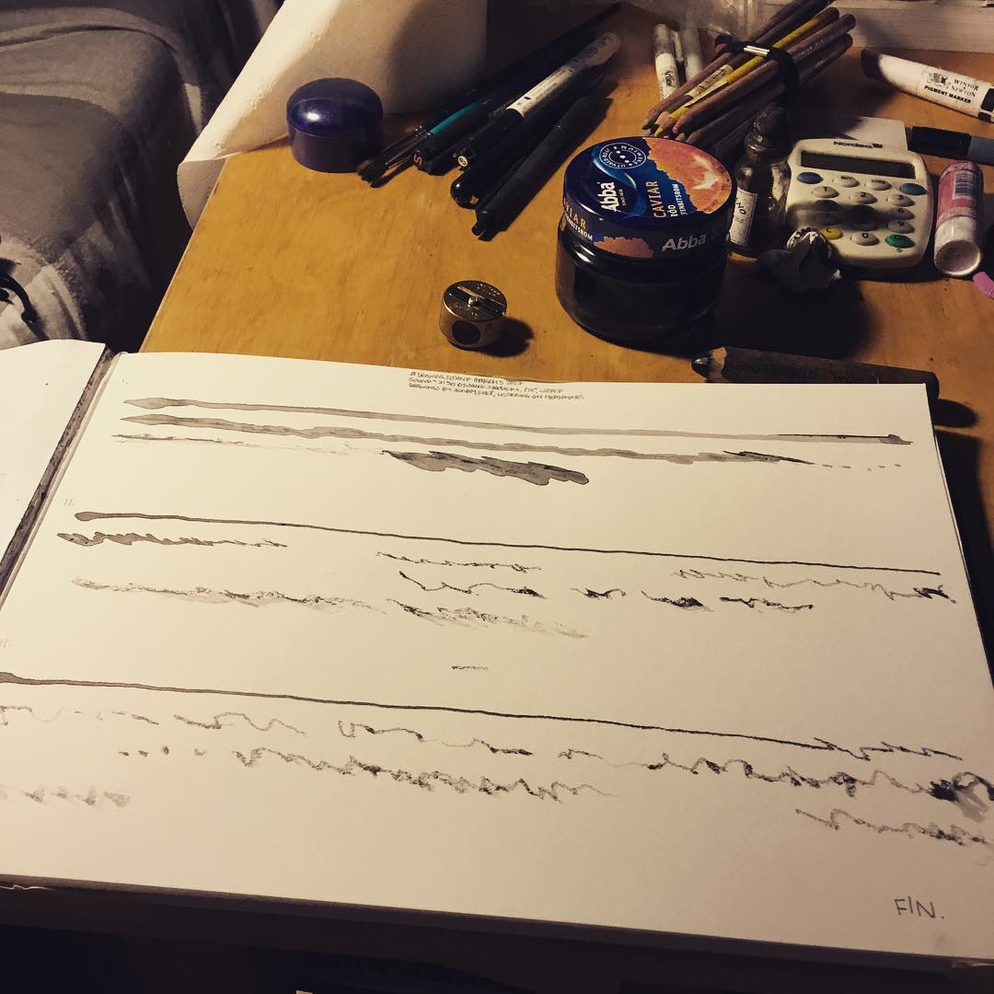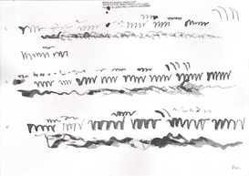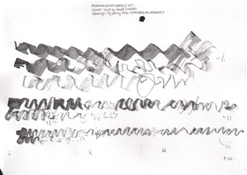 In March of 2017, artist, field recordist, soundwalk leader and artistic researcher Jacek Smolicki invited me to the Detroit Gallery to join him and artist/illustrator Jenny Soep in a project employing different modes of transposition. Smolicki and Soep wanted to explore how materials transformed when transposed through different mediums. First, Jacek Smolicki collected 31 short field recordings. He gave these recordings to Soep. Soep then listened to each recording three times, making a drawing in real time for each round. These are the drawings shown to the right (you may look at them in larger format by clicking on each). This is not dissimilar to the way I practice with real world sounds, transforming sounds in real time, through impossible acts of attempted transposition on the violin, as an improvisational act of listening, dérive and technical work with my instrument. When they invited me to participate, Smolicki and Soep hung the drawings up in sequence on the walls of the gallery, and then I played them as a further step in the transposition of the original field recordings. At the time of this writing, Smolicki and Soep have taken contact with another violinist, Sören Thurell, and are also planning to work with with glass blowing artists, to further transform the materials through on-going transposition.