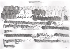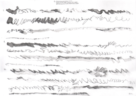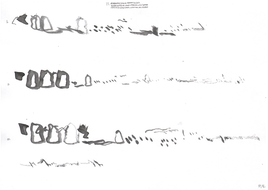 I have included my portion of Smolicki and Soep's on-going work as part of this project because this single afternoon both informed and helped me to articulate so much about the transposition practices I employed throughout the music and sound works here. Having this additional visual element, where transposition was performed not as an act of making a score, but as an act of making a work of visual art, illustrates the act of transposition from another angle than the sonic work that comprises the rest of the music and sound works in this reliquary. My participation in Smolicki’s and Soep’s project also represents a miniaturized example of a wider practice of transposition I have employed throughout my life. Walking through the cityscape, I carry out improvisation and transposition as part of an act of listening, in a combined dérive and soundwalk, through playing the violin. [CITE I have written extensively about this conception of transposition in my article Aural Transposition, Psychogeography and the Ephemeral World, which can be found in the VIS journal (add bibliography reference).] At the Detroit Gallery, I traversed Soep’s drawings on foot around the perimeter of the room, listening through looking, playing in return; a microcosm of that wider practice.