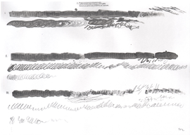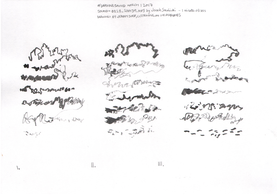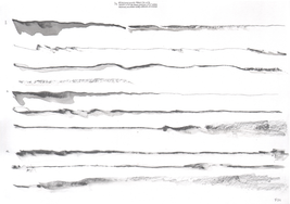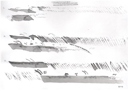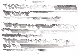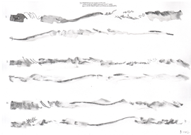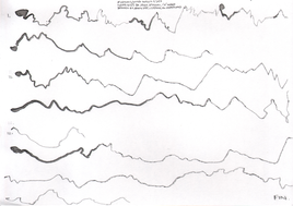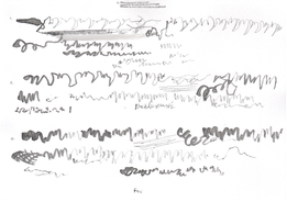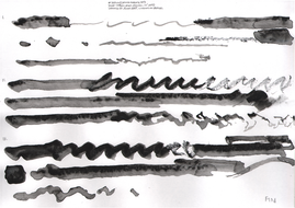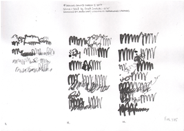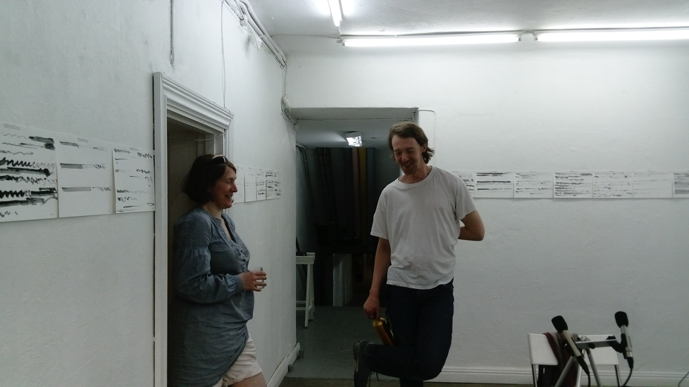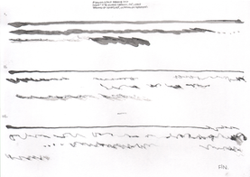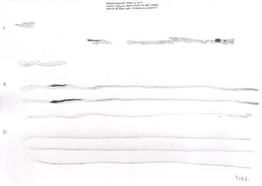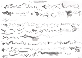 Although the majority of the music and sound works in my PhD project take their final form as compositions or highly structured improvisations, most of my practice with the violin is as an improviser, and this has been a constant when creating the works in thai repository. Even when making fixed-media, large scale or multichannel works, I have had the violin sitting next to me at all times, ready to take up and think about materials with. My work with Smolicki’s and Soep’s project thus gives a clearer example of how my long-running improvisatory practice with the violin is almost always present when I approach materials. To the right are Soep’s 31 drawings, which I played with. Below each drawing is the short improvisation I did for each, starting with a reading of the catalog number for each original field recording, which I never heard, but only touched through Soep's visual transpositions.