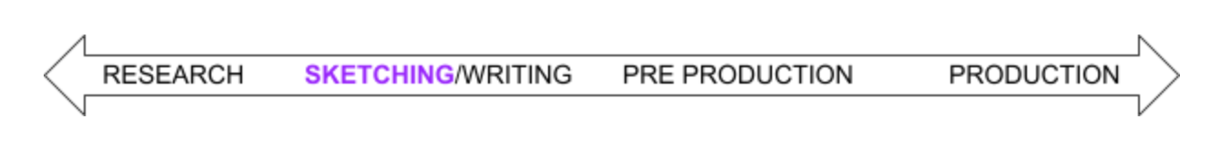 The following is a step-by-step description of the sketching process in the ongoing development process of a proposed feature film. It is composed of notes, lists and results, combined with thoughts on the process.