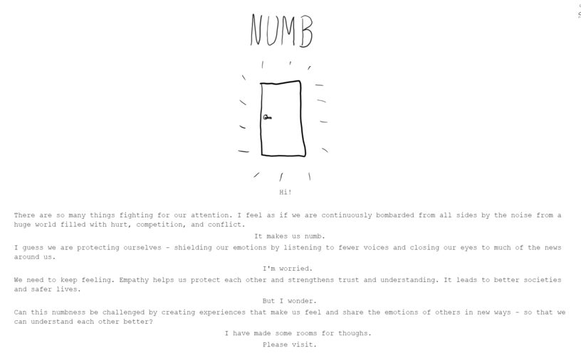 Dette doktorgradsarbeidet innen kunstnerisk utviklingsarbeid er utført av Elin Festøy, stipendiat ved Den norske filmskolen, Høyskolen Innlandet. Festøy utforsker hvordan interaktive opplevelser kan anvende emosjonelt ladede valg for å kommunisere tyngre tematikk på en måte som i større grad motiverer til empati og refleksjon. Den kunstneriske utforskningen består av utvikling av en rekke VR konsepter, fulgt av refleksjoner knyttet til hvordan graden av handlingsrom og valgfrihet en deltager gis kan hjelpe til å bygge et tillitsbasert relasjon mellom skaper og deltager.