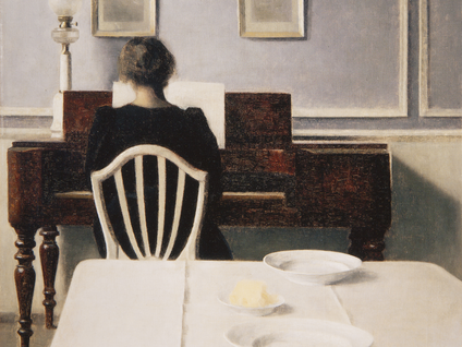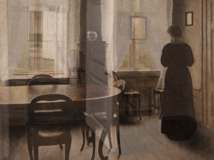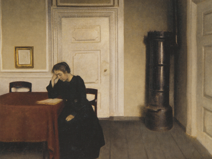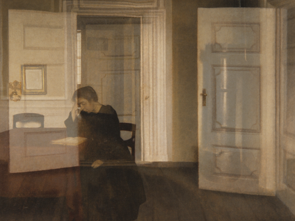 Entä millaisia olisivat lohdutuksen kuvat? Ainakin niissä pitäisi olla valoa. Hammershøin maalauksissa taivas näyttää olevan aina pilvessä, ikkunoista näkyy pelkkää harmaata.