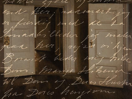 Ennen kuin video on valmis, tarvitaan vielä yksi siirtymä. Se vie minut Helsingin yliopiston kirjastoon etsimään kuvaa Hammershøin käsialasta — haluaisin käyttää sitä teoksen alku- ja lopputekstien taustalla. Olen käynyt kirjaston Hammershøi -kokoelman jo moneen kertaan läpi, mutta hyllystä löytyy yksi teos, jonka olen aiemmin ohittanut. Se on Sophus Michaëlisin ja Alfred Bramsenin tanskankielinen Vilhelm Hammershøi. Kunstneren og hans Værk vuodelta 1918. Avaan kirjan sattumanvaraisesta kohdasta. Sivujen välissä on ohut vaaleansininen paperi, johon on kirjoitettu jotakin koristeellisella käsialalla. Luulen aluksi, että se on muistilappu, mutta pian huomaan, että paperi on osa nidettä — aidon näköinen reproduktio Hammershøin kirjoittamasta kirjeestä! Kirje on osoitettu Bramsenille, mutta olen varma, että se on pohjimmiltaan tarkoitettu minulle. Se on henkilökohtainen viesti Hammershøilta, taivaansininen kirje kuolleista.