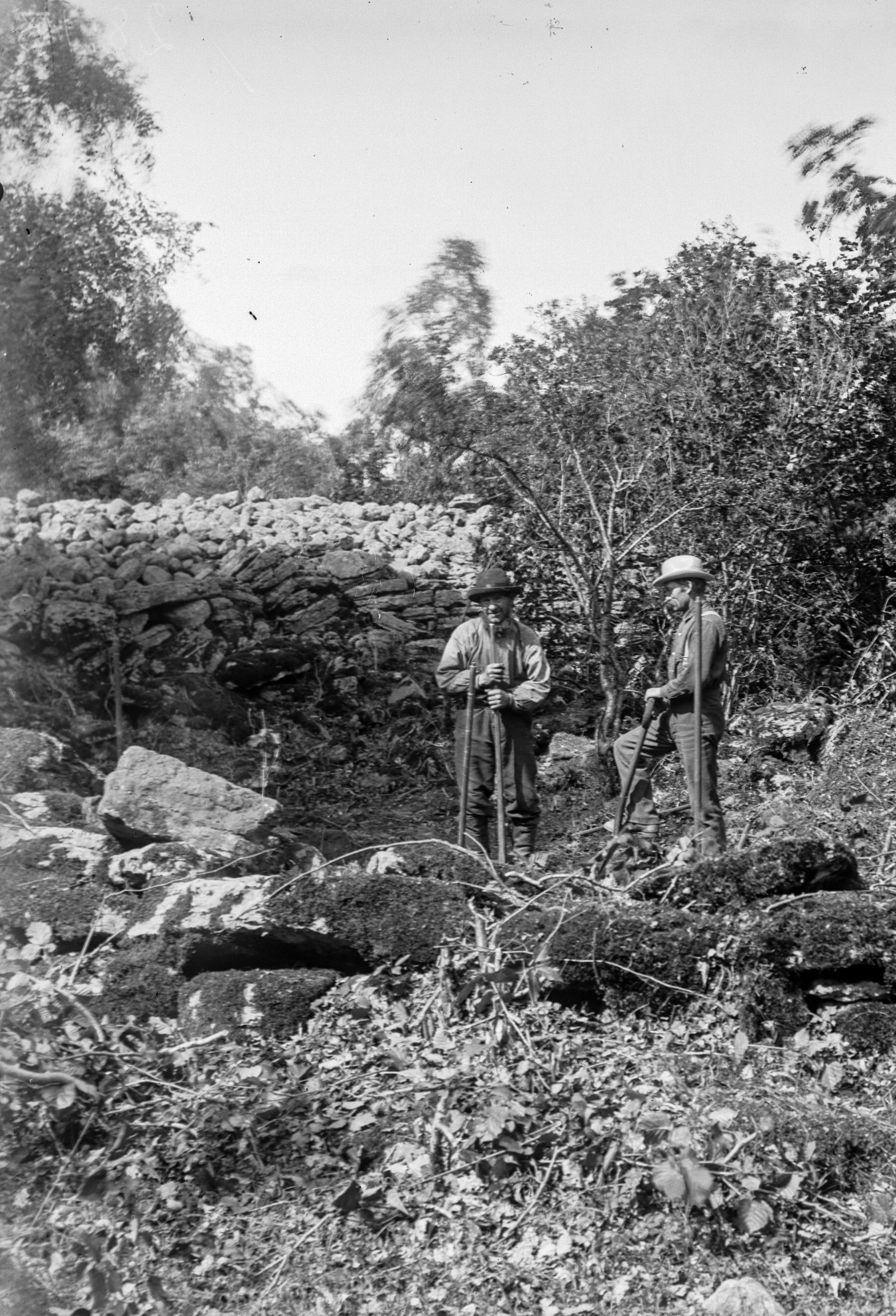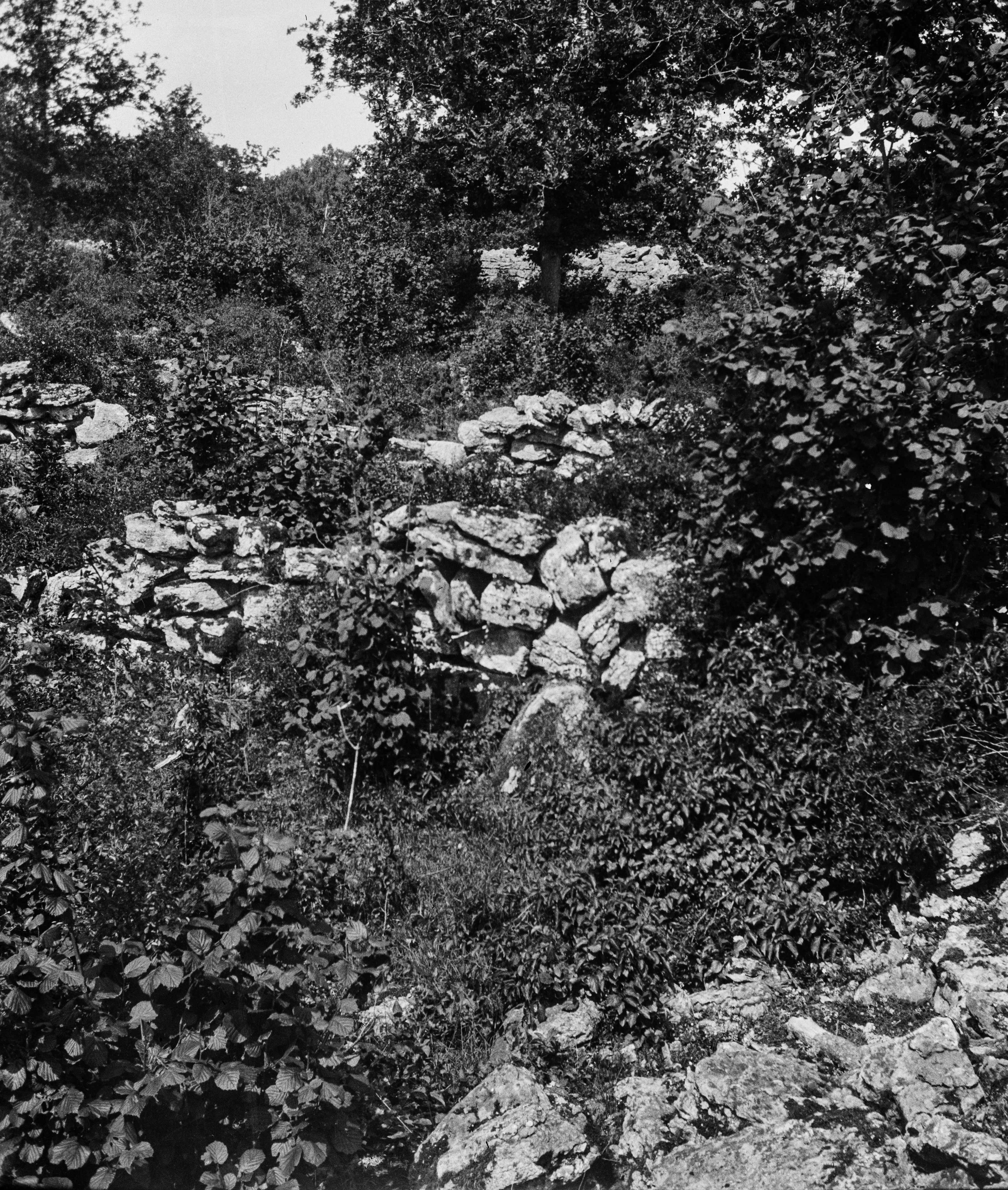 Men till slut faller träden under yxan och återväxten minskar varje år. Ett fotografi från röjningsarbeten i mitten på 1940-talet visar högar av ris och virke uppradade intill borgens mur. En man i arbetskläder står intill högarna. Är han där som måttskala, för att visa mängden träd och buskar som avverkats? Tanken går till jaktbilder där den stolte jägaren poserar bredvid nedlagda byten, prydligt uppradade uppvisande mängd och storlek. Kanske är han där för att symbolisera det utförda arbetet och visa på prestationens omfattning.