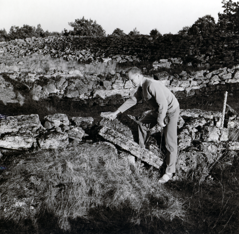 Under samma utgrävning överväger docent Sune Linqvist ett annat problem, och det är hur de raserade murarna ska hanteras. En princip inom arkeologin är ju att allt material bör återföras till sin ursprungliga plats efter utförd undersökning. Men hur bör de från husmurarna nedrasade stenarna läggas tillbaka? Som det av naturen (?) orsakade ras som mötte arkeologerna vid ankomst till platsen? Eller bör stenarna läggas upp på murarna i ett försök att närma sig murens ursprungliga utseende? För en framtida forskare kan ett återställt, falskt, ras vara lika vilseledande som en rekonstruerad mur, enligt Lindqvists resonemang. Han förordar därför att stenarna läggs upp på murarna.
