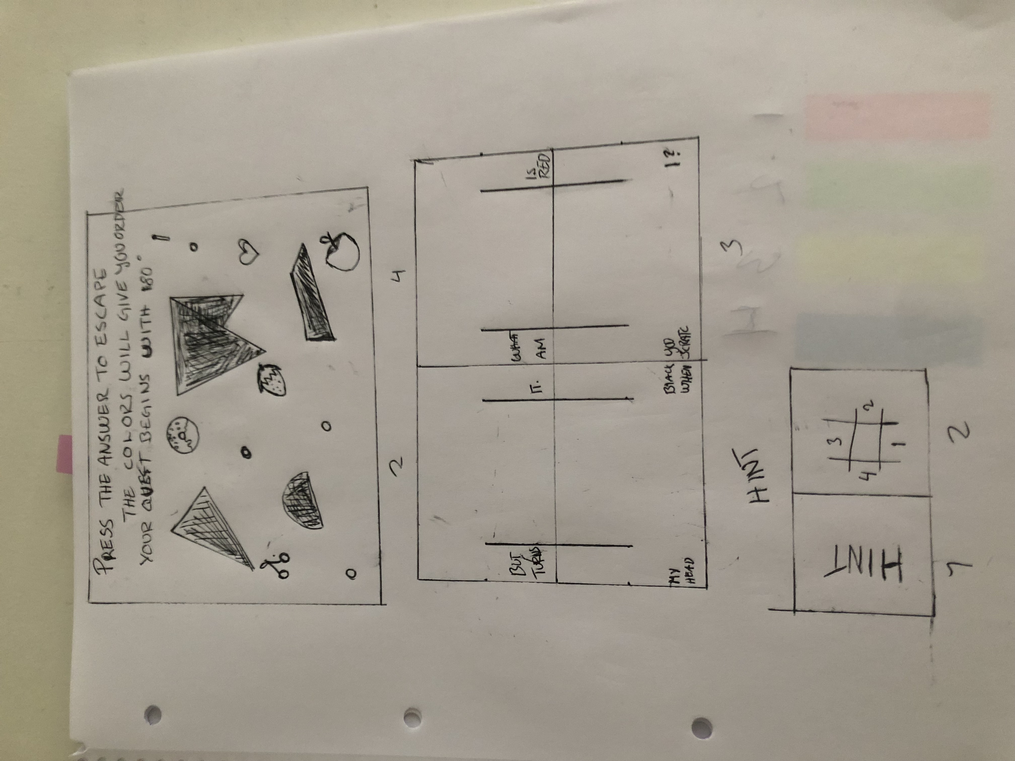 The game starts with the instrcutions: Press the answer to escape.