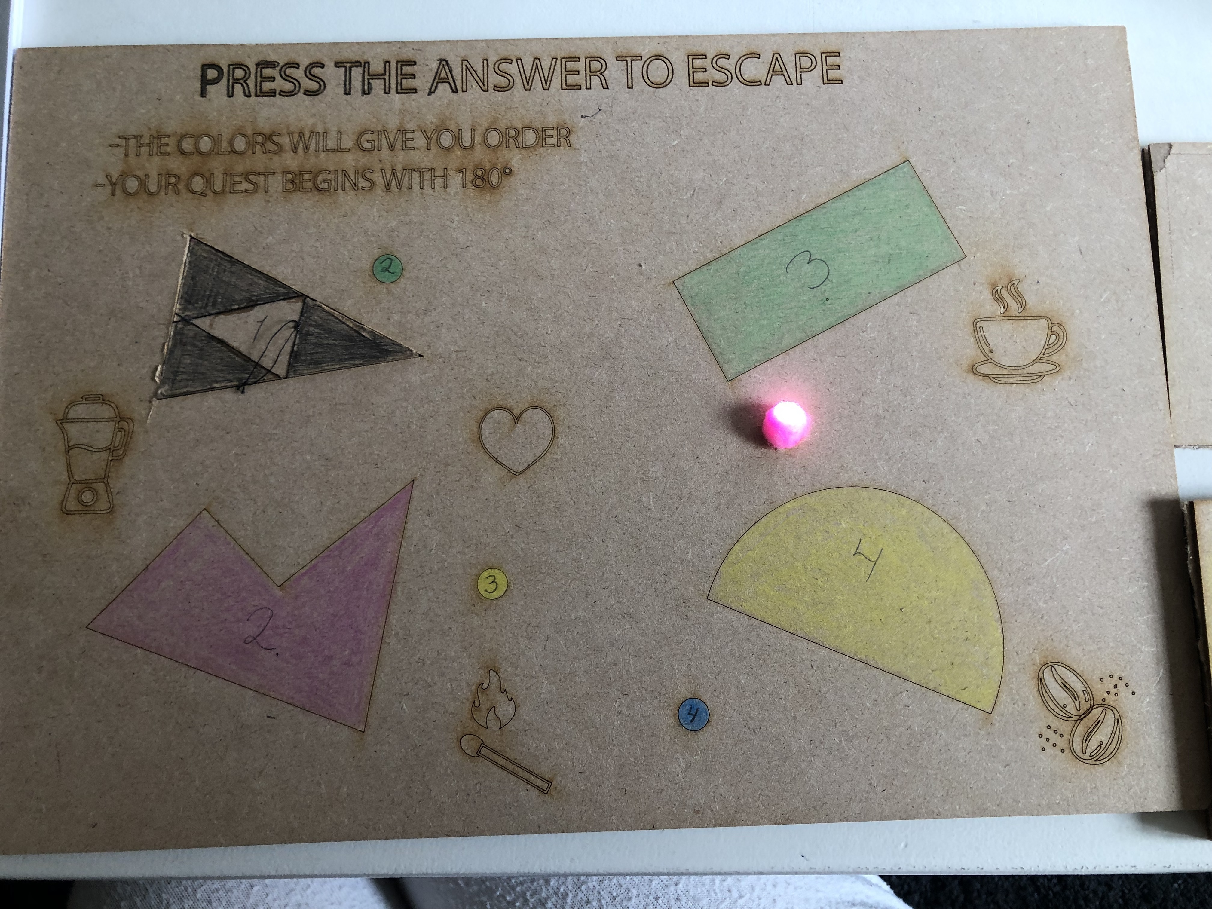 The idea of this consept is based on an escaperoom experience where you have to solve puzzles and riddles to escape from a locked room. The puzzle with lights it is a fun and interactive way to exercise the brain. It is supposed to be challenging, and it might be best performed by a team.