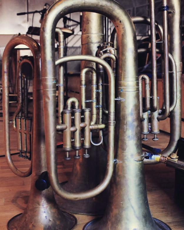 It should be observed that I prepared these instruments by deciding that we would play them using mouthpieces and reeds borrowed from clarinets and saxophones. At this time, Caitlin was already interested in exploring the viola, which she had begun to learn as a child before pursuing the flute. This created an equal footing in that we were all exploring our instruments. Sawyer (2015) notes that group flow is more likely when all members of the group have comparable skill levels. The brass instruments are extremely limited and unstable in nature and really required each of us to create our own synergy with them; to learn to play them actually. In doing this, we discovered the material that was available to us. Pitch was extremely limited whilst volume was quite dynamic. Articulation was quite difficult and it took practice to achieve control.