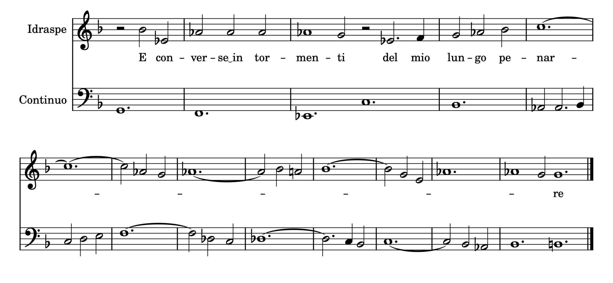 “Uscitemi dal cor lagrime amare” from Cavalli’s opera L’Erismena proves an anomaly with its legato vocal lines and use of ritornello sections. Although the interweaving ritornellos are reminiscent of 16th-century choral works, the use of basso continuo grounds this Lament in 17th-century compositional practice. This aria also utilizes a call and response motif between the voice and continuo not seen in the other works studied, providing numerous opportunities for timbral changes and emotional nuance on the singular word ‘penare’.
