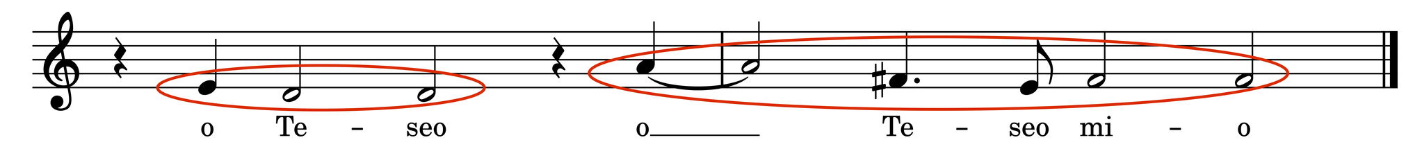The moment of remembrance is easily identifiable within the text (“o Teseo”), and the respective sighs are created by two notes moving a downward movement. This gesture is also borrowed for an utterance of “morire”, resulting in a heartbreaking association between Arianna’s love for Teseo and her misery at having been abandoned by him.