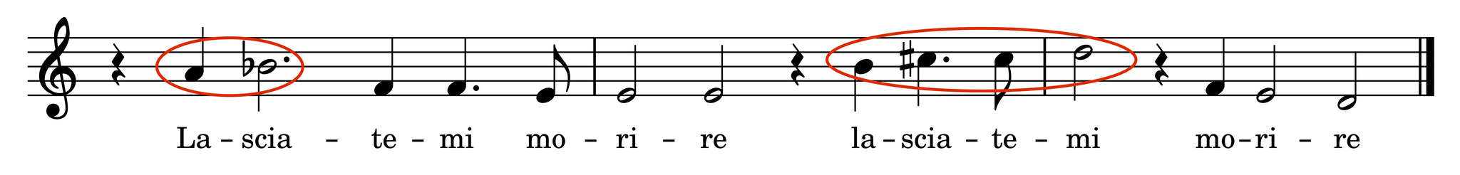 Motivic tears, wails, cries, and the like are clearly featured in the “Lamento d’Arianna”, “L’Eraclito amoroso”, “Lagrime mie”, and the Laments of Filia. “Lamento d’Arianna” has two distinct versions of wails and sighs: the first a pained expression of overwhelming grief, and the second a remembrance of her love for Teseo. The grief-fueled wails are created with a dissonant ascending chromatic line stretched over a single syllable and appear several times within the Lament.